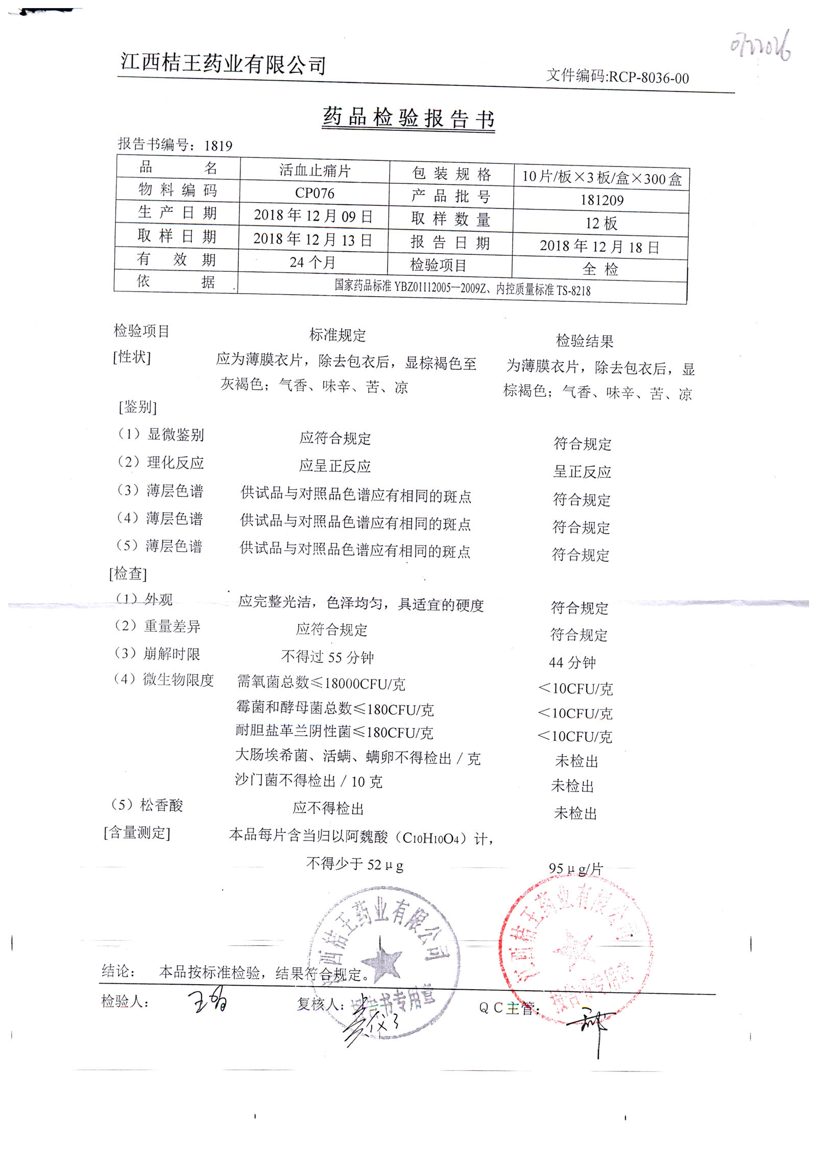 活血止痛片 | 10s*3板 | 181209 | 查看詳情 |