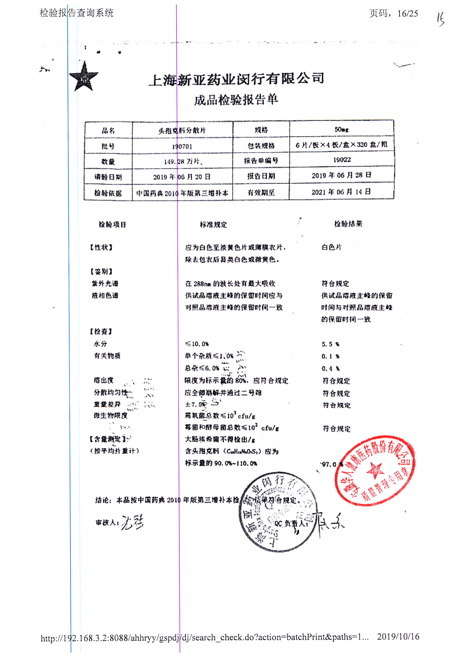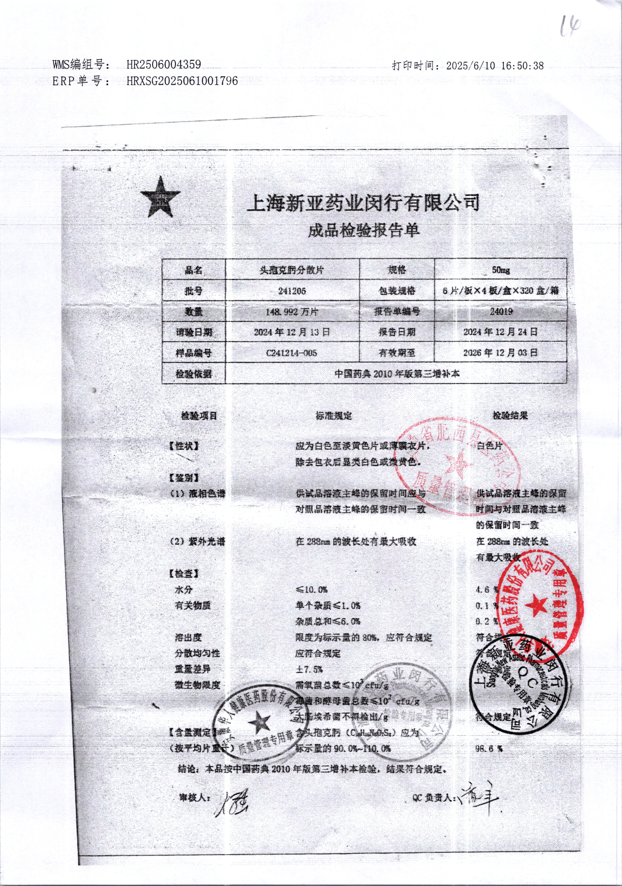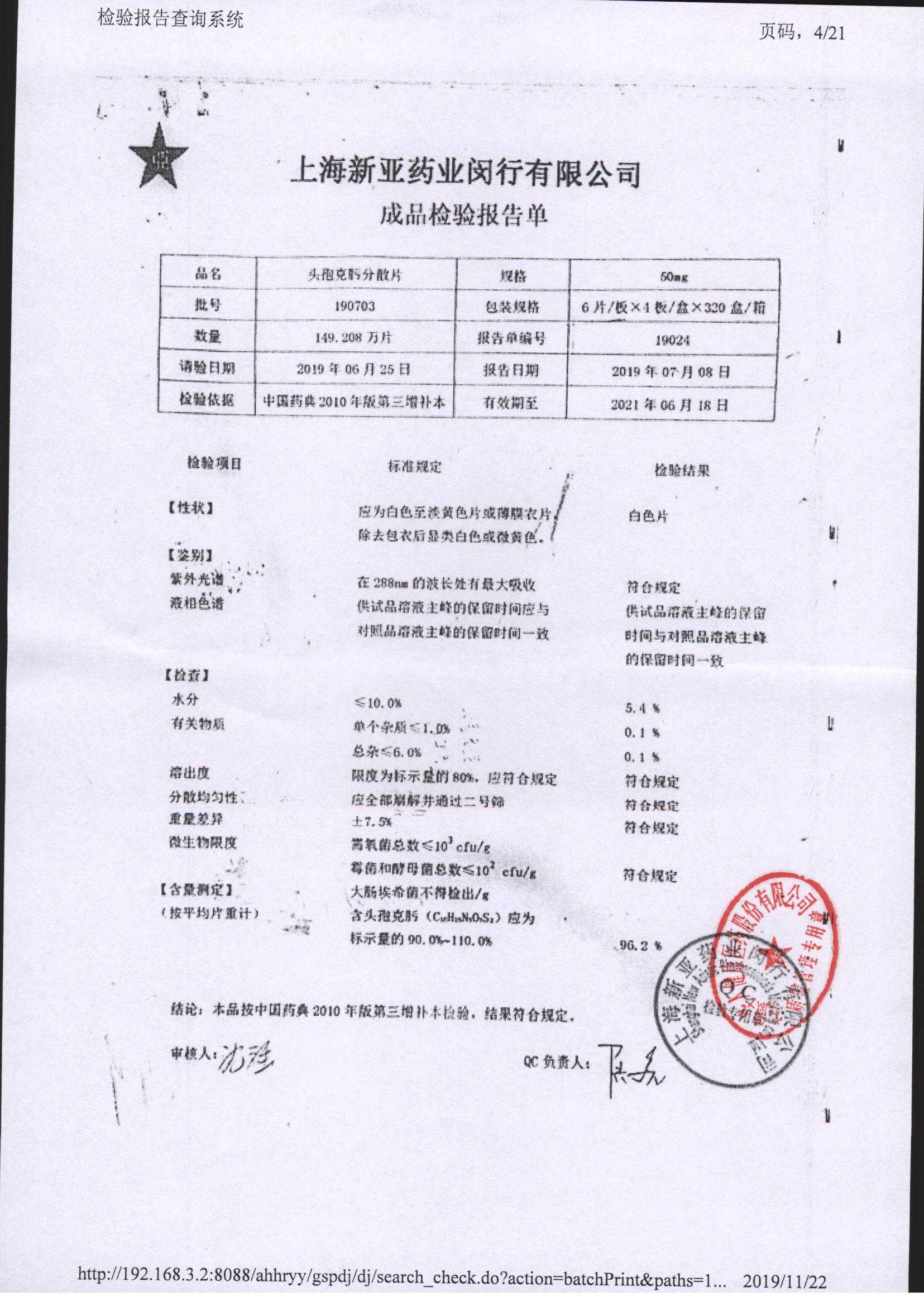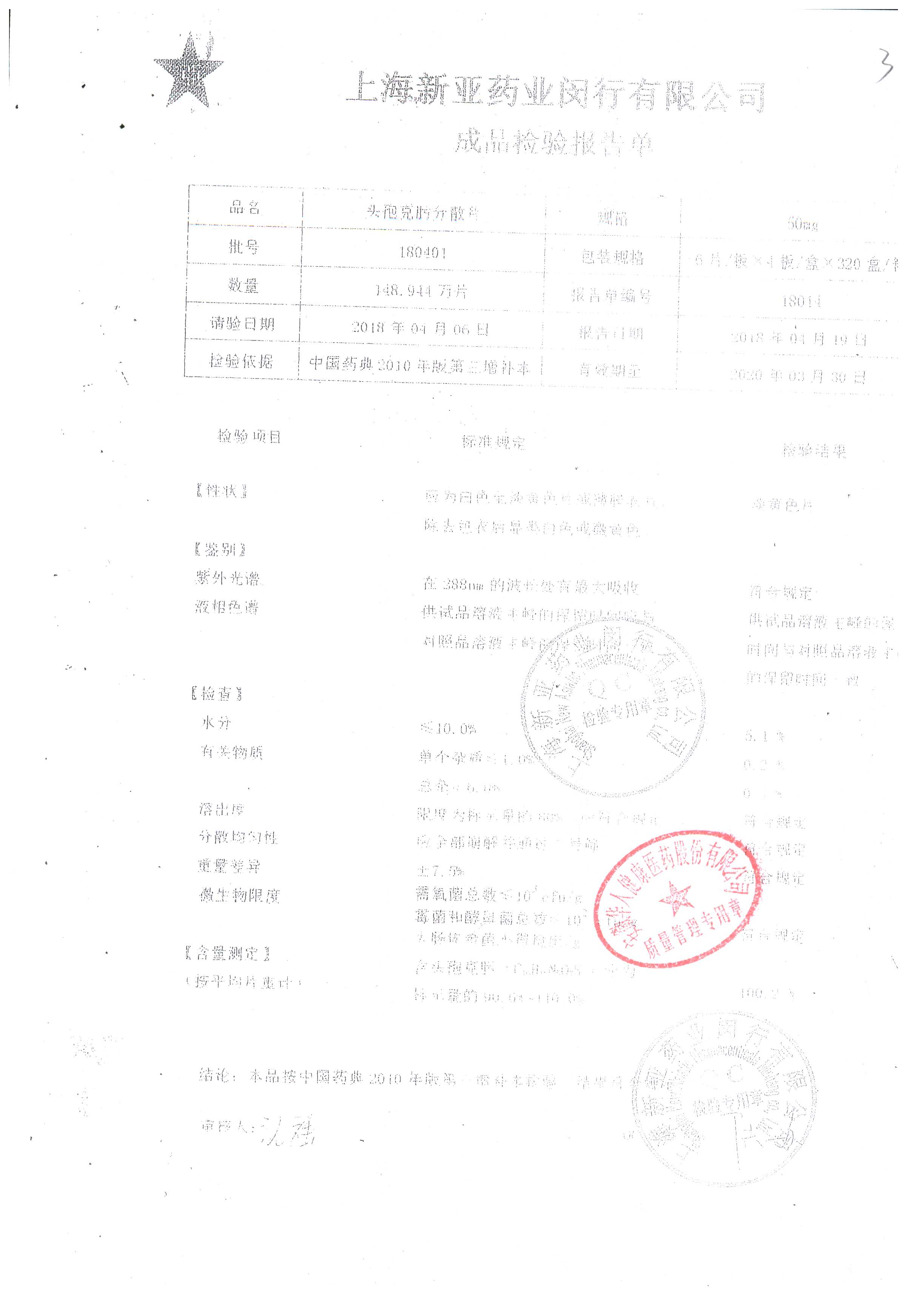 頭孢克肟分散片 | 50mg*24s | 190702 | 查看詳情 |
