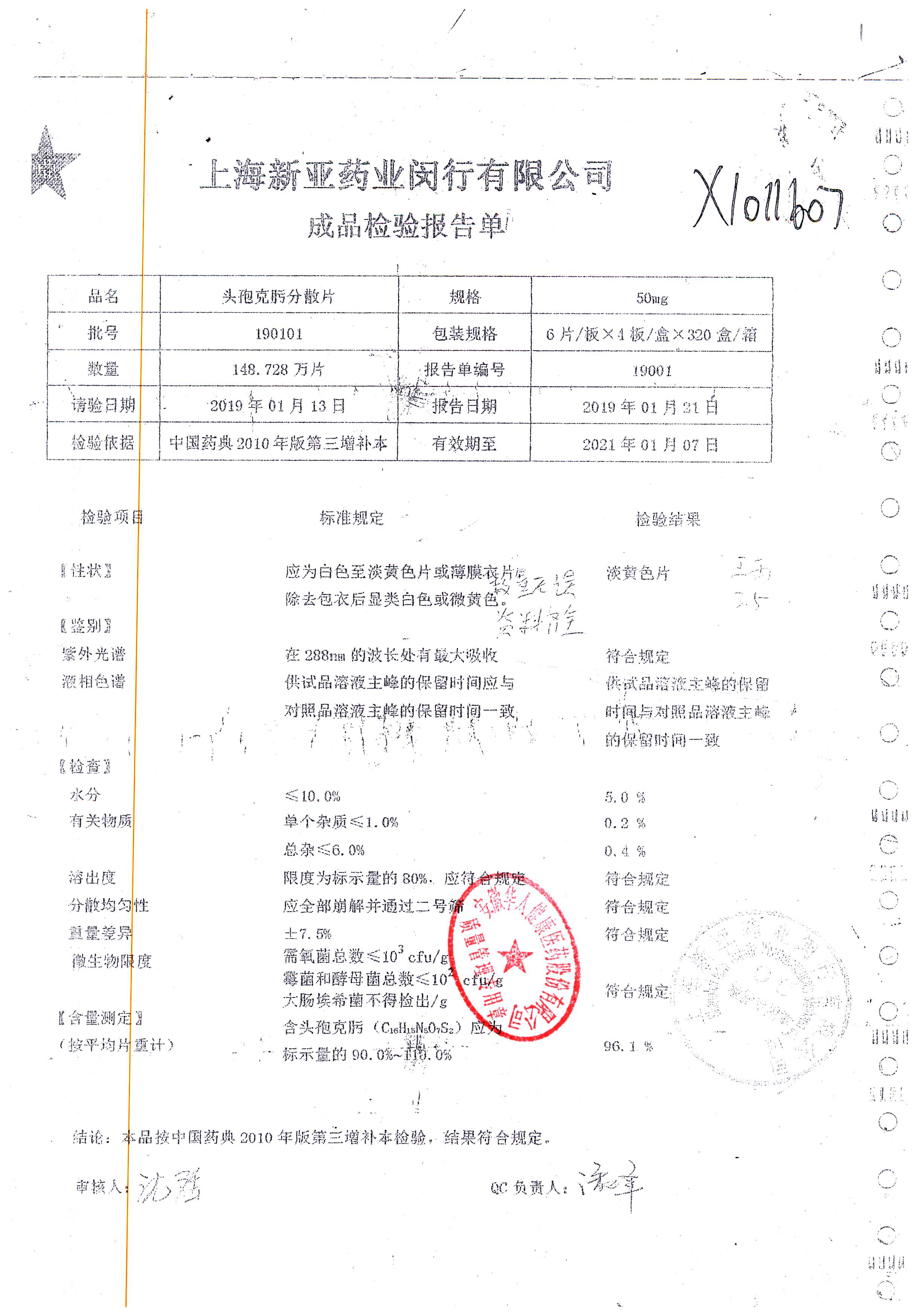 頭孢克肟分散片 | 50mg*24s | 190606 | 查看詳情 |