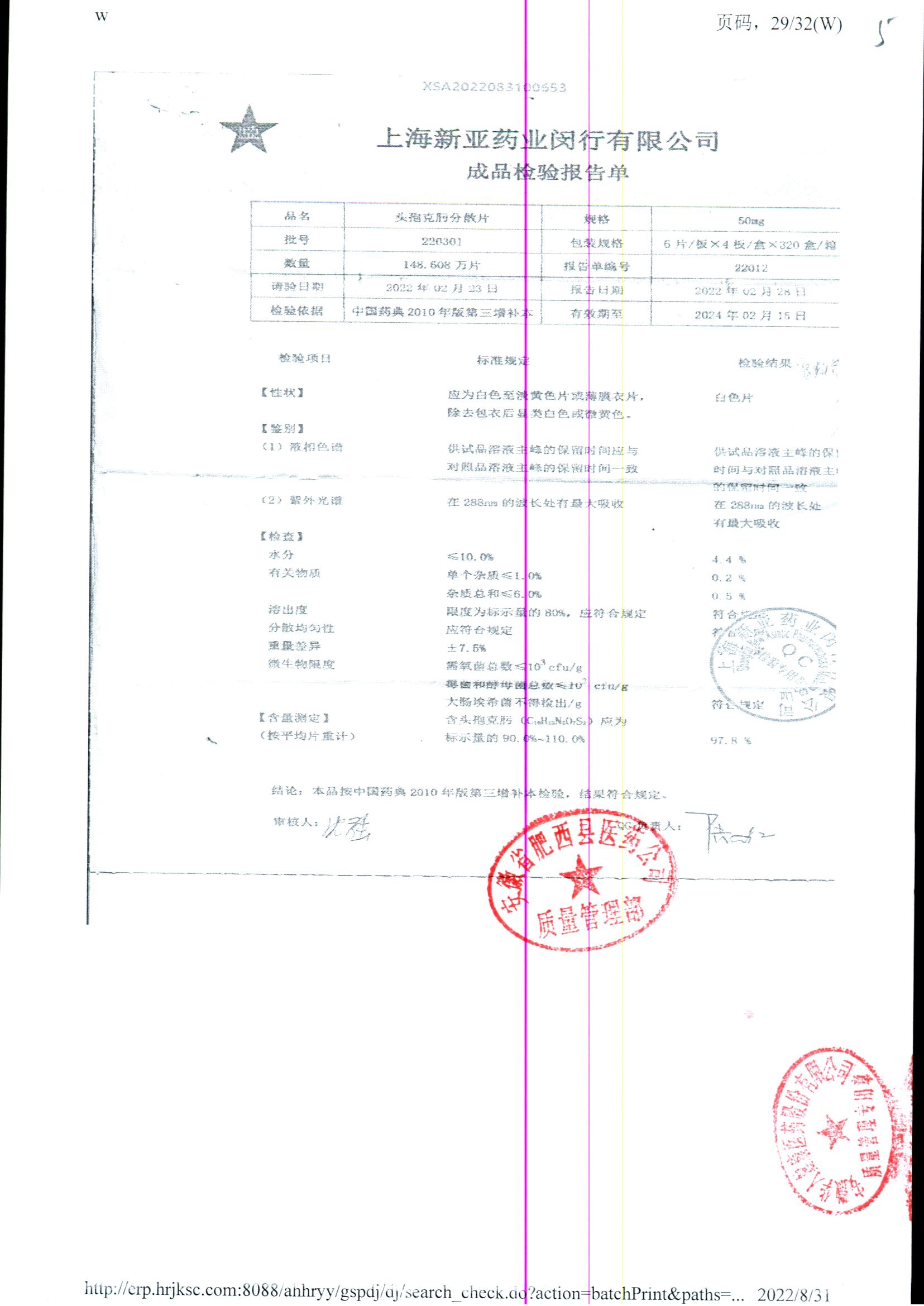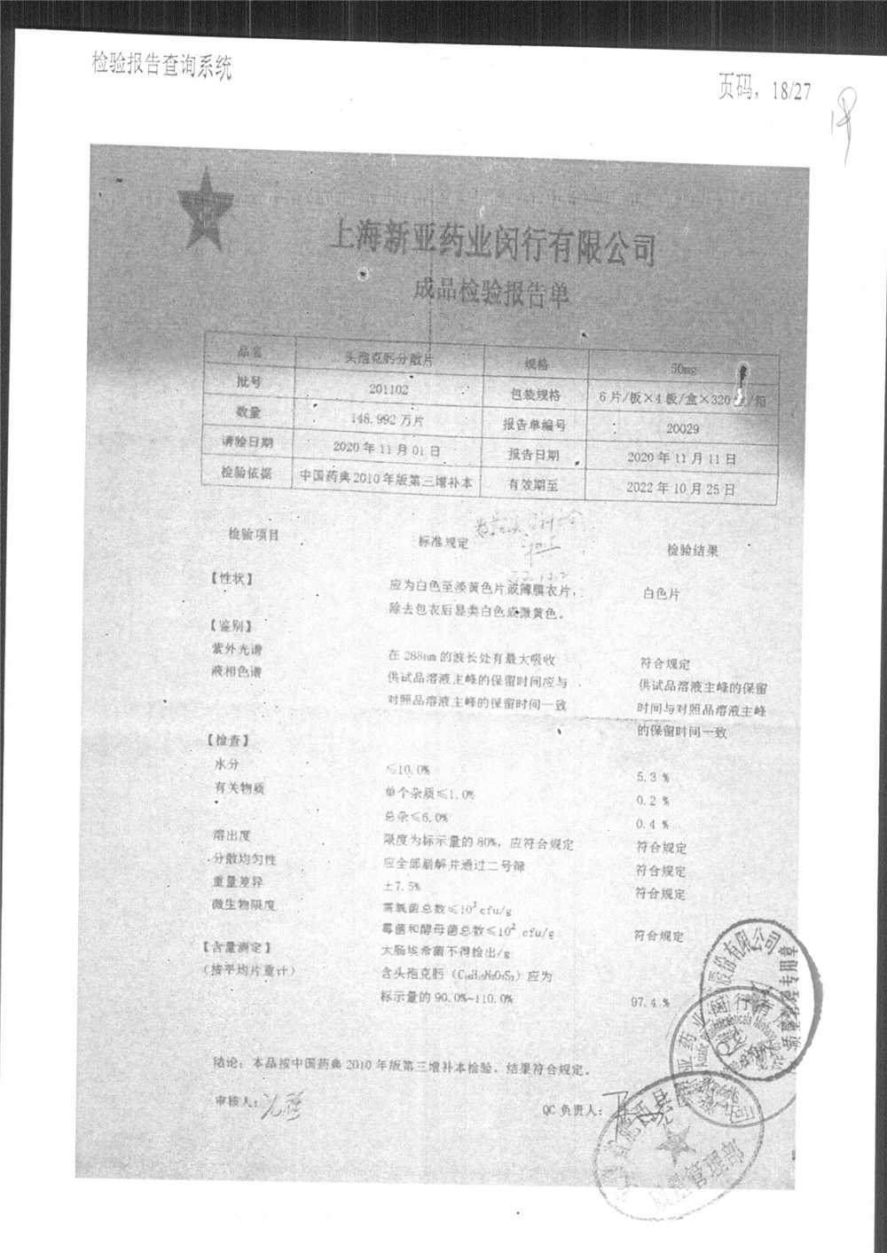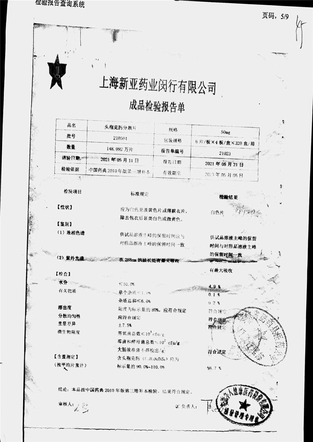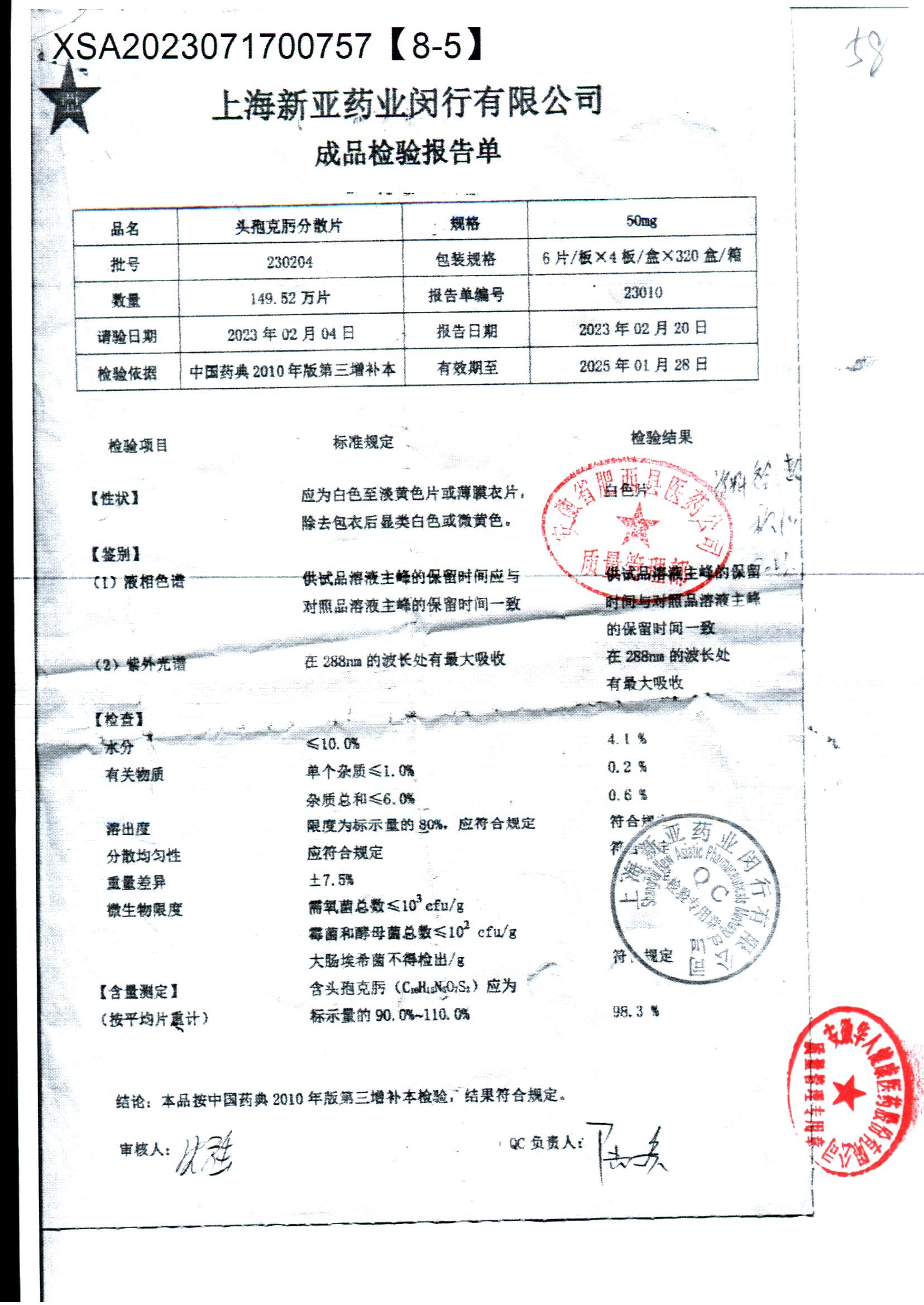 頭孢克肟分散片 | 50mg*24s | 210801 | 查看詳情 |