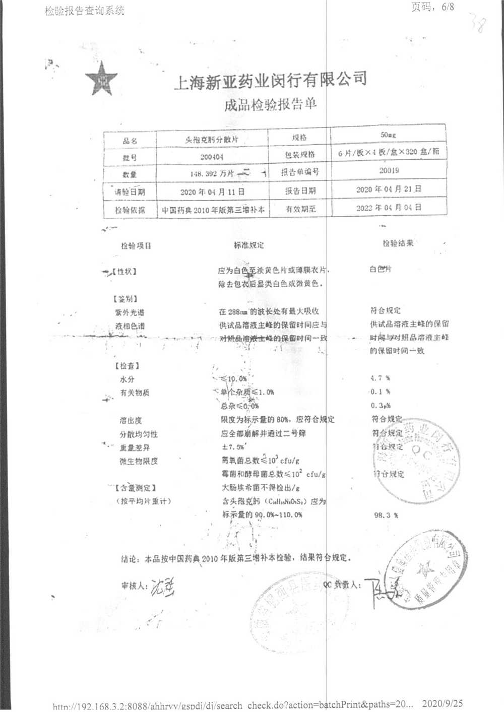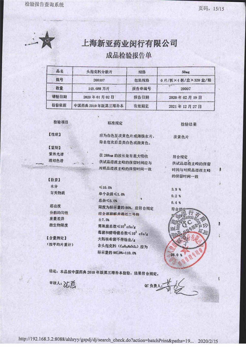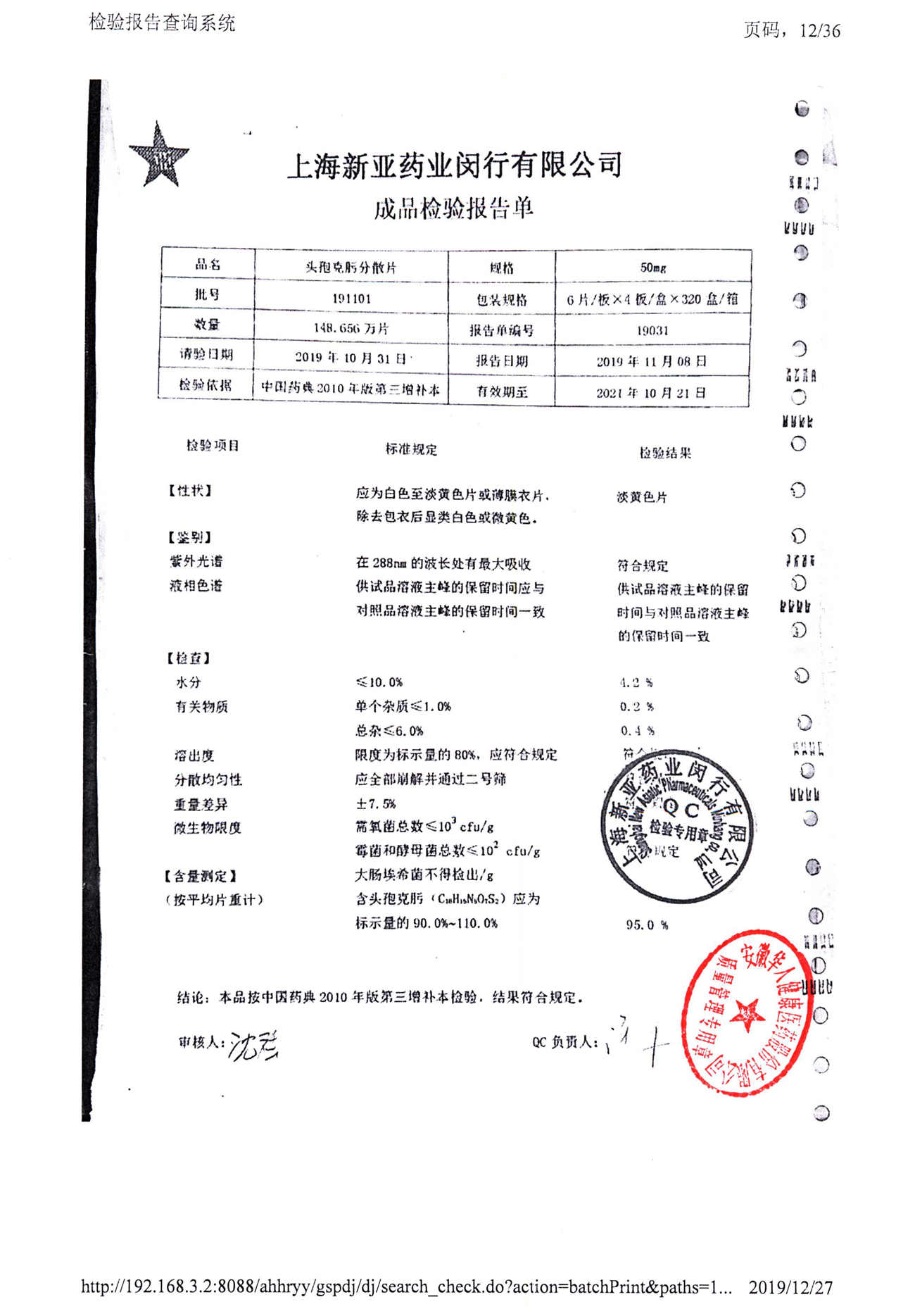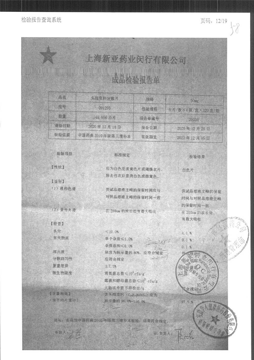 頭孢克肟分散片 | 50mg*24s | 201203 | 查看詳情 |