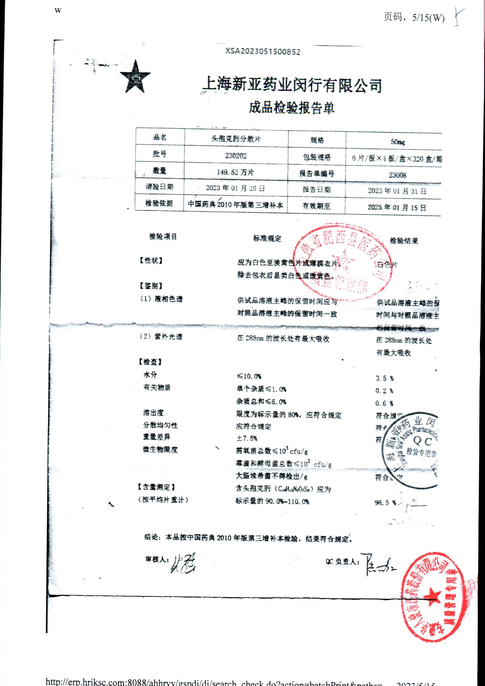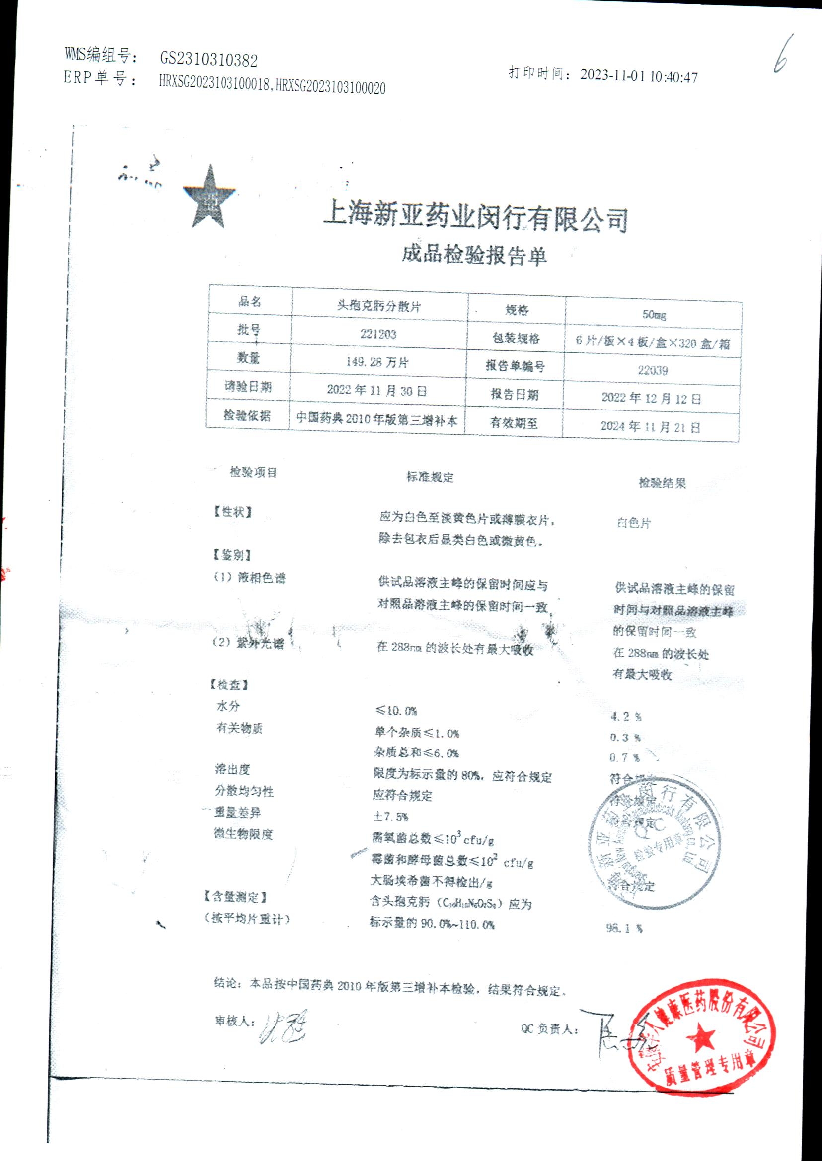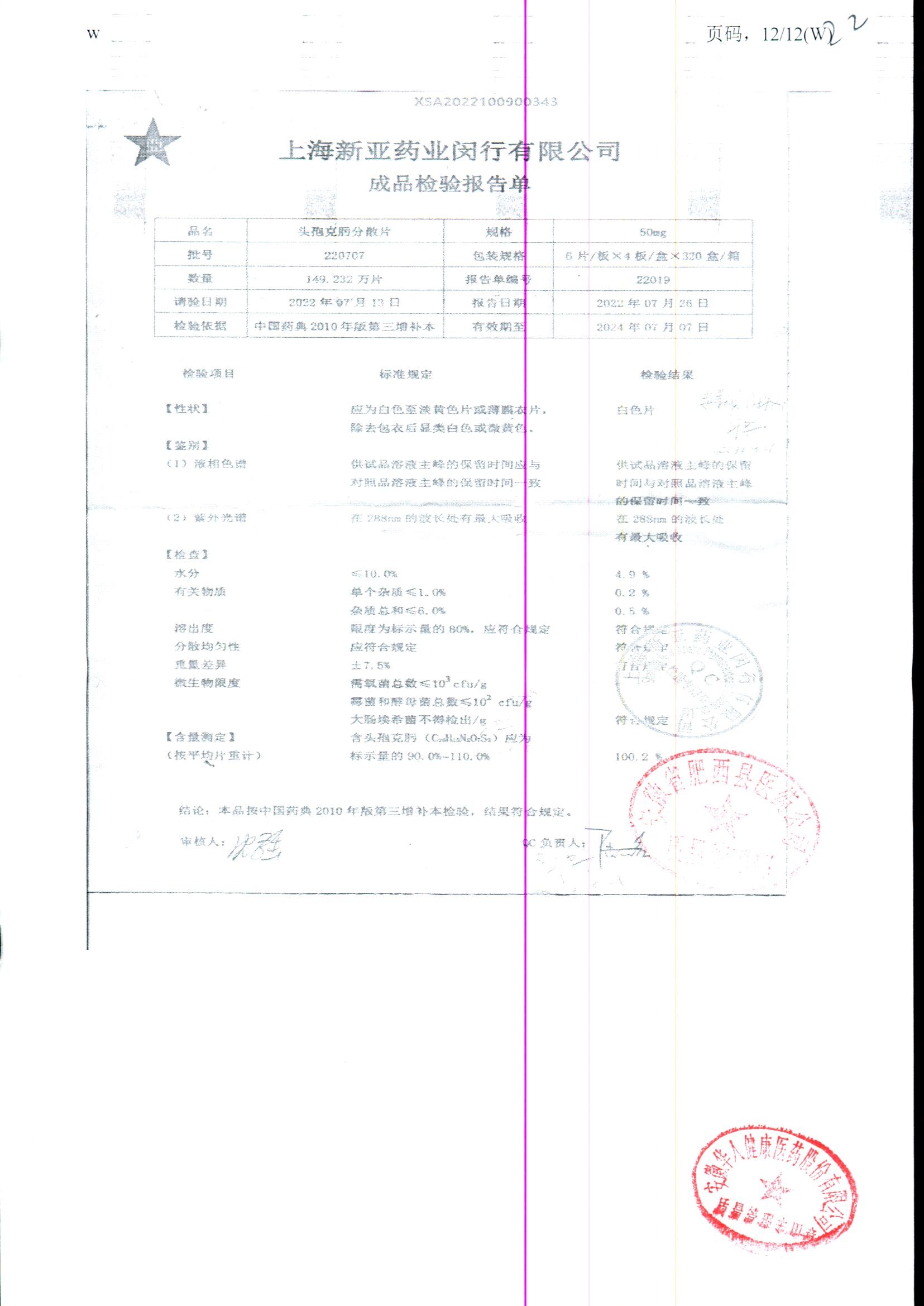 頭孢克肟分散片 | 50mg*24s | 220708 | 查看詳情 |