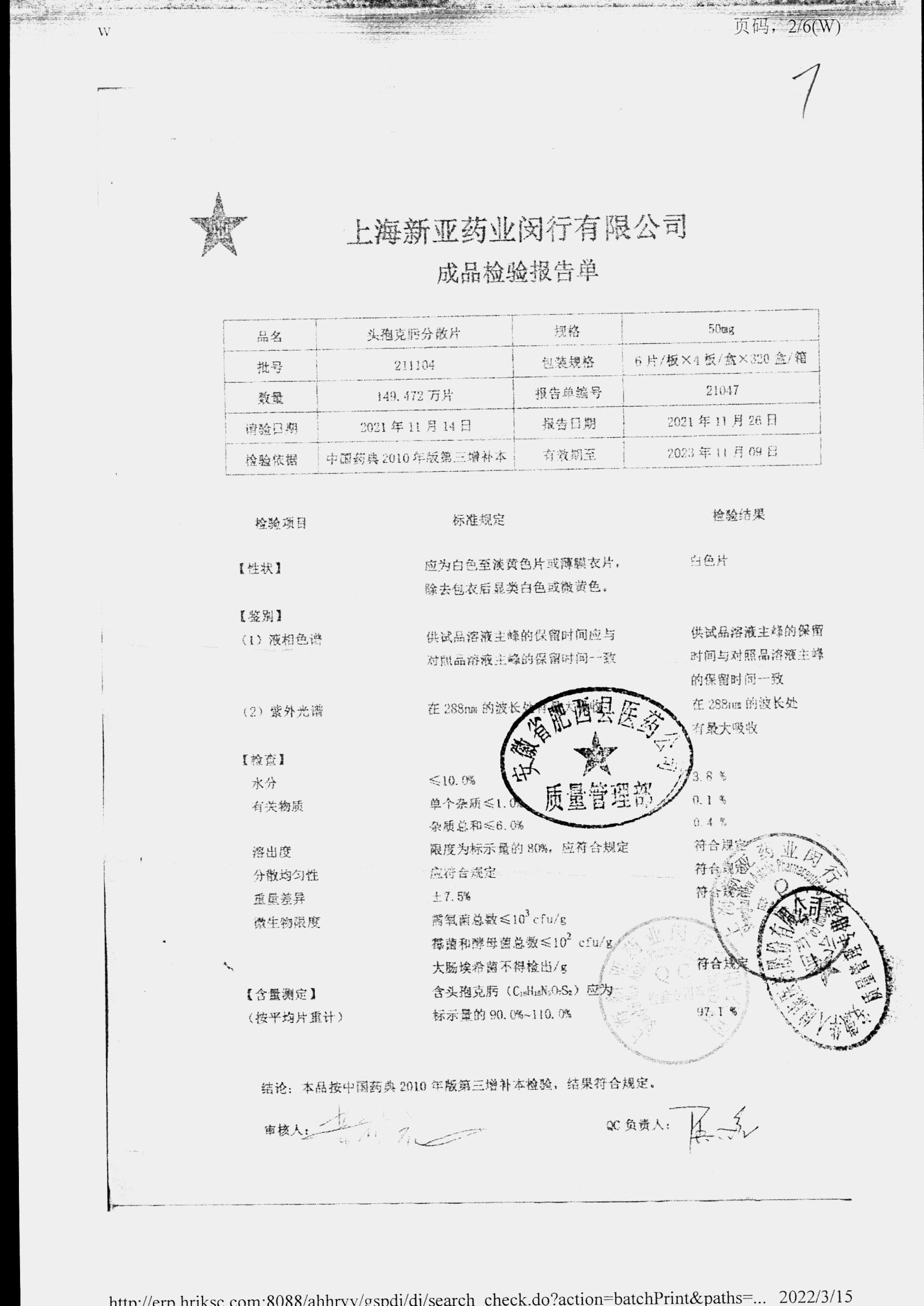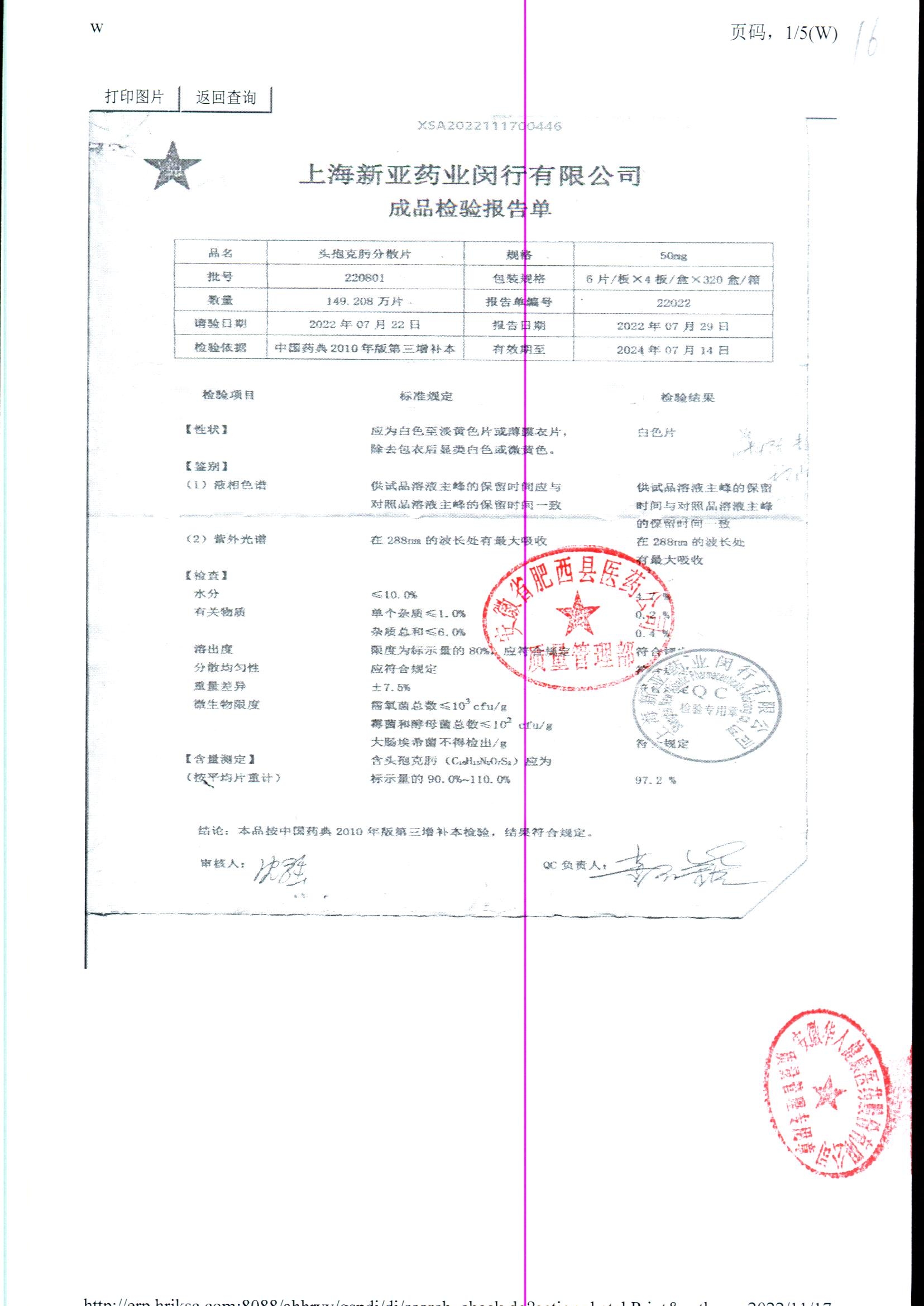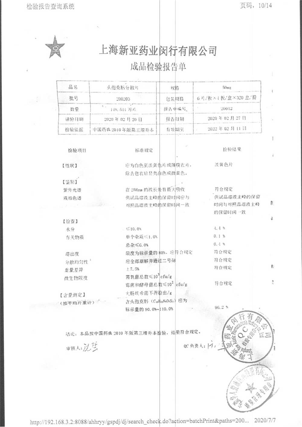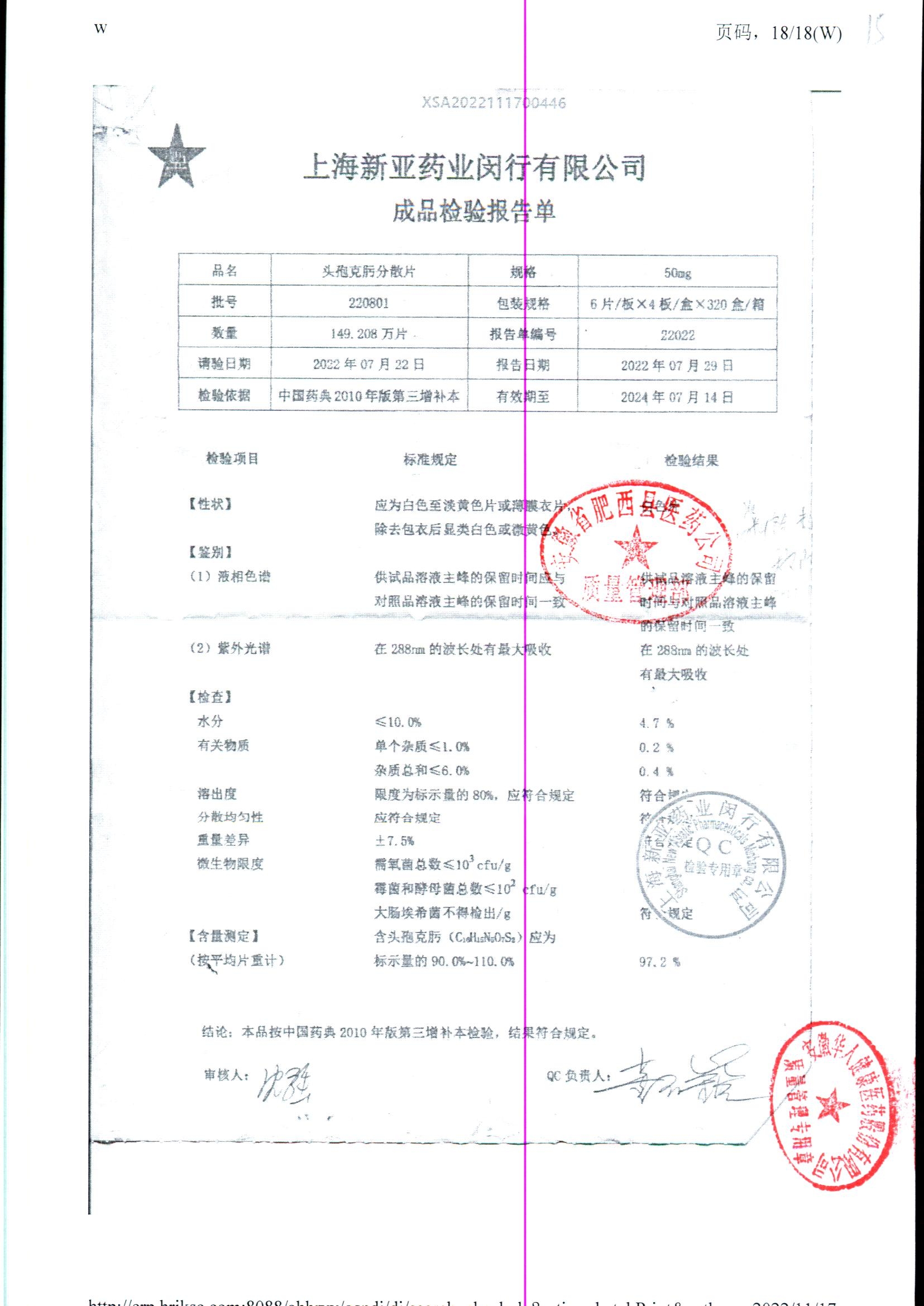 頭孢克肟分散片 | 50mg*24s | 220708 | 查看詳情 |