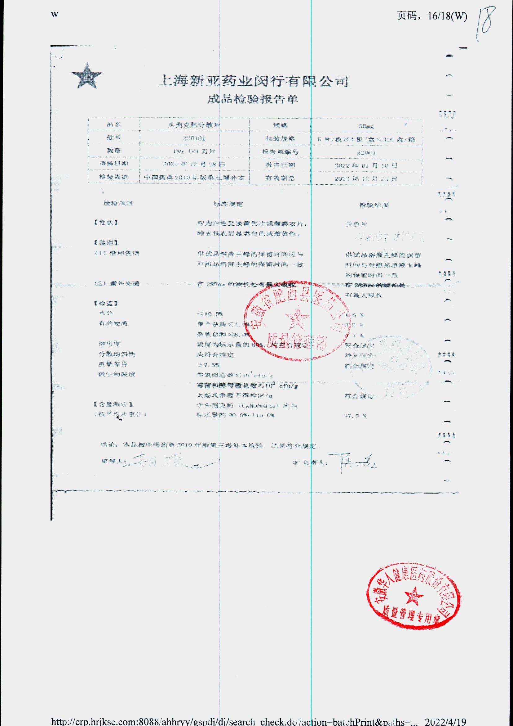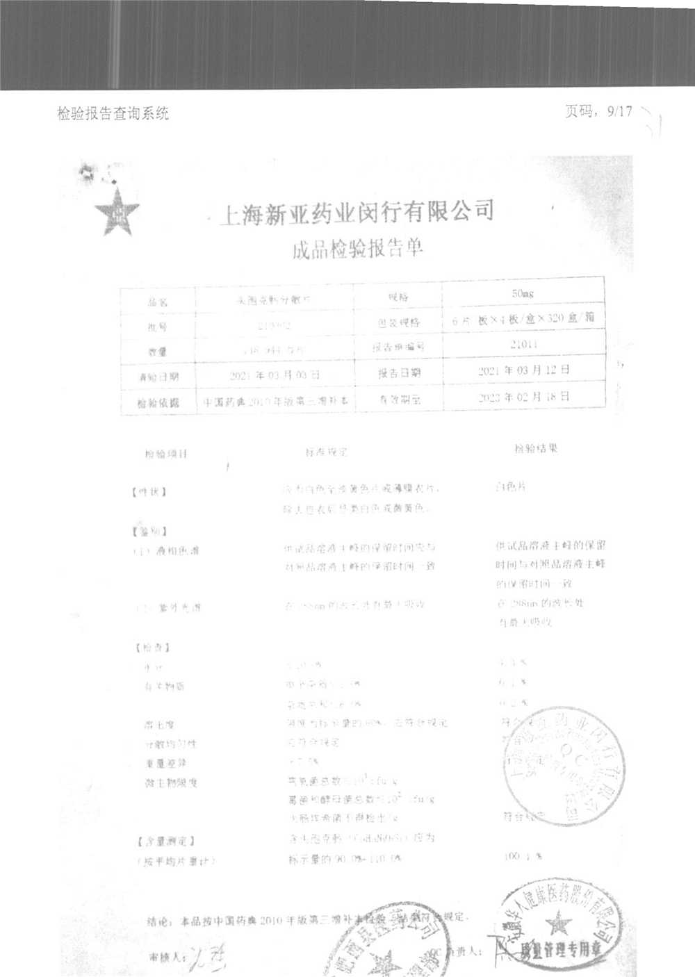 名稱 | 規(guī)格 | 批號 | 藥檢報告 |