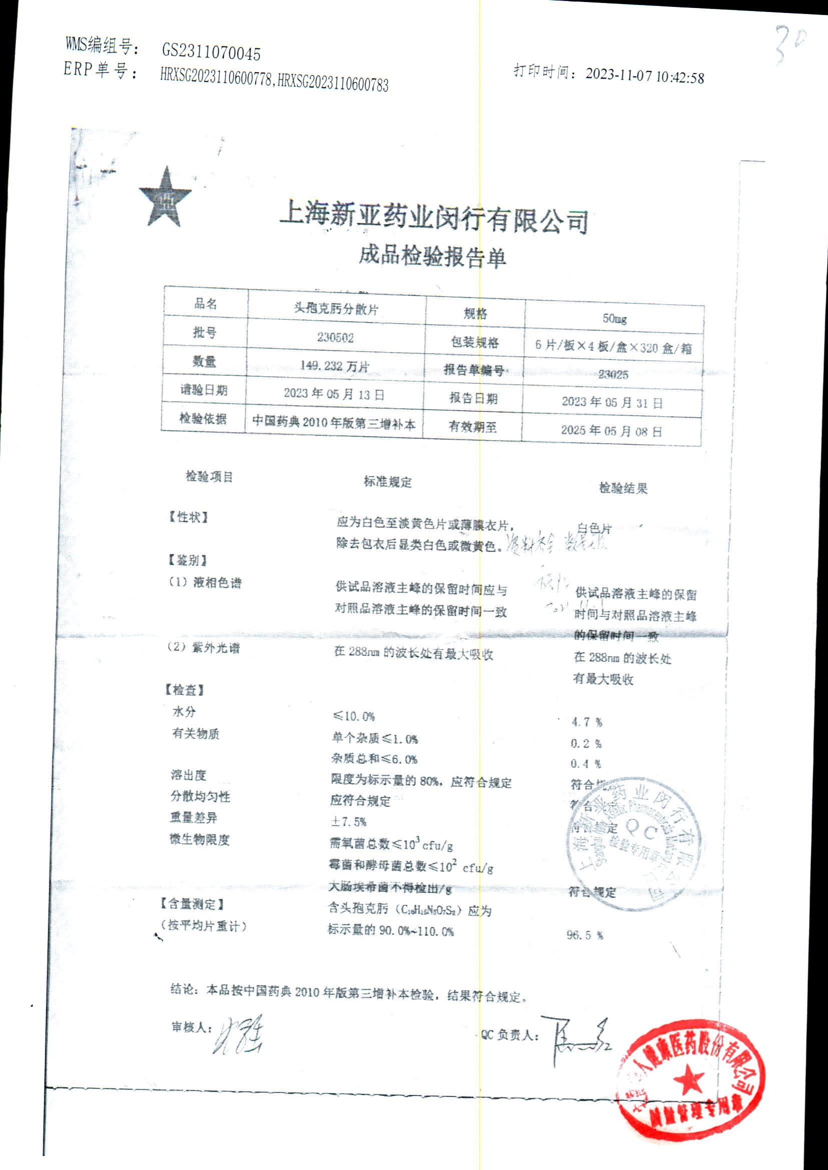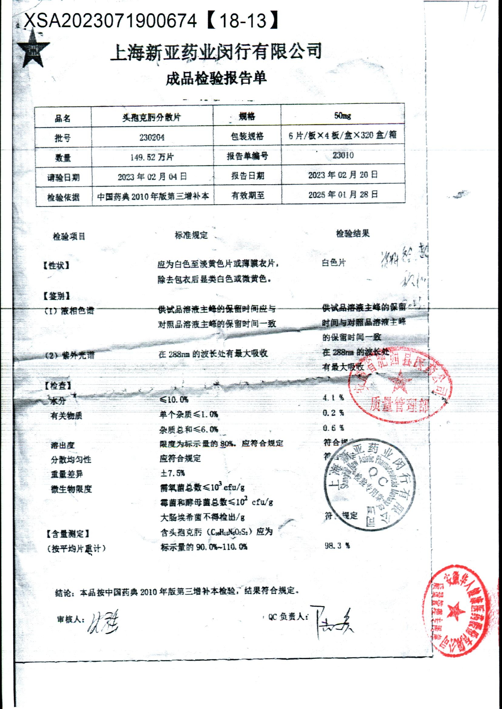 頭孢克肟分散片 | 50mg*24s | 230406 | 查看詳情 |
