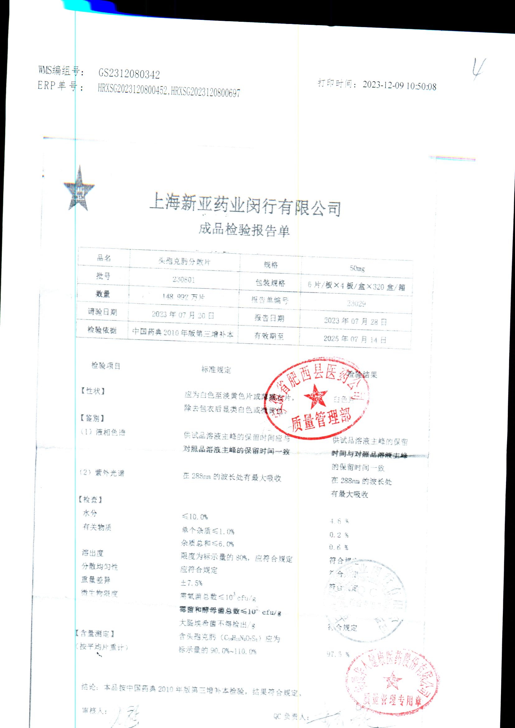 頭孢克肟分散片 | 50mg*24s | 230801 | 查看詳情 |