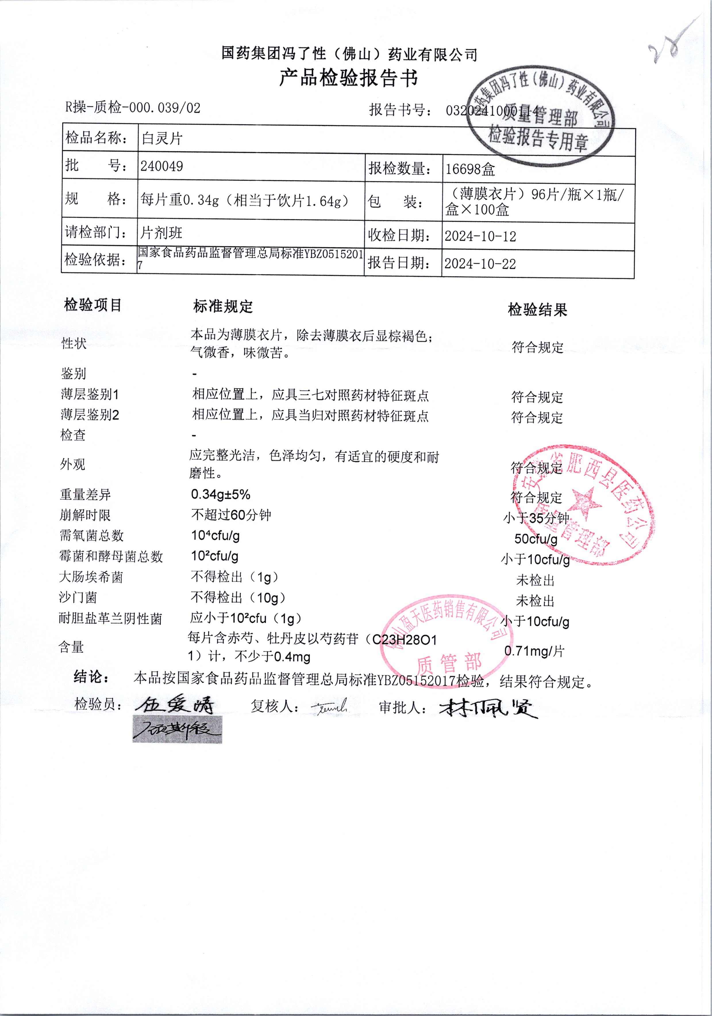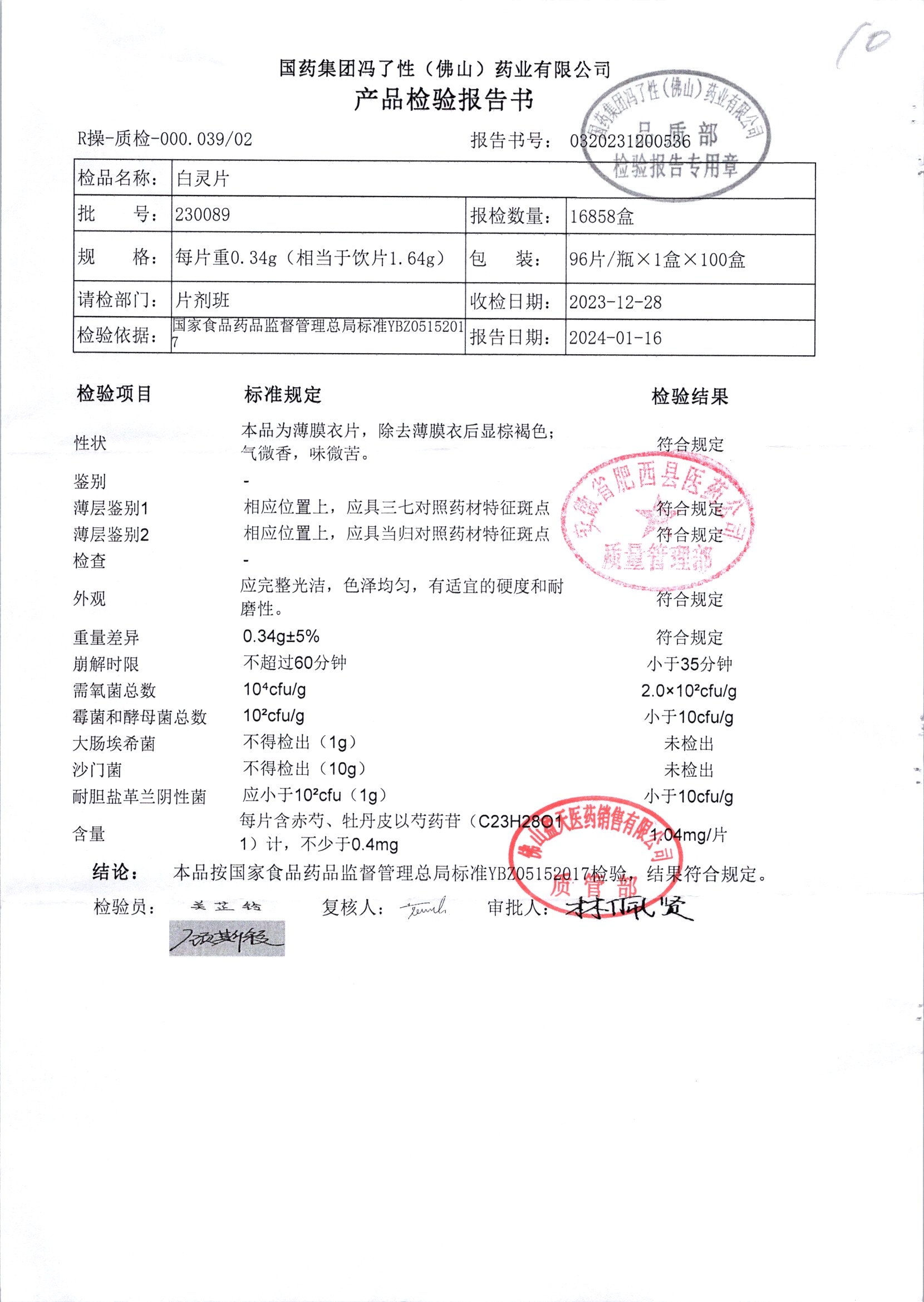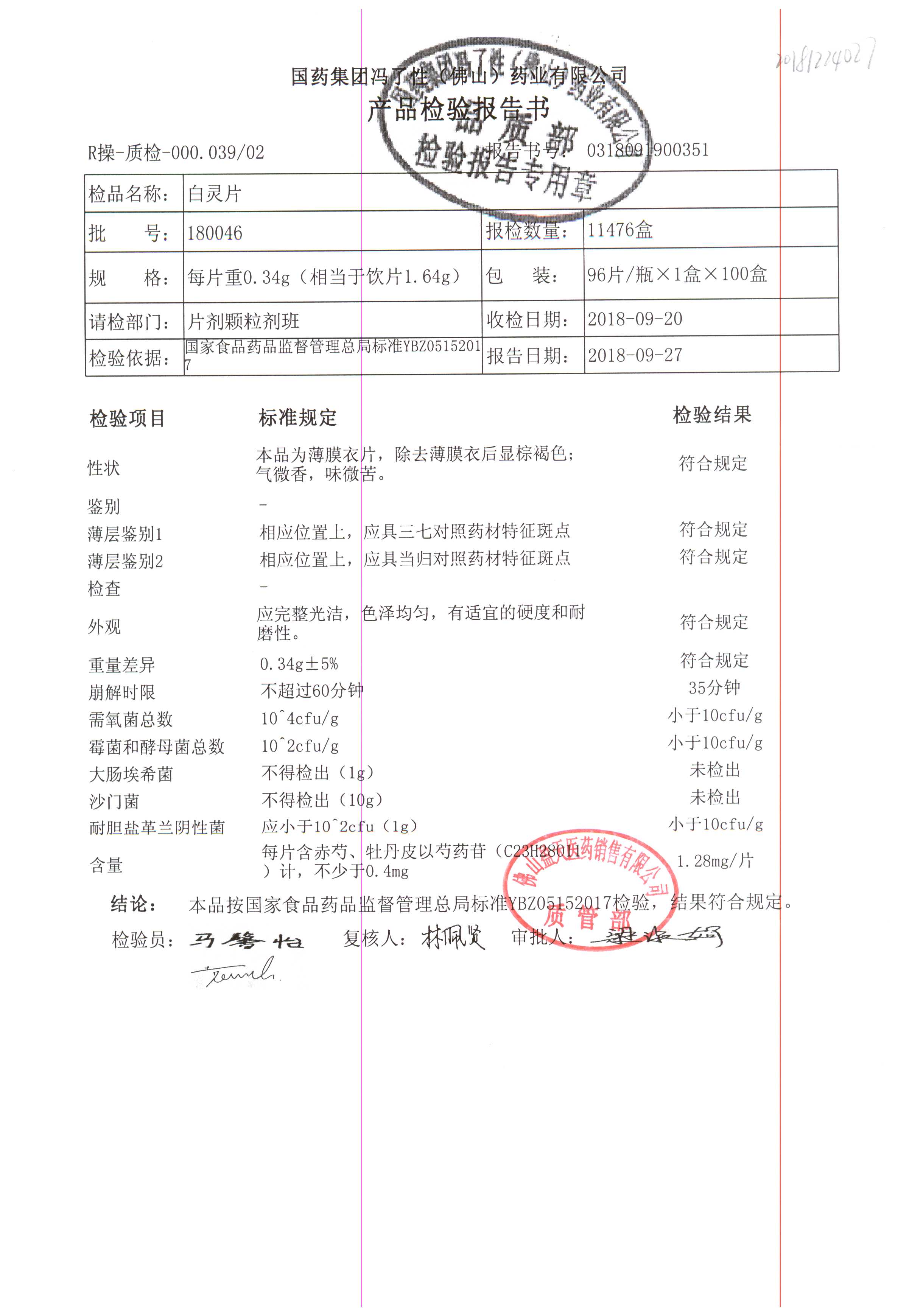 名稱 | 規(guī)格 | 批號 | 藥檢報(bào)告 |