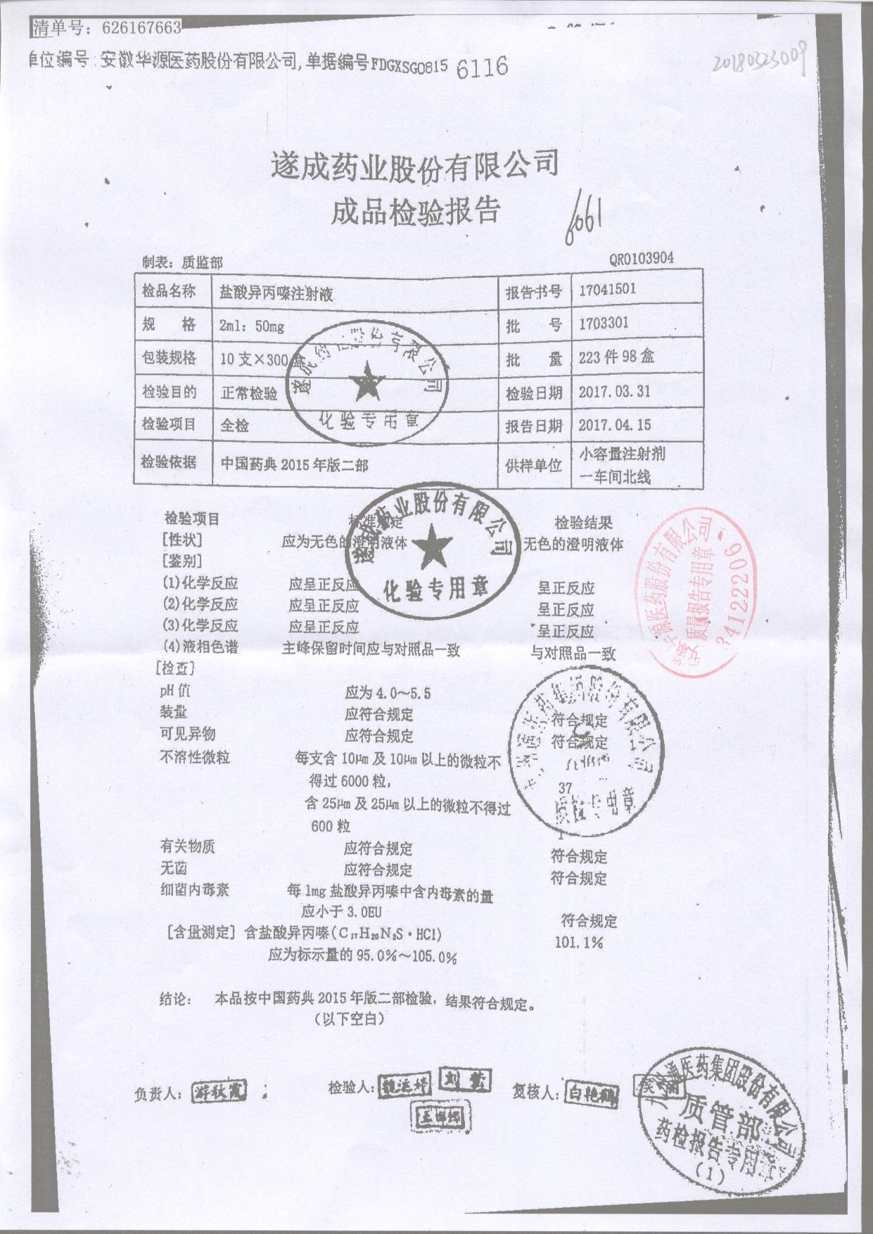 鹽酸異丙嗪注射液 2ml:50mg 1703301 查看詳情
