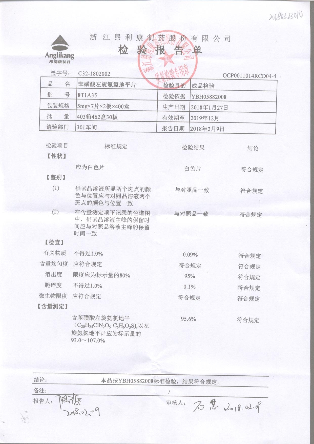 苯磺酸左旋氨氯地平片 5mg*7s 8T1A35 查看詳情