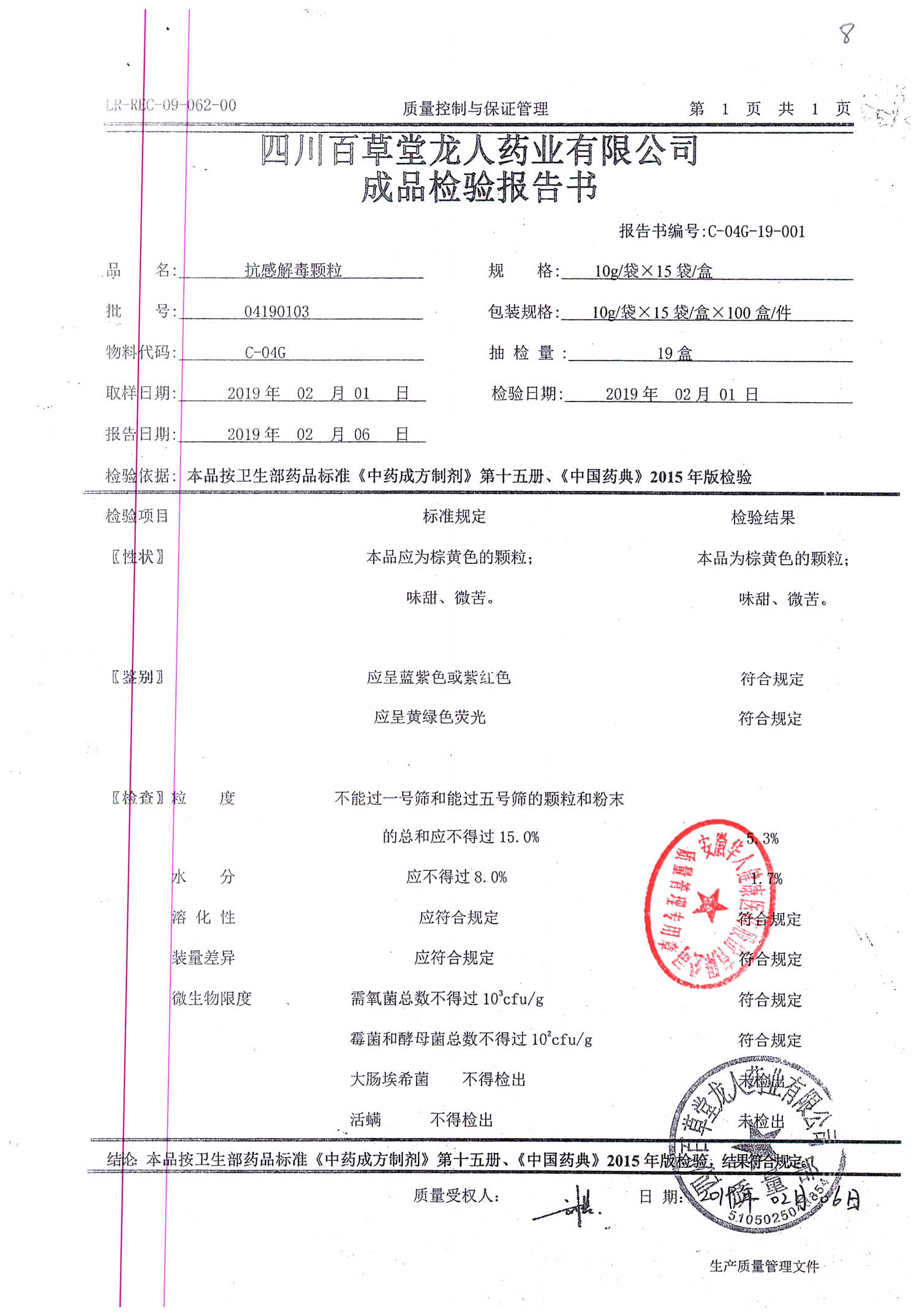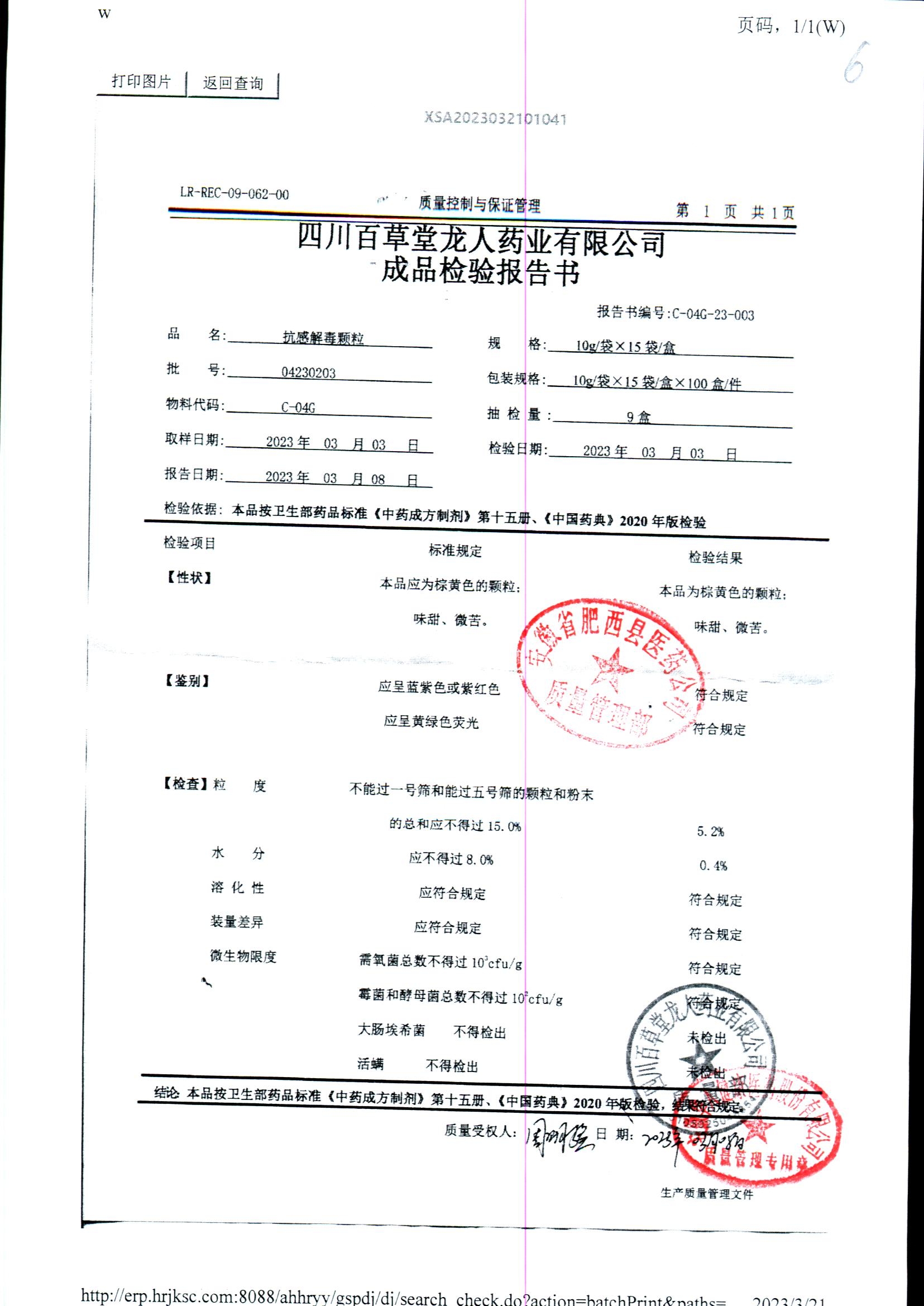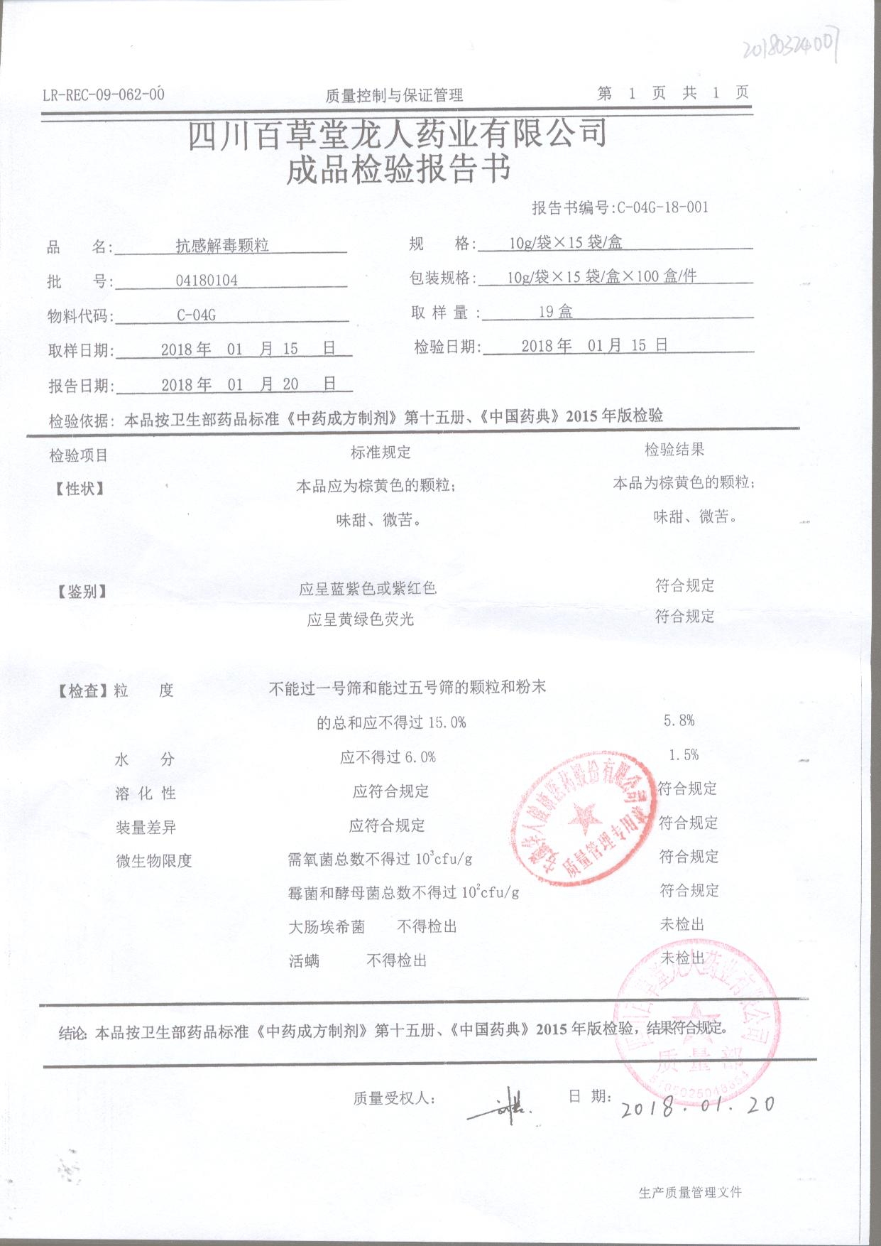 抗感解毒顆粒 | 10g*15袋 | 04180104 | 查看詳情 |
