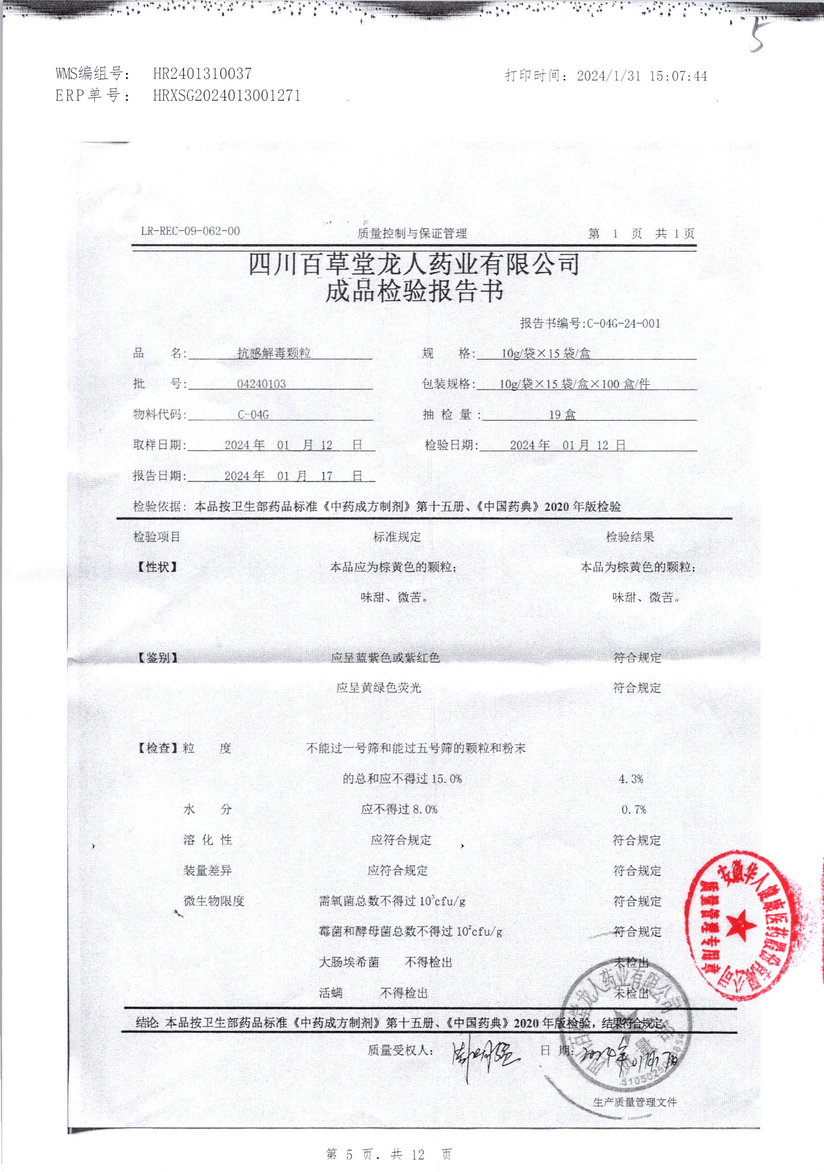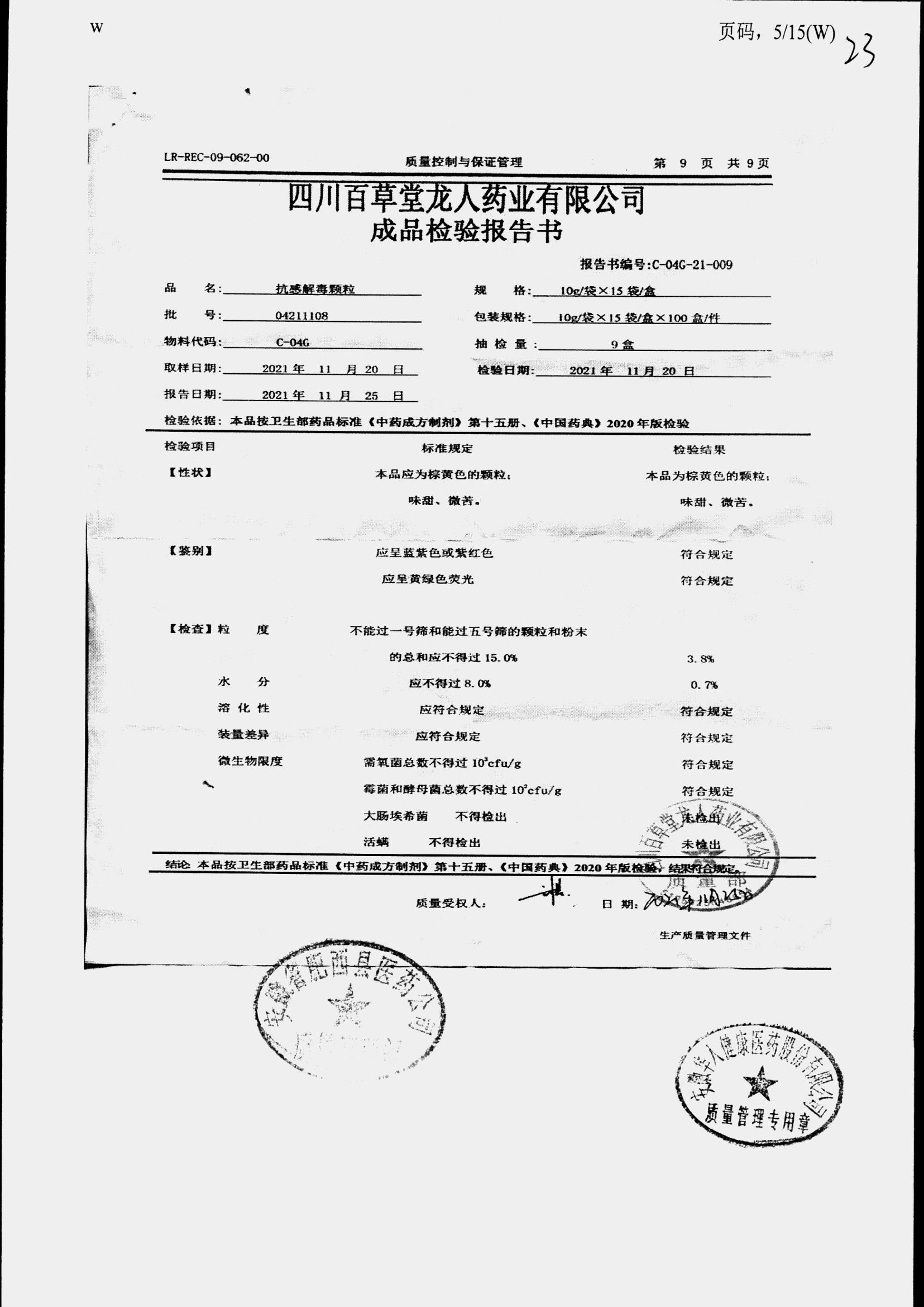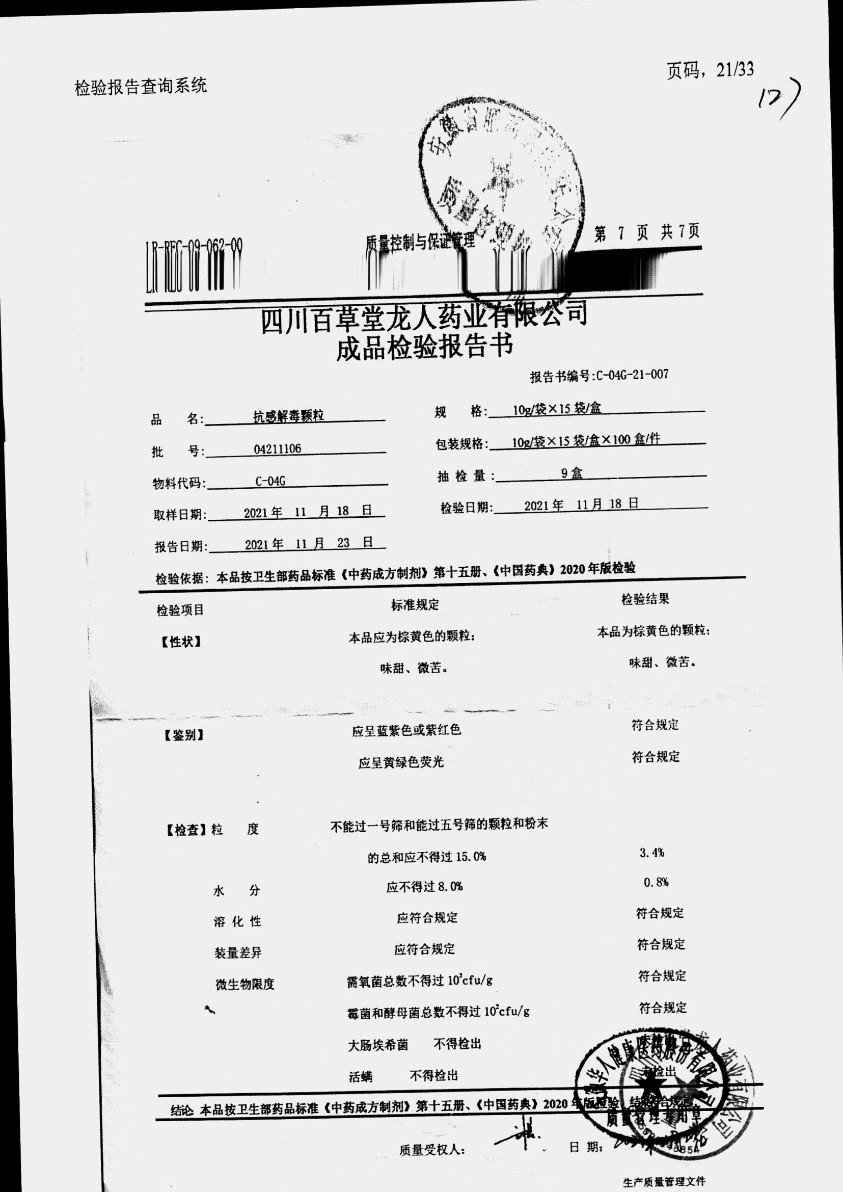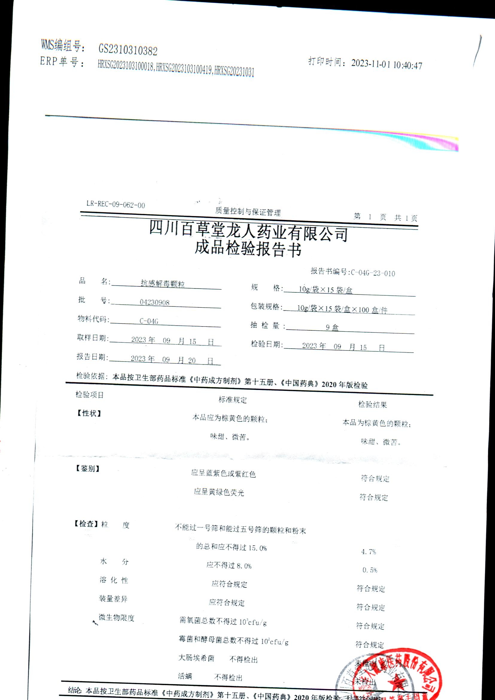 抗感解毒顆粒 | 10g*15袋 | 04180104 | 查看詳情 |