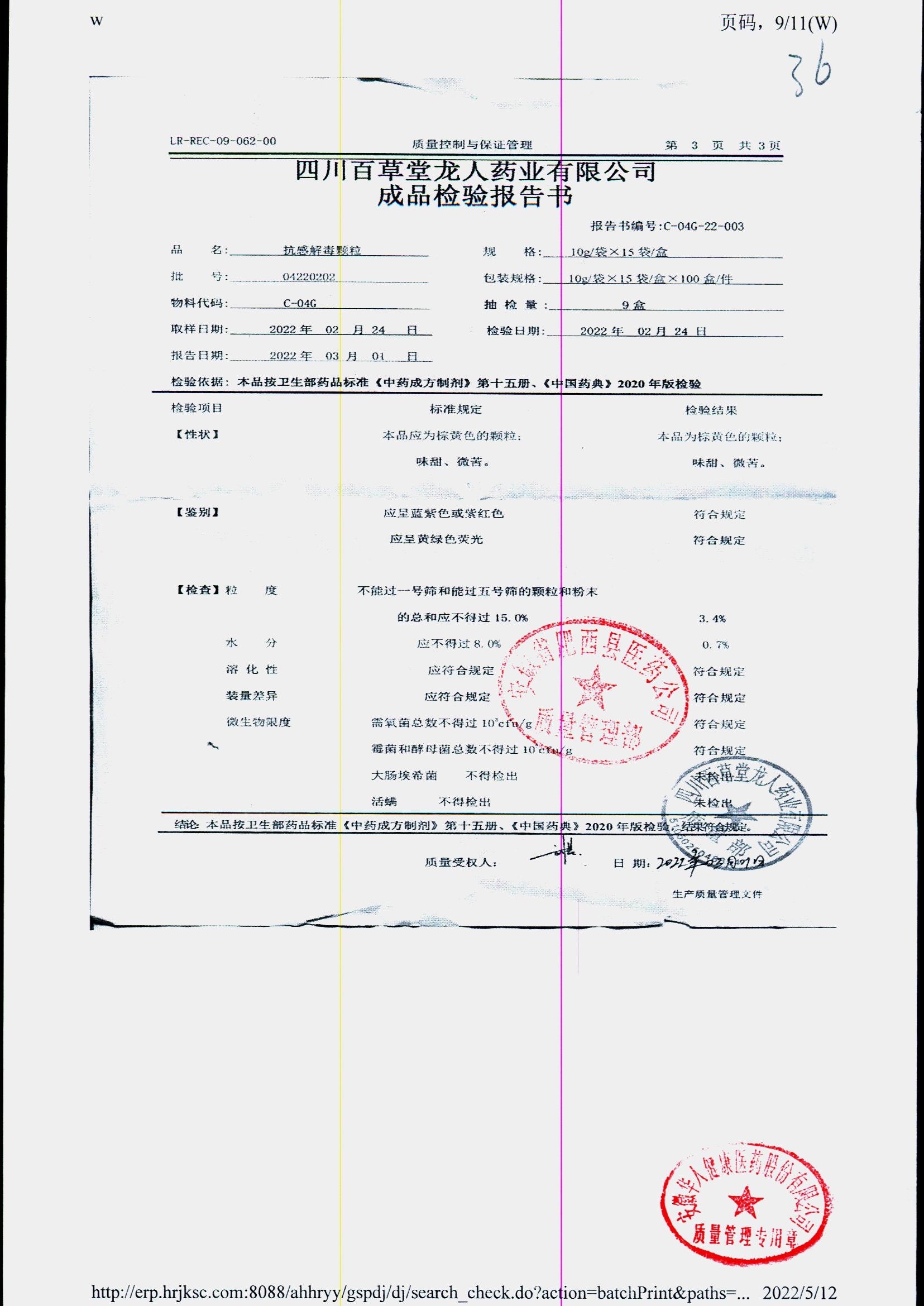 抗感解毒顆粒 | 10g*15袋 | 04220903 | 查看詳情 |