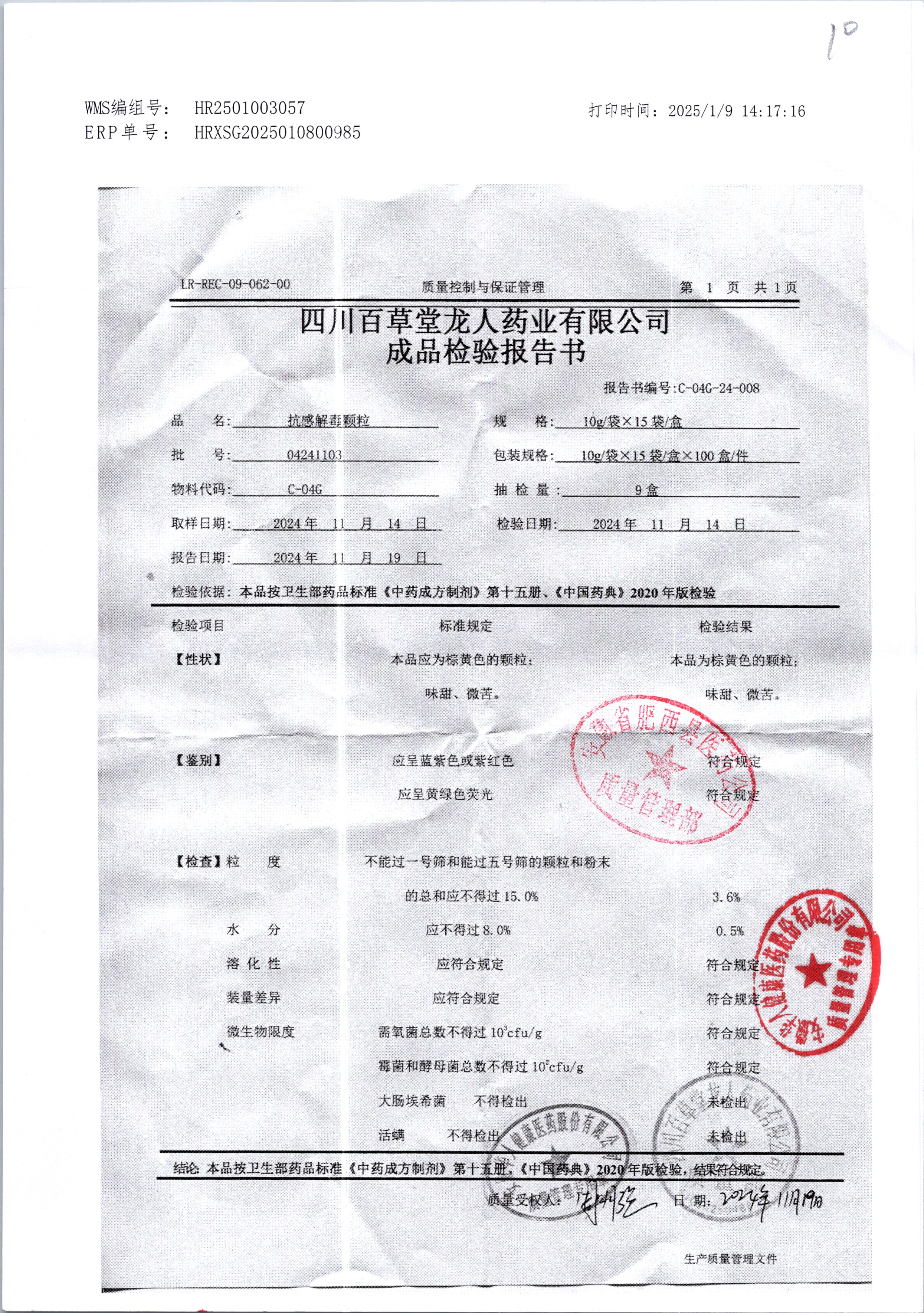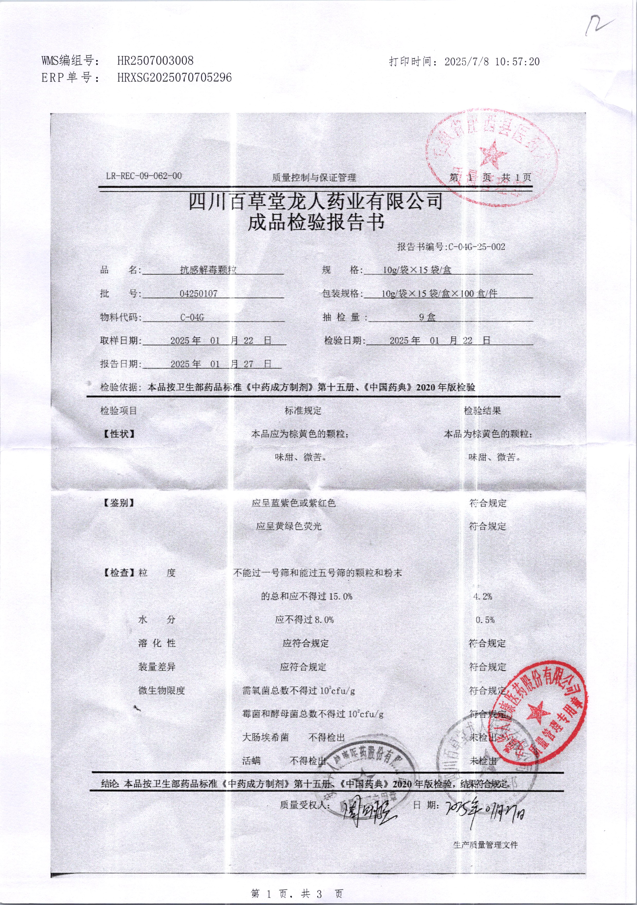 抗感解毒顆粒 | 10g*15袋 | 04250203 | 查看詳情 |