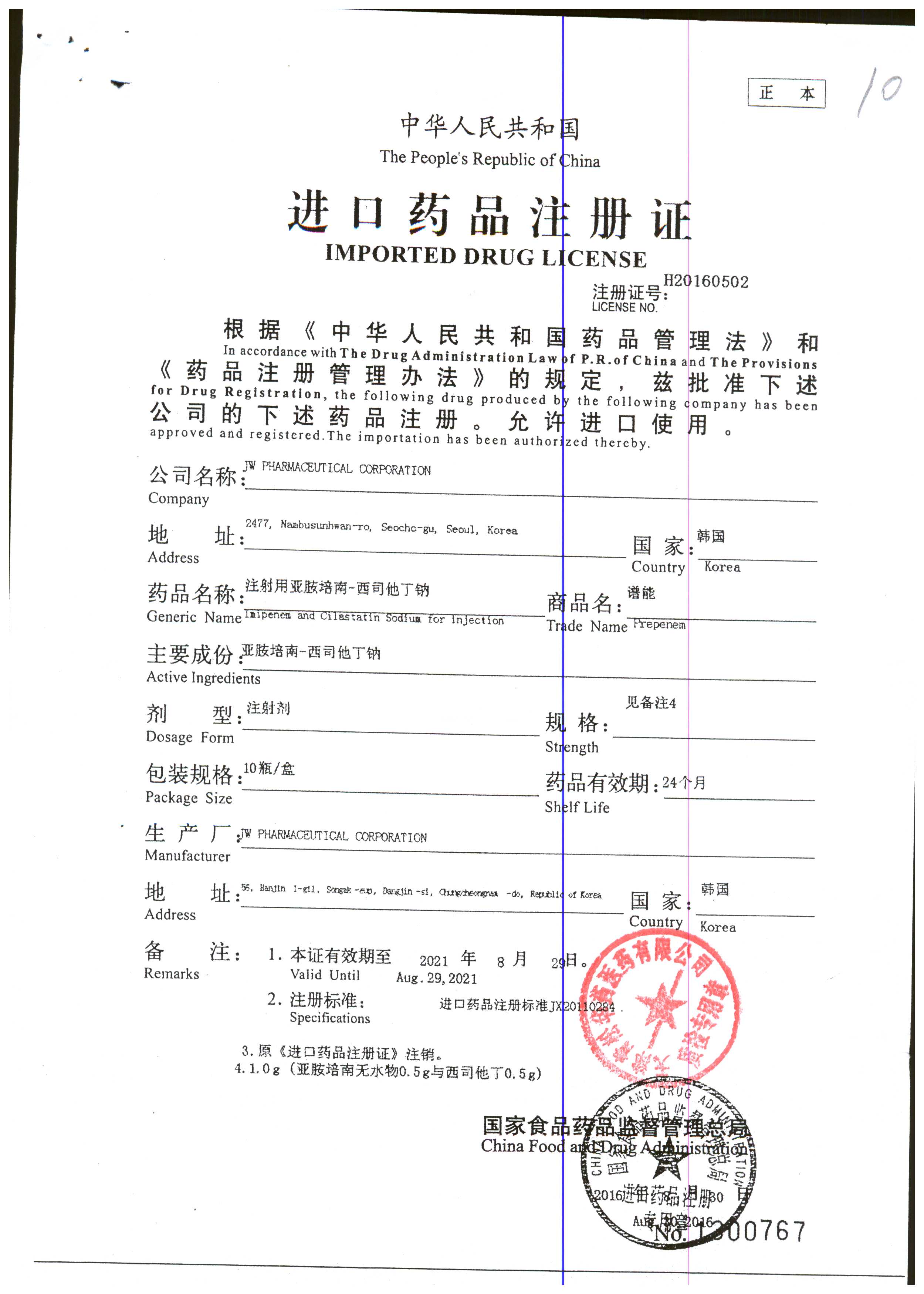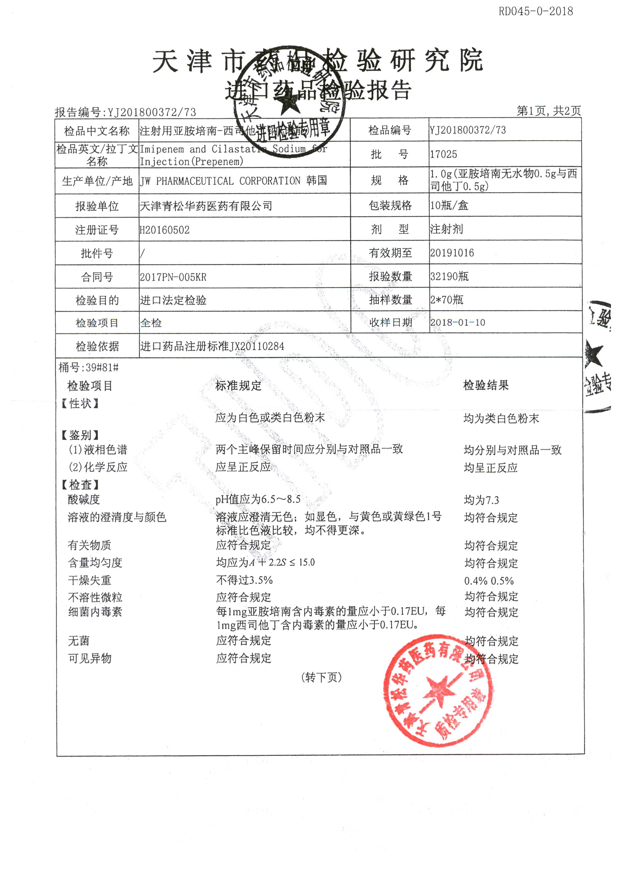 注射用亞胺培南-西司他丁鈉 | 1g*10瓶 | 17025(4/4) | 查看詳情 |