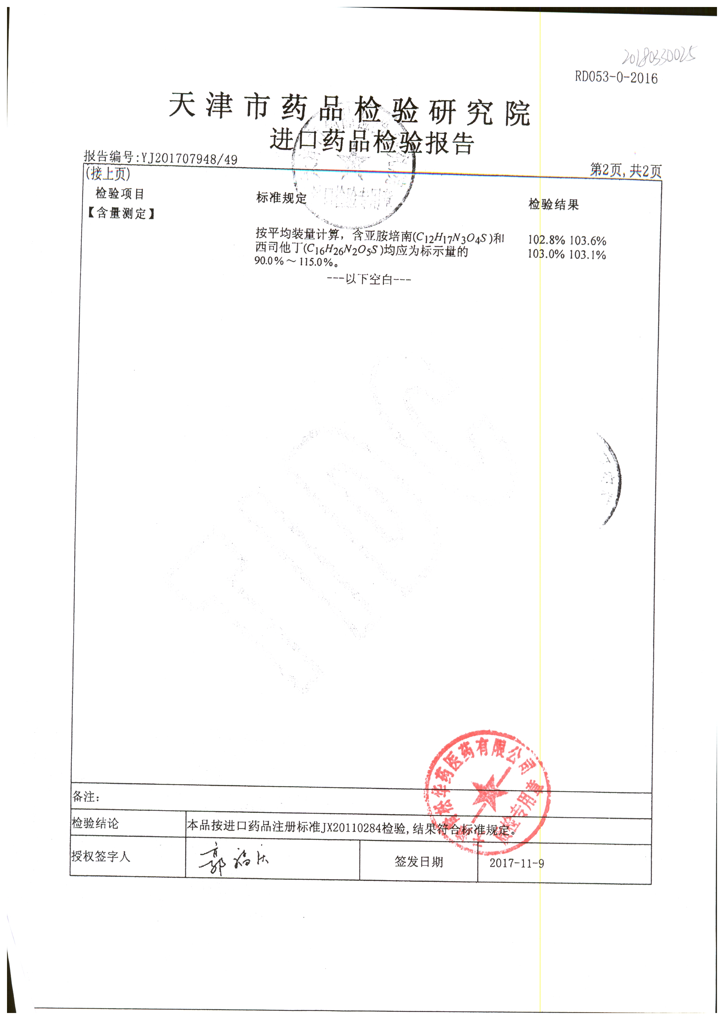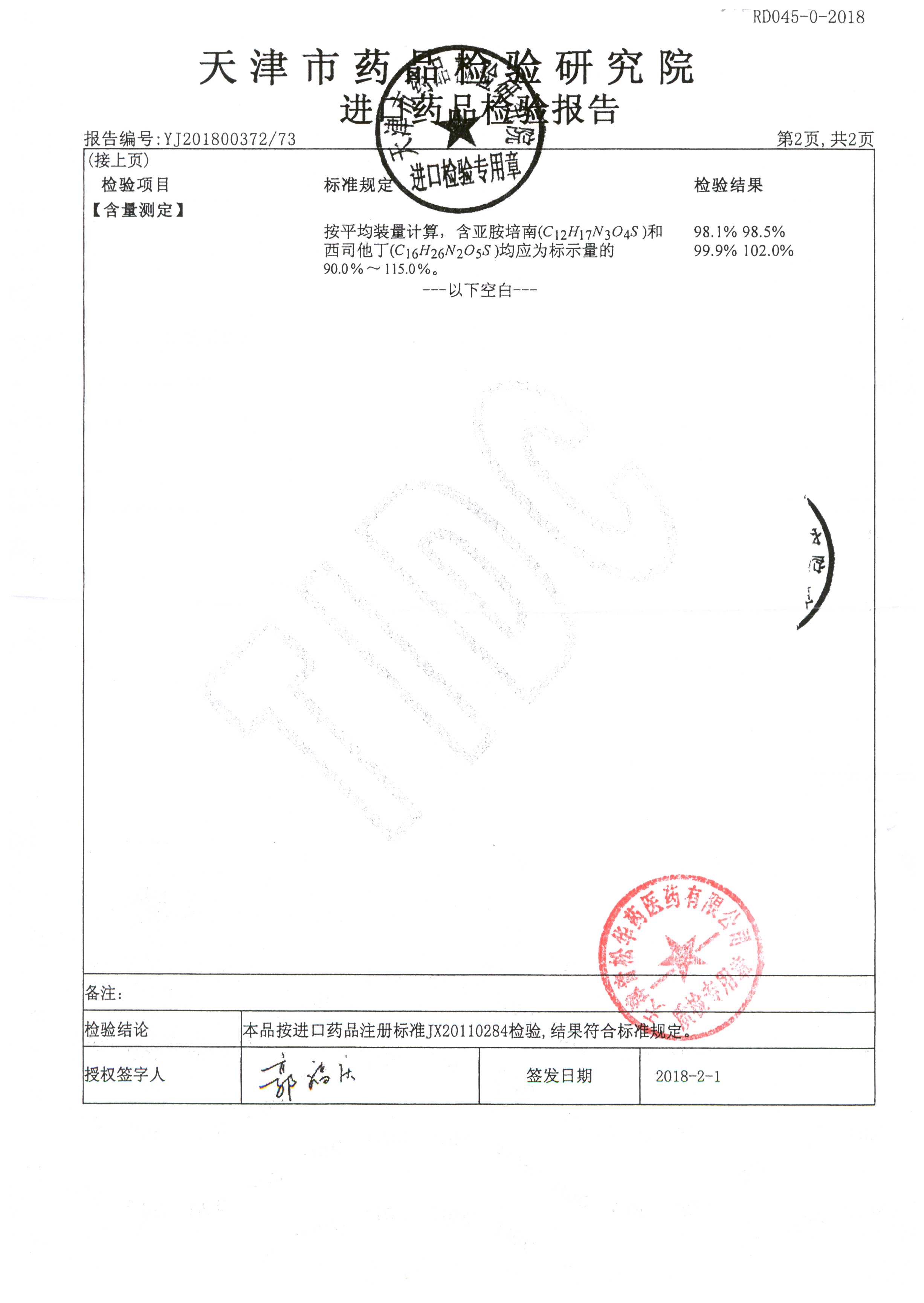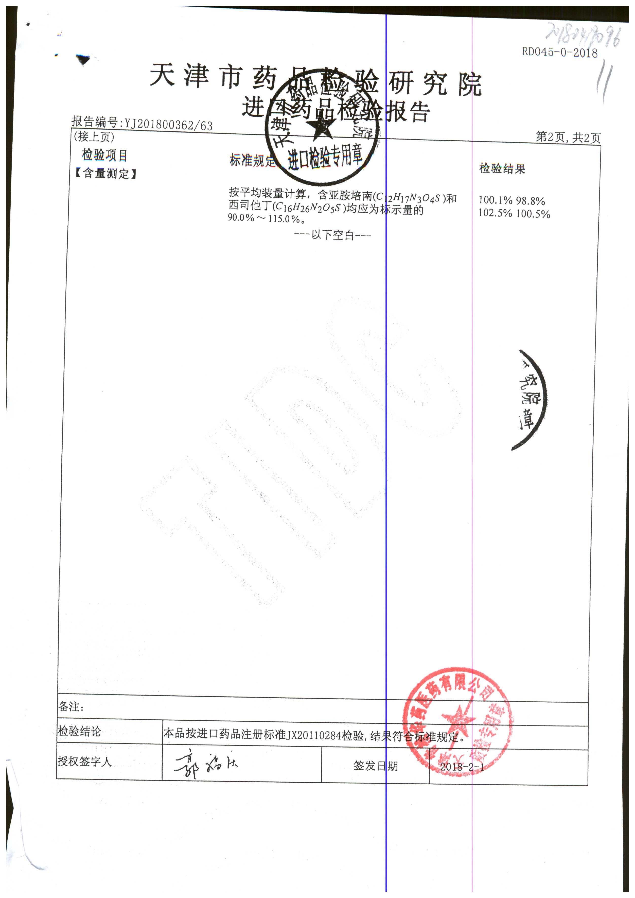 注射用亞胺培南-西司他丁鈉 | 1g*10瓶 | 17025(3/4) | 查看詳情 |