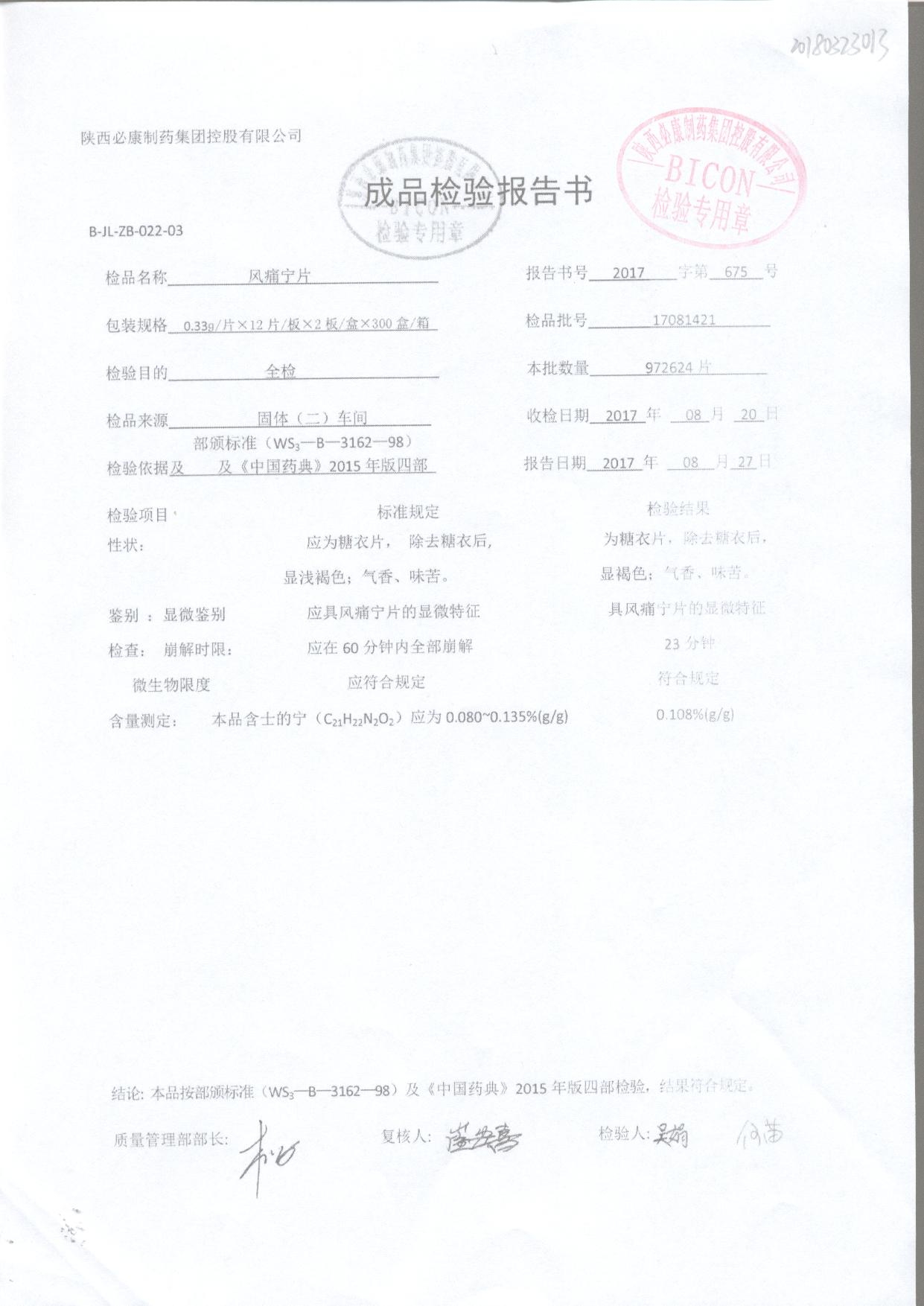 風(fēng)痛寧片 0.33g*12s 17081421 查看詳情