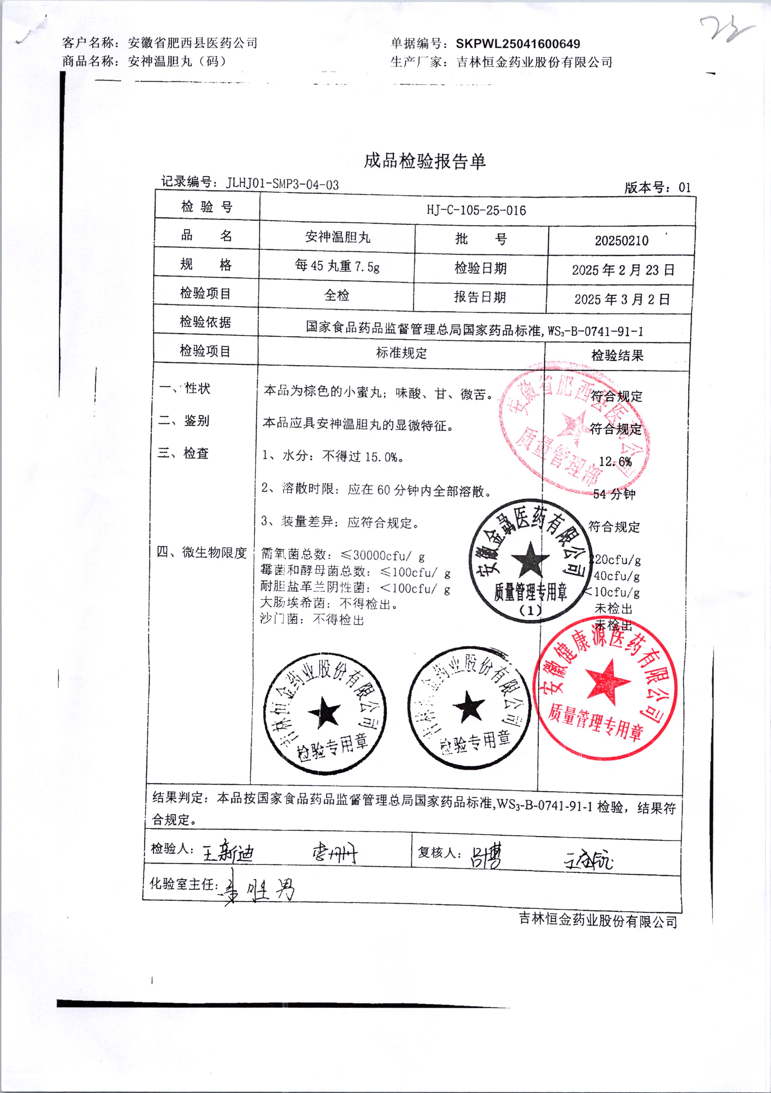 安神溫膽丸 45丸7.5g 20250210 查看詳情