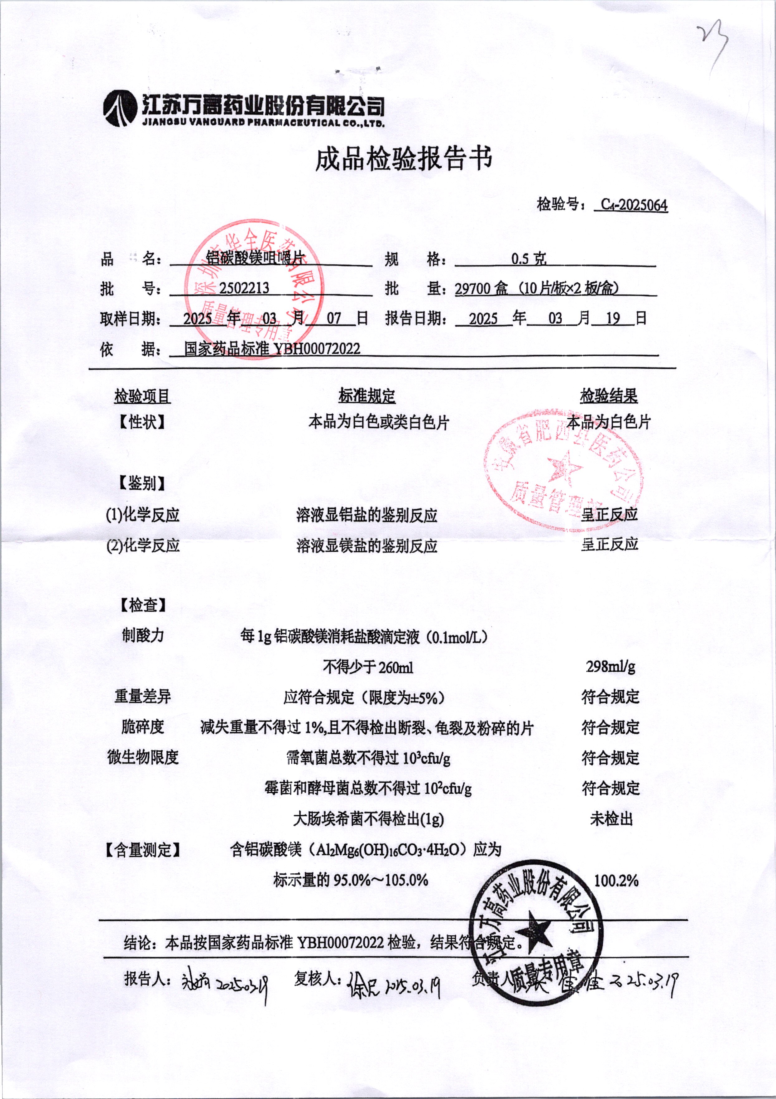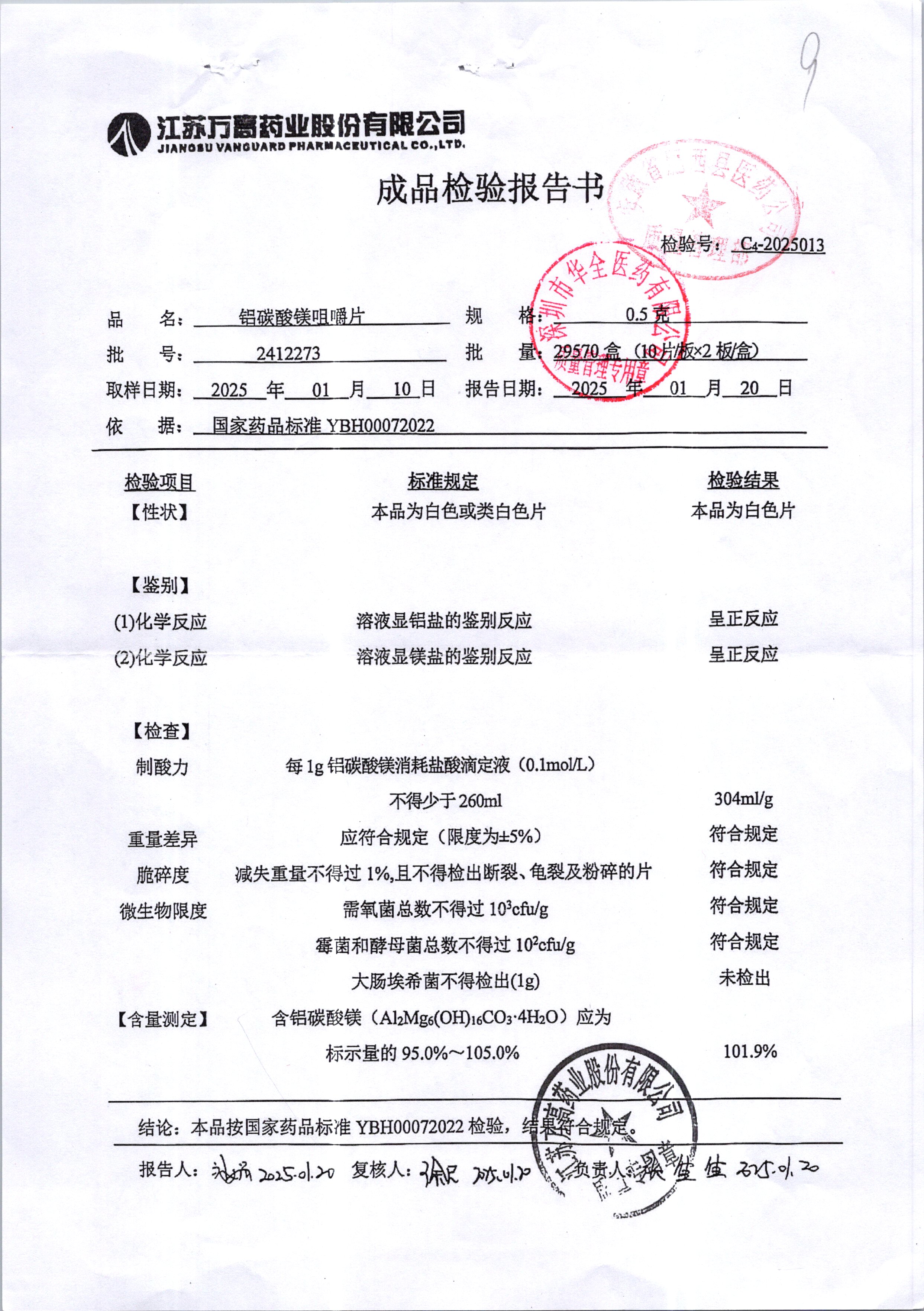 名稱(chēng) 規(guī)格 批號(hào) 藥檢報(bào)告