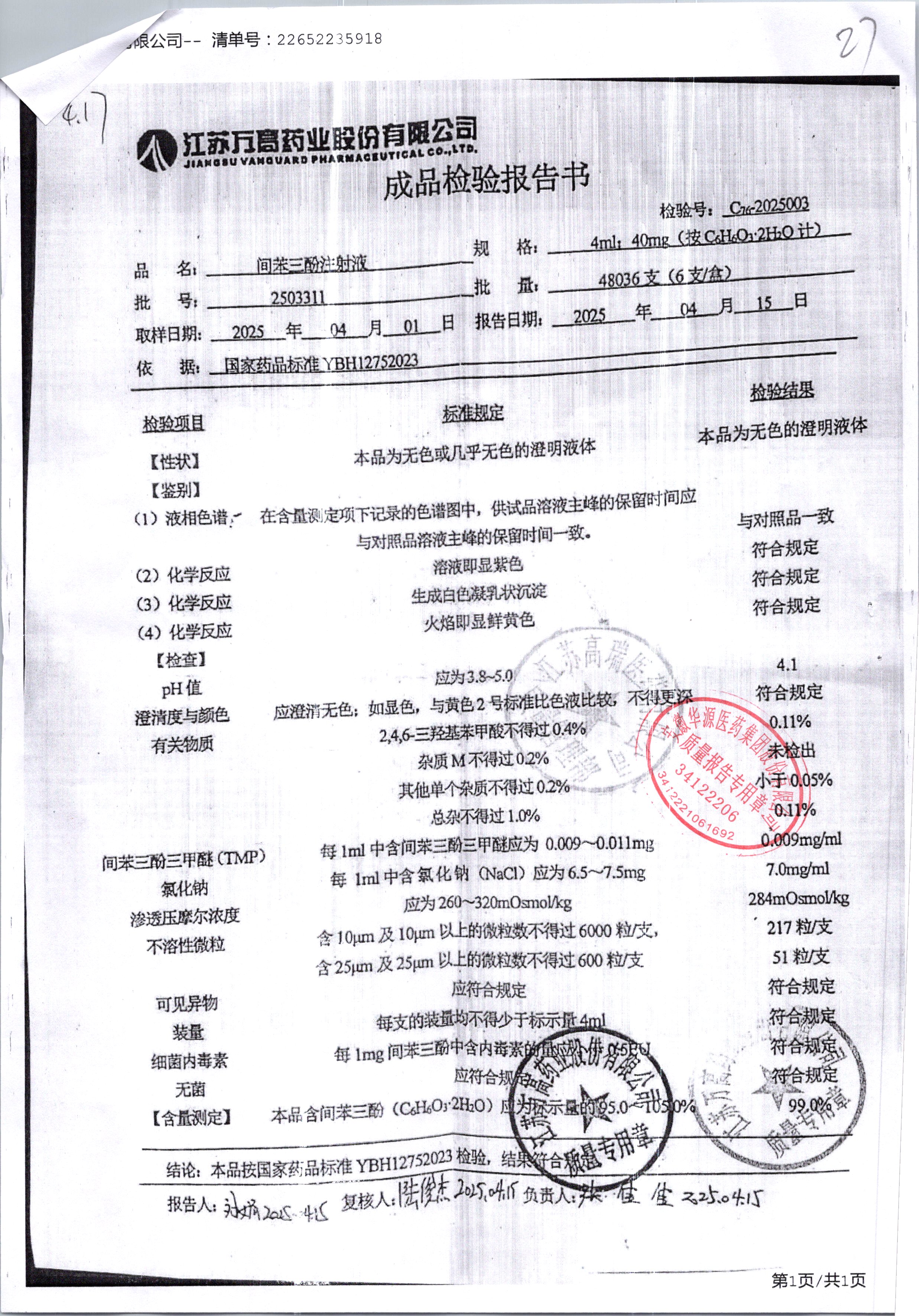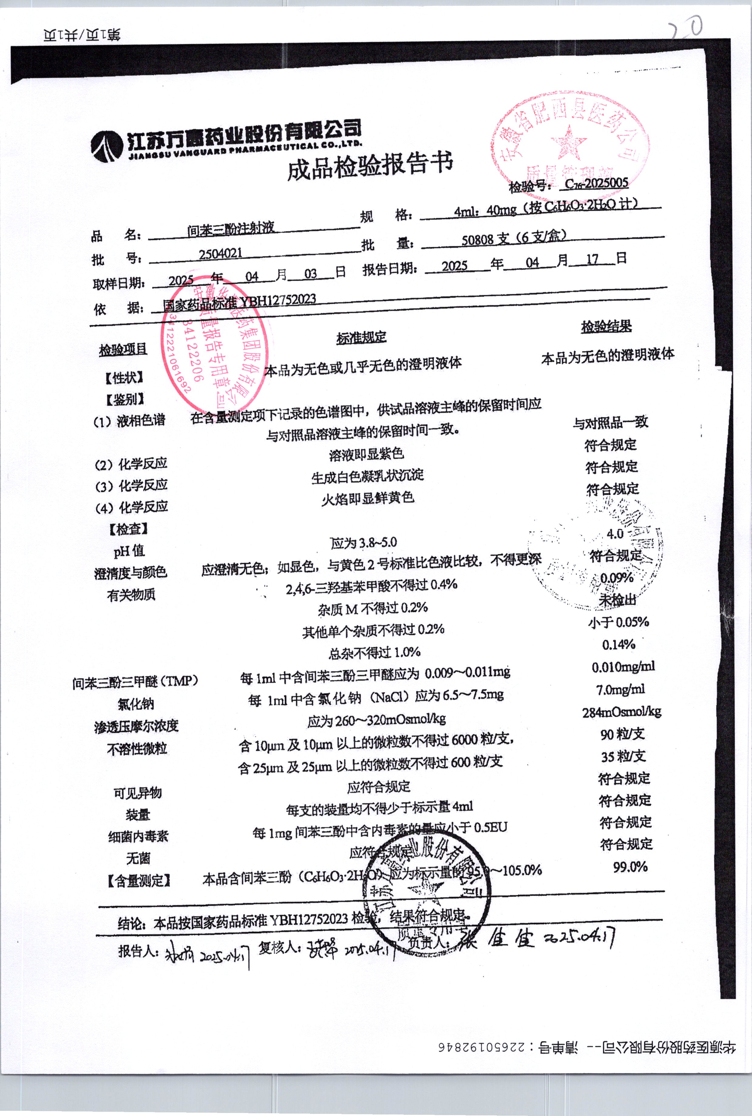 間苯三酚注射液 | 4ml:40mg | 2504021 | 查看詳情 |