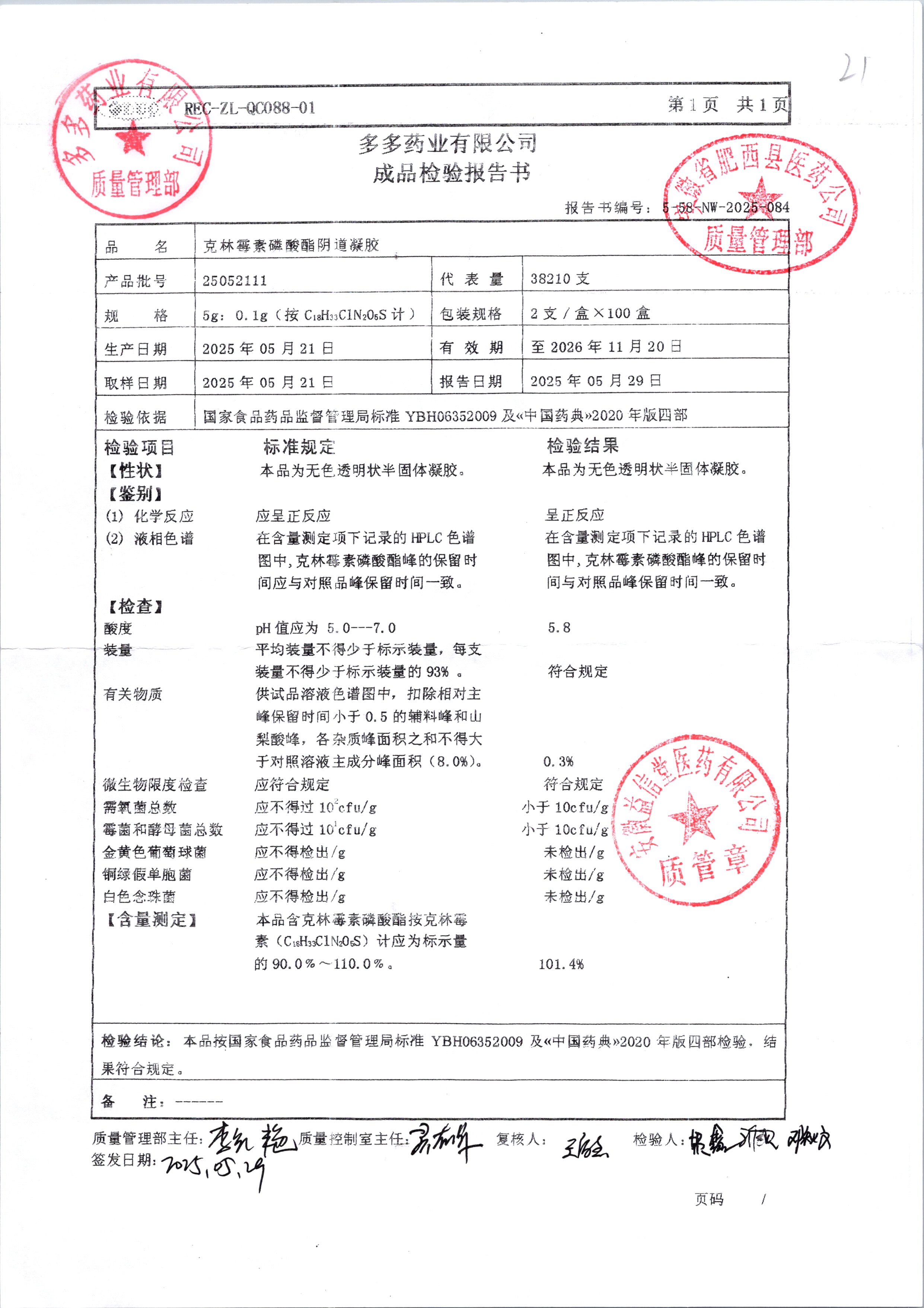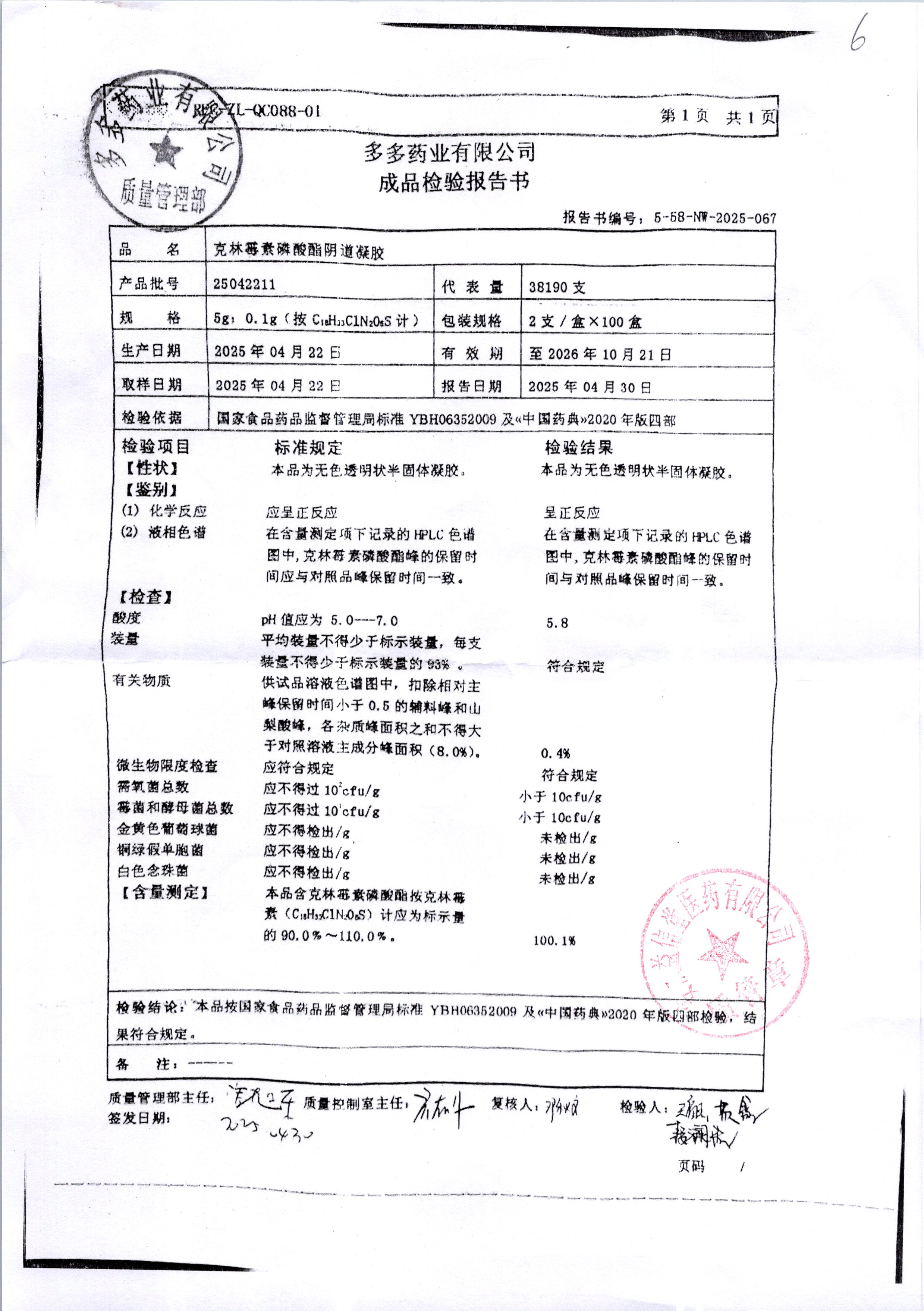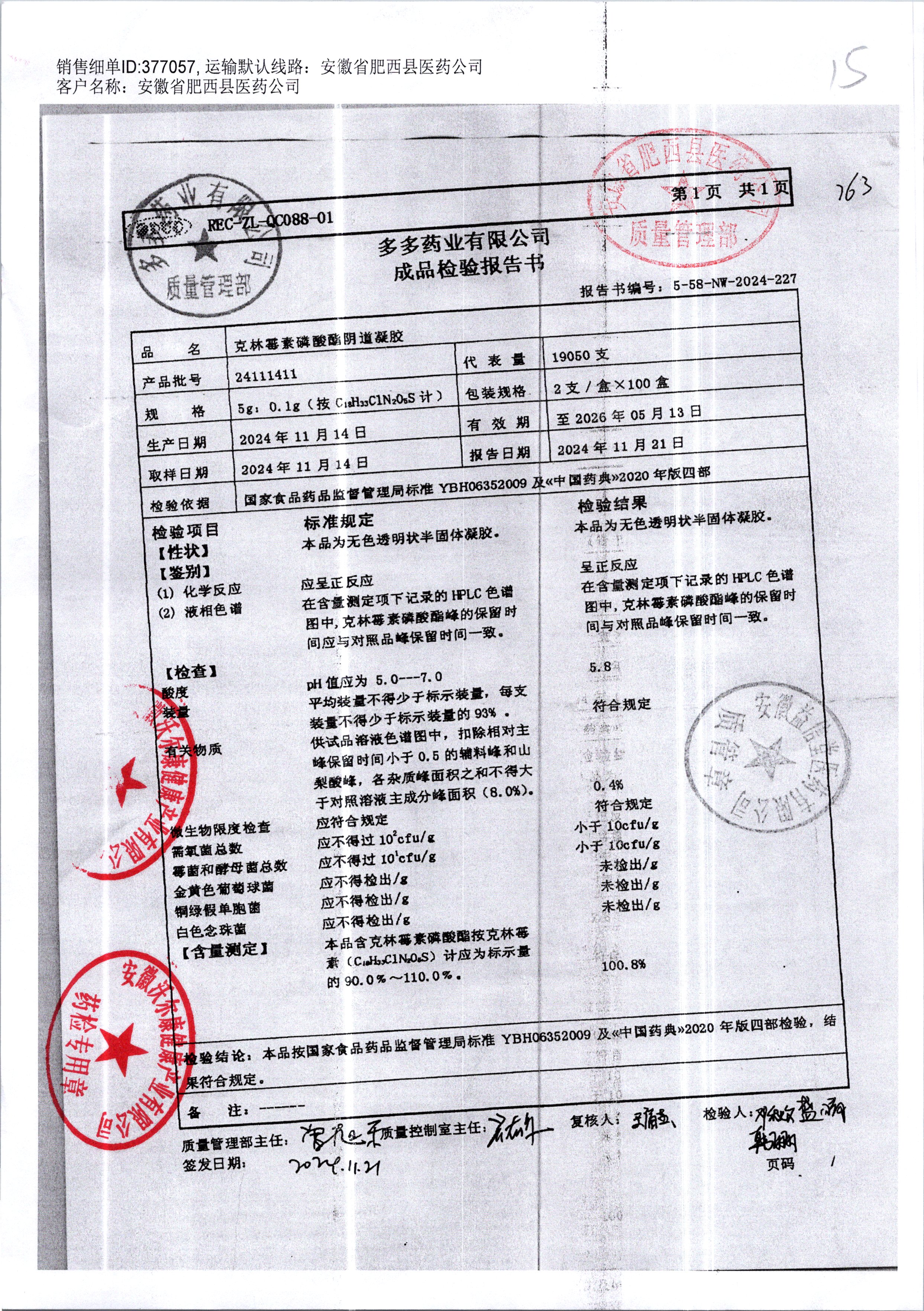克林霉素磷酸酯陰道凝膠 | 5g:0.1g | 24111411 | 查看詳情 |