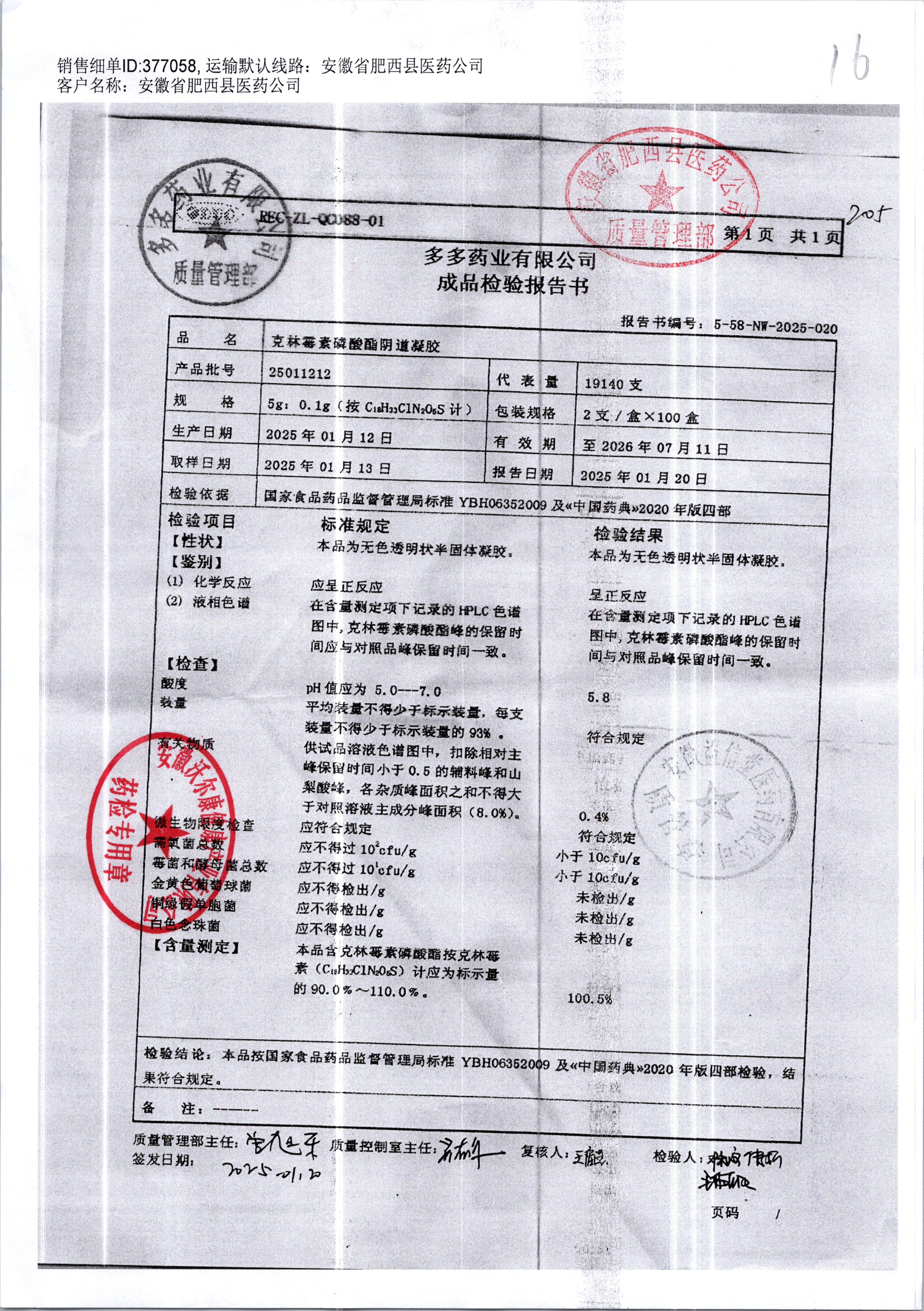 克林霉素磷酸酯陰道凝膠 | 5g:0.1g | 25011212 | 查看詳情 |