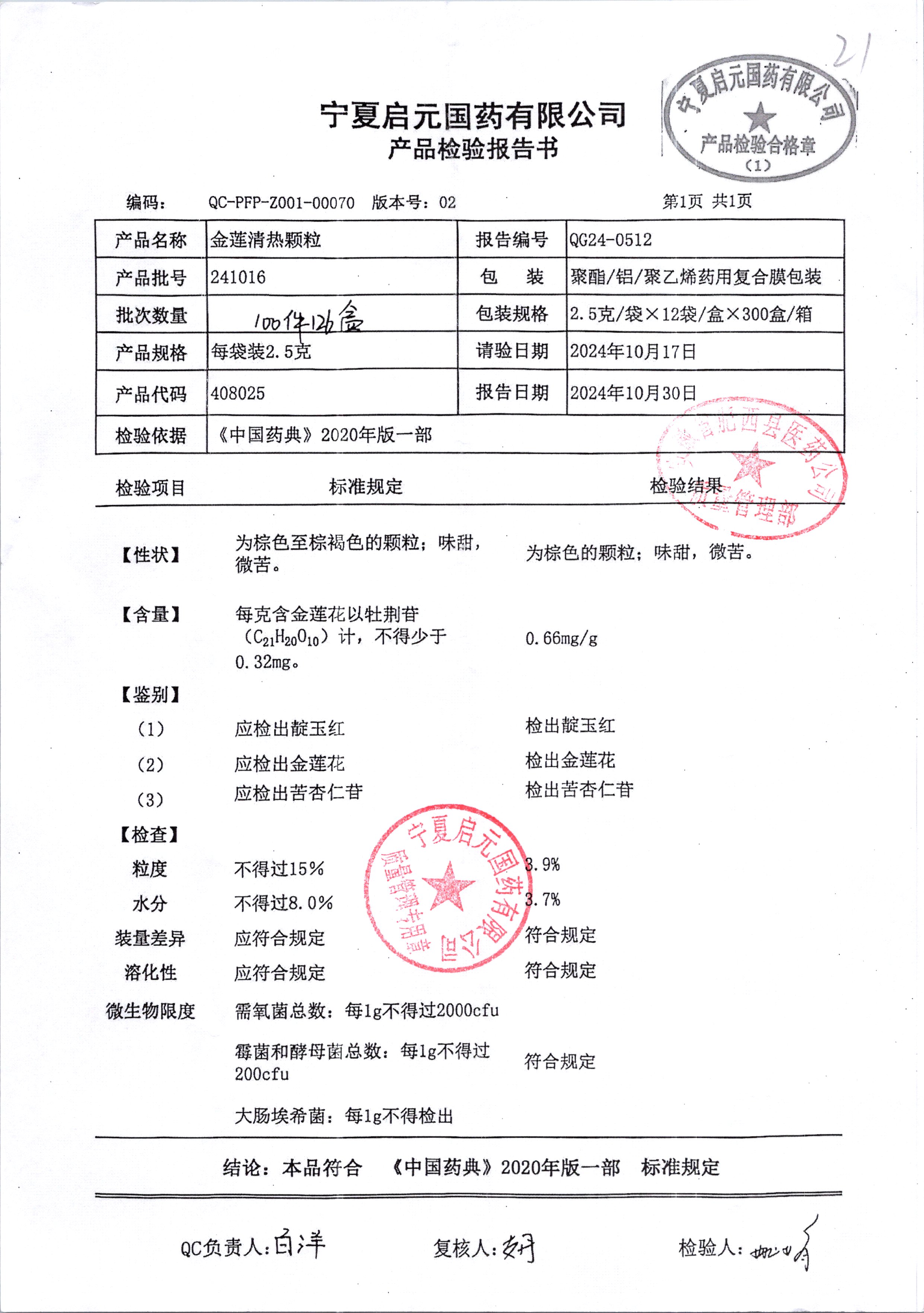 名稱 規(guī)格 批號(hào) 藥檢報(bào)告