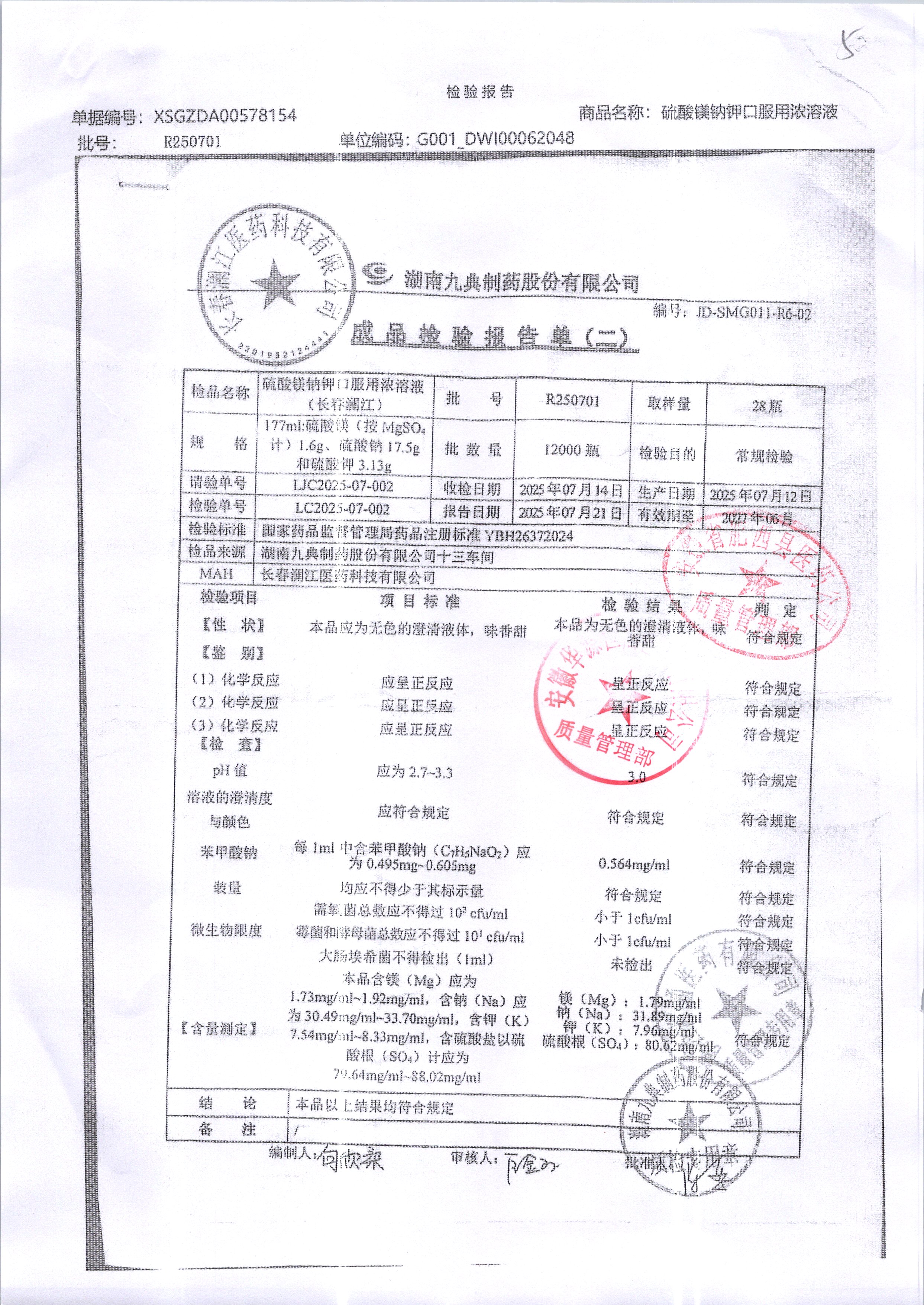 硫酸鎂鈉鉀口服用濃溶液 | 177ml | R250302 | 查看詳情 |