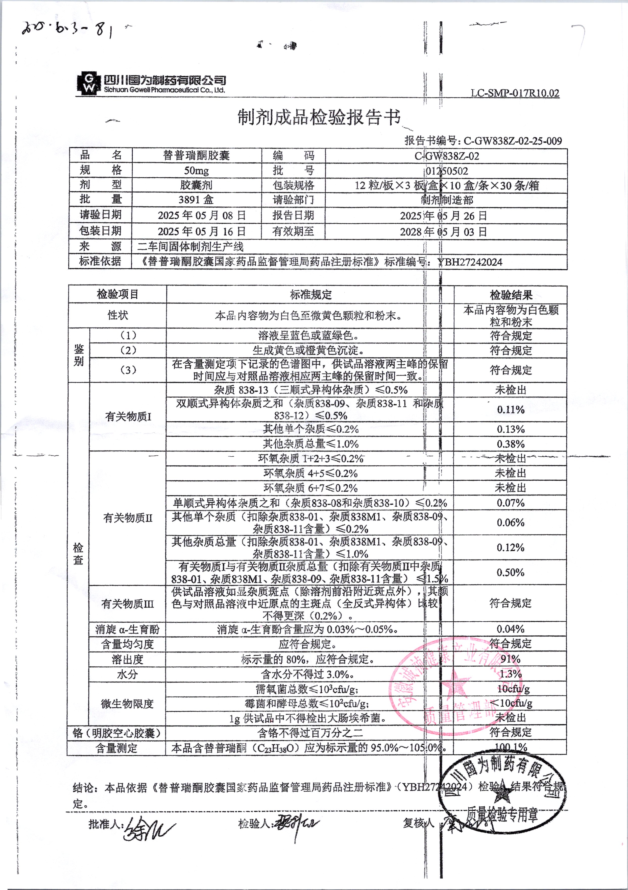 替普瑞酮膠囊 | 50mg*36s | 01250501 | 查看詳情 |