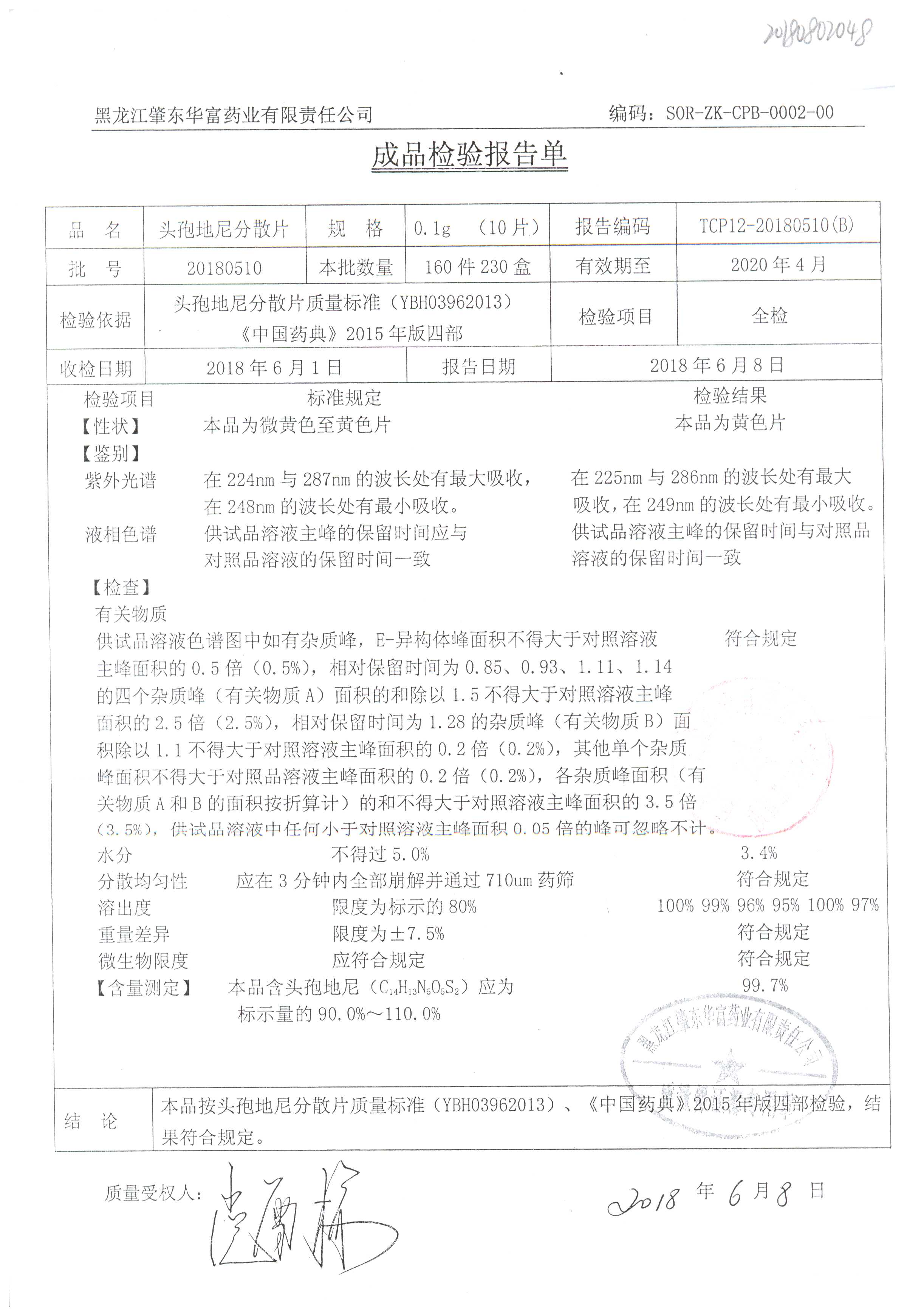 頭孢地尼分散片 | 0.1g*10s | 20180510 | 查看詳情 |