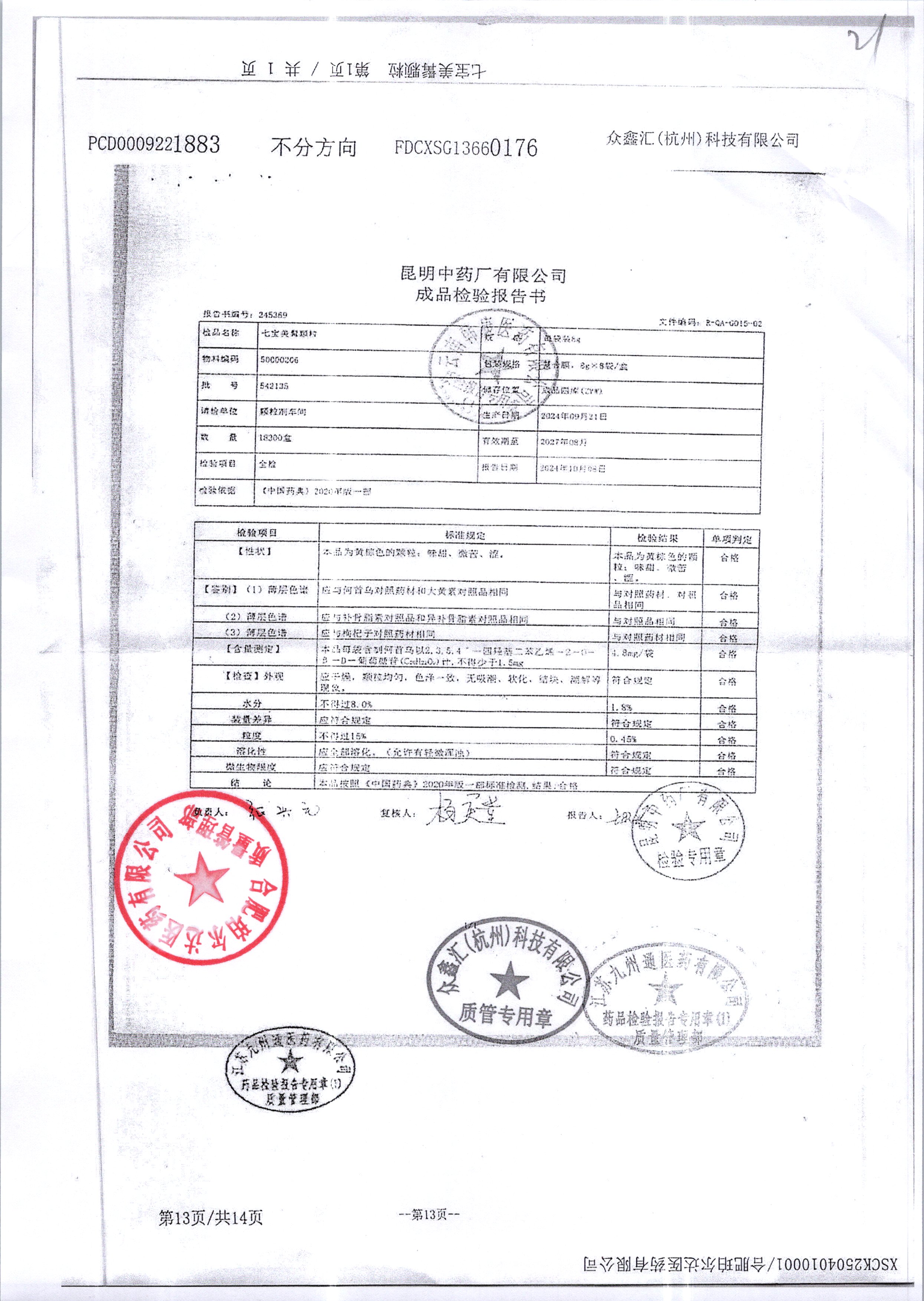 名稱 規(guī)格 批號(hào) 藥檢報(bào)告