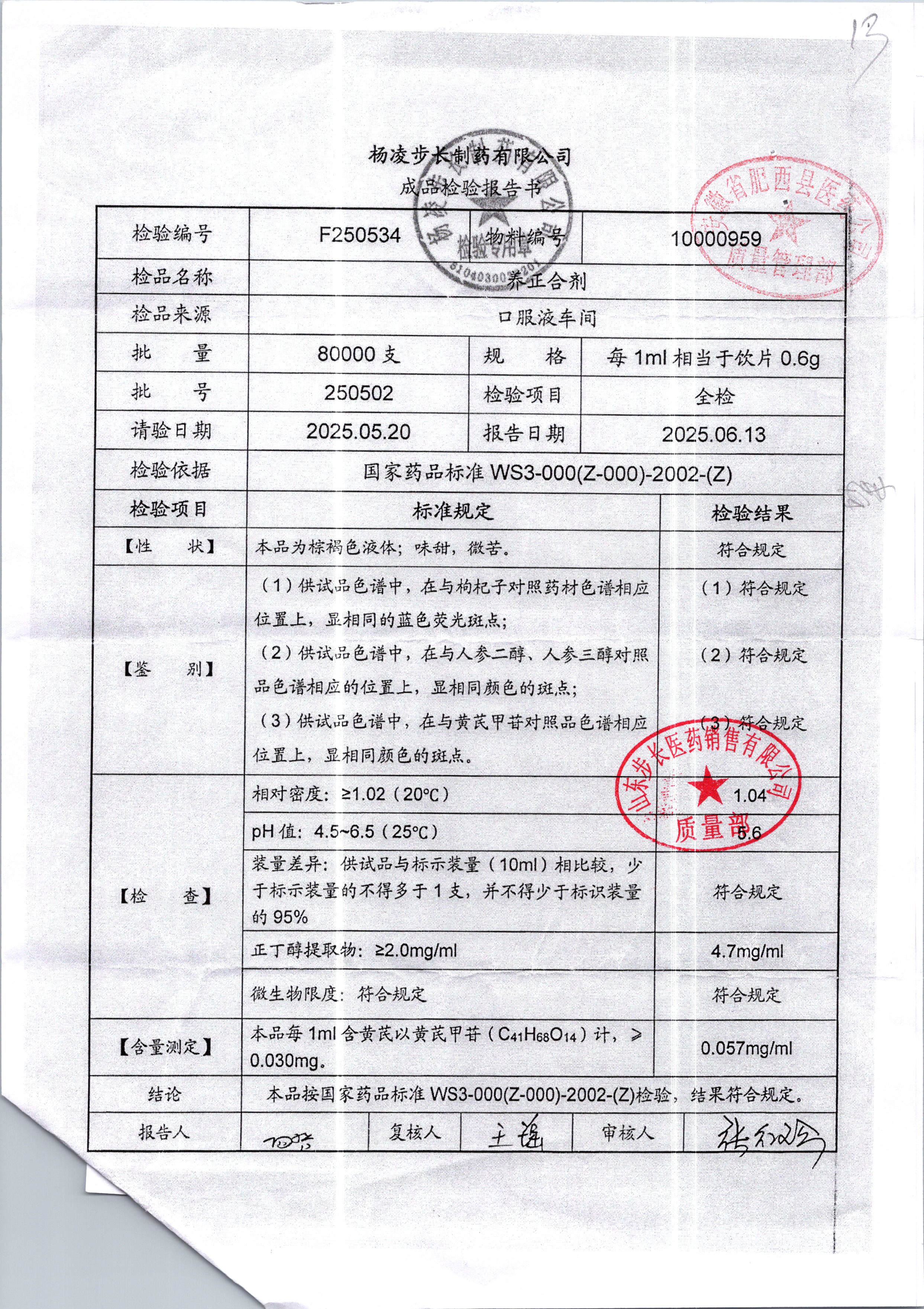 養(yǎng)正合劑 | 1ml | 250502 | 查看詳情 |