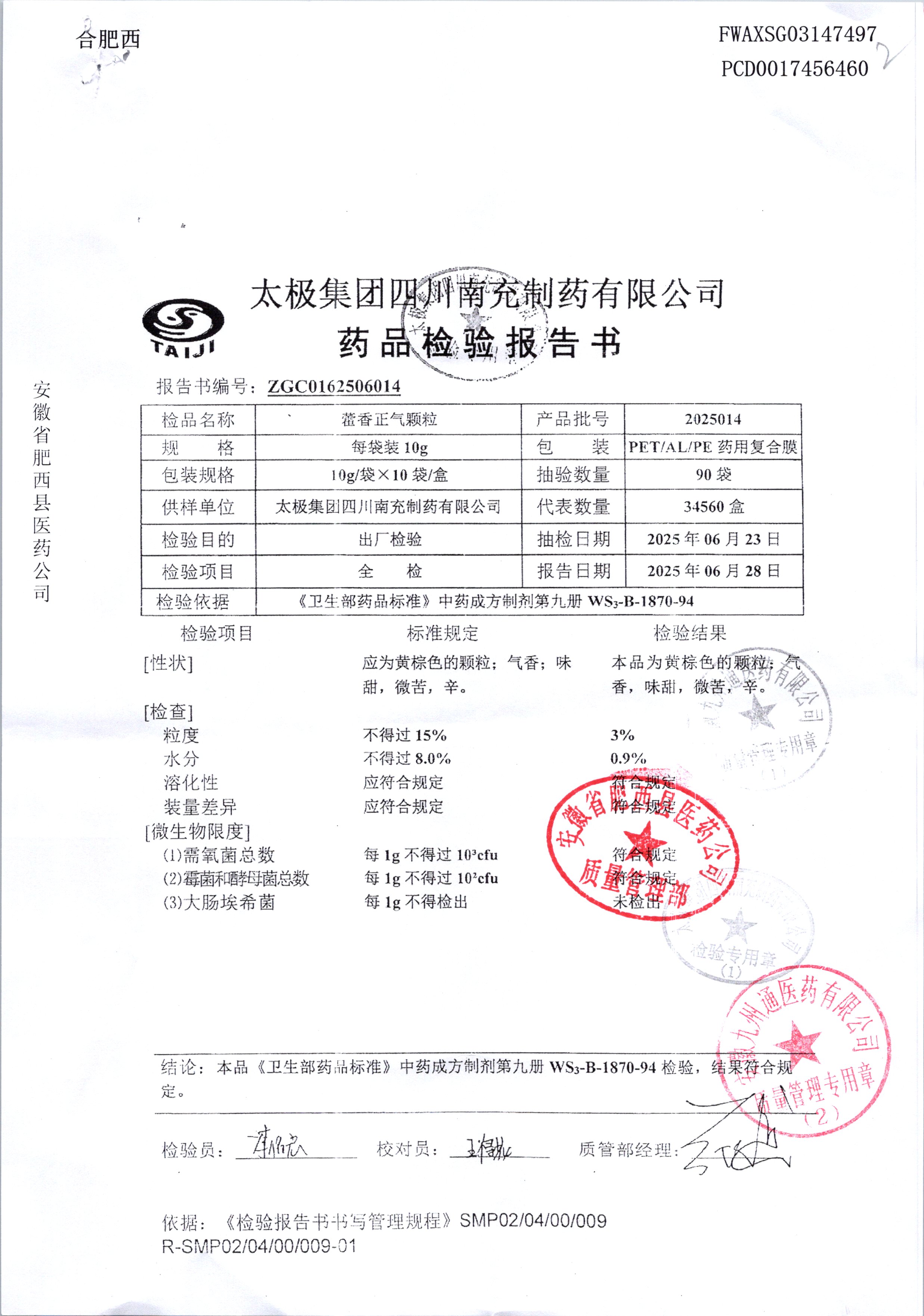 名稱 規(guī)格 批號 藥檢報告