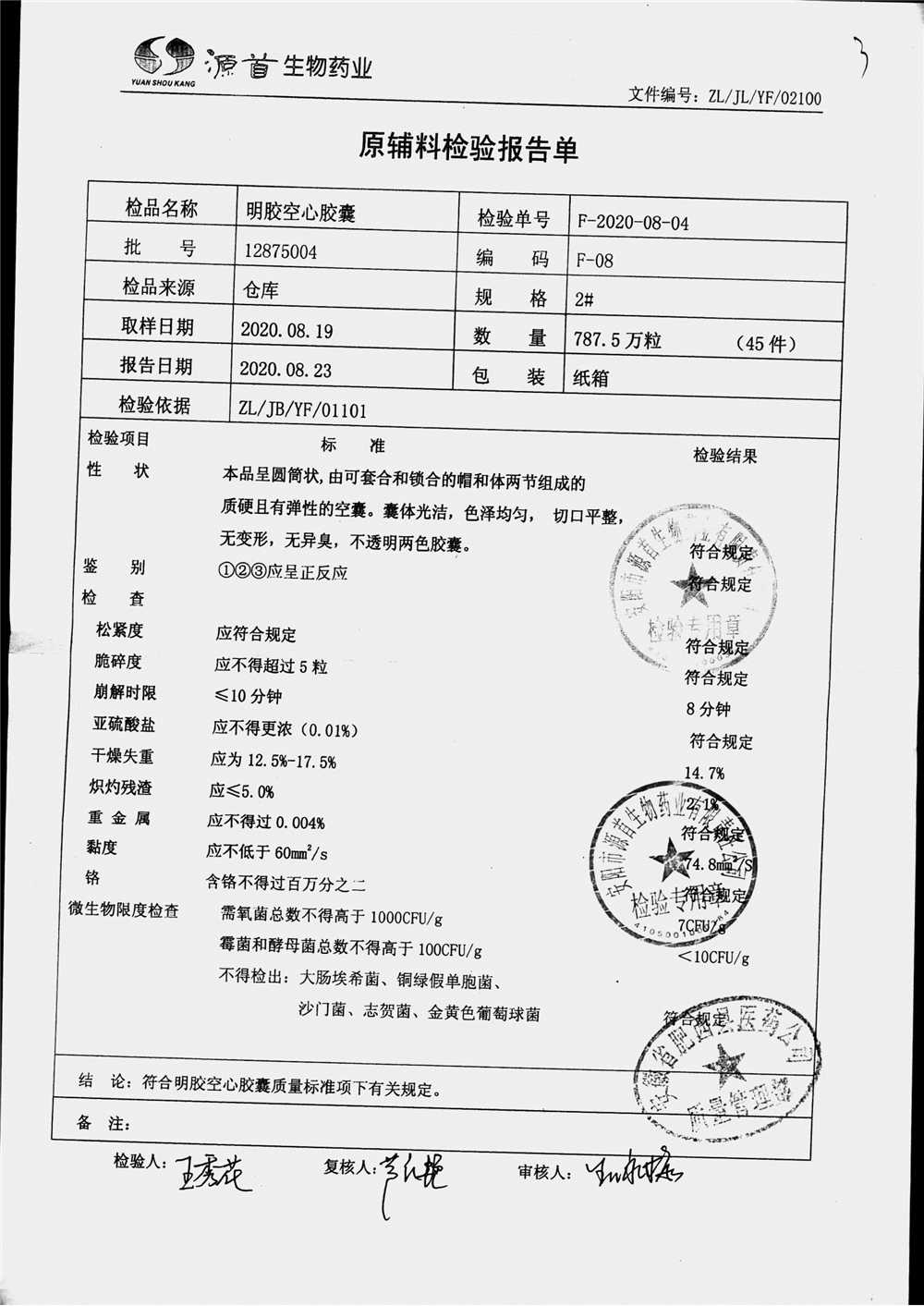 蠟樣芽孢桿菌活菌膠囊(源首) | 0.25g | 20180504(2/3) | 查看詳情 |