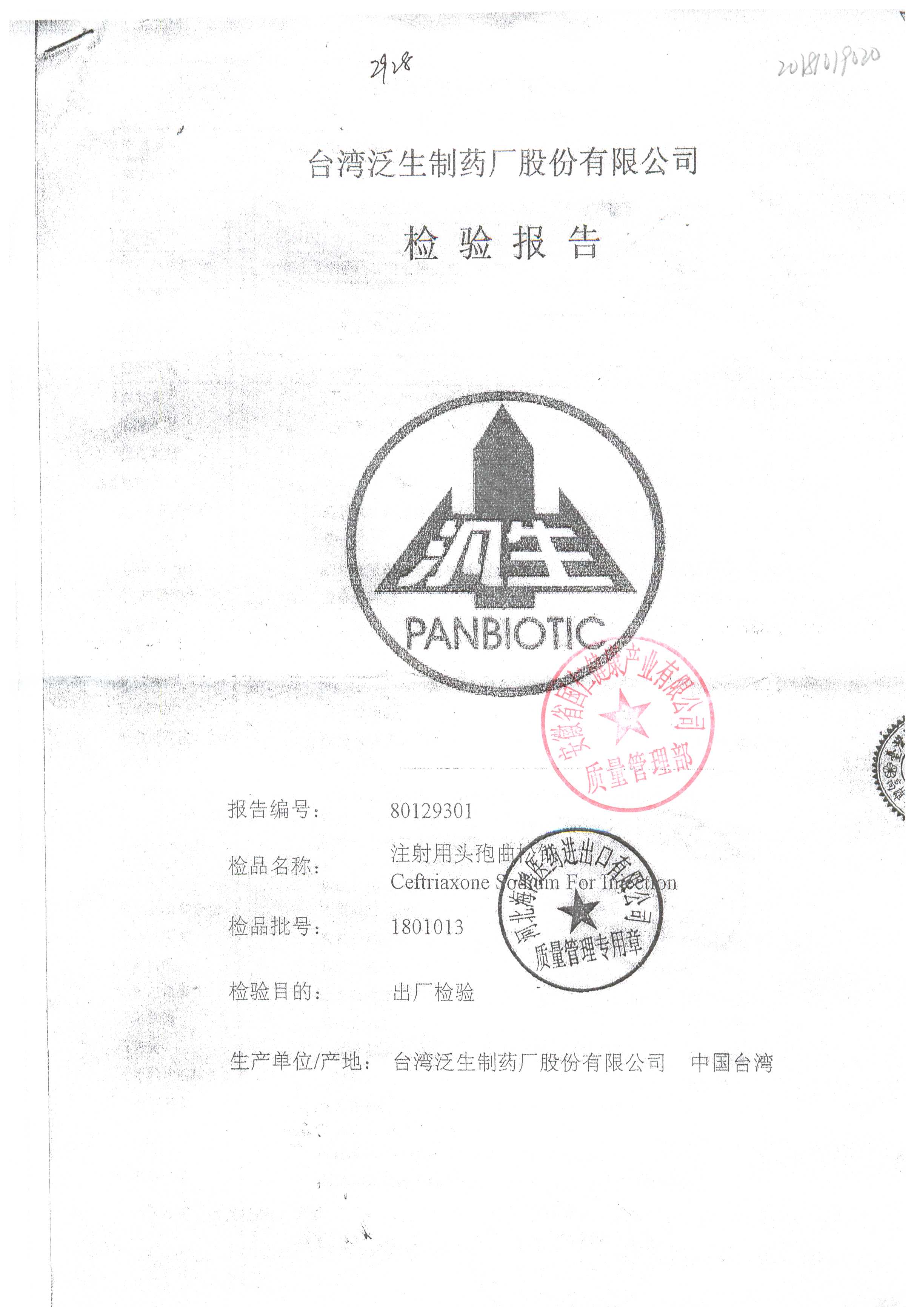 注射用頭孢曲松鈉 | 2.0g | 1801013(1/3) | 查看詳情 |