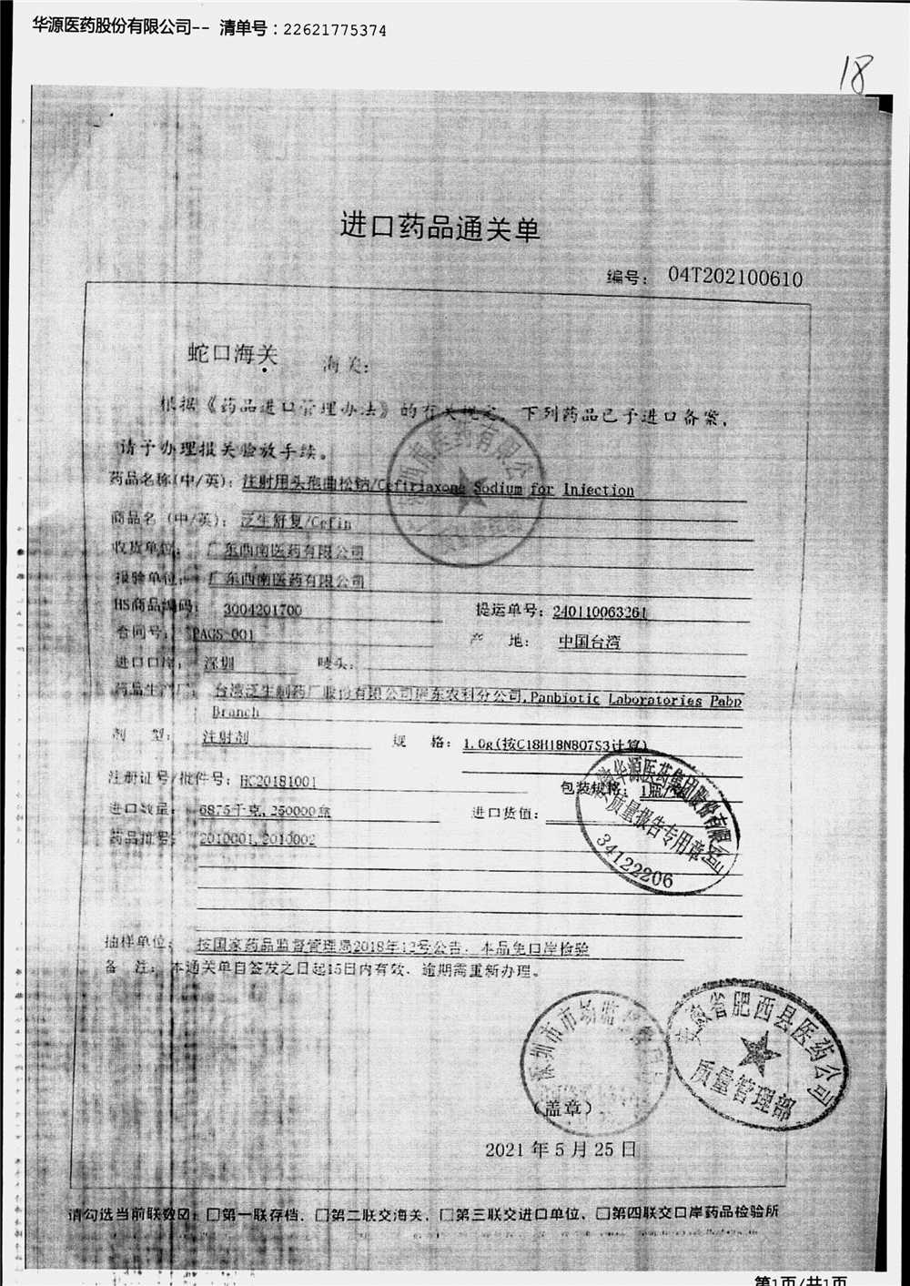 注射用頭孢曲松鈉 | 2.0g | 1712006(2/4) | 查看詳情 |