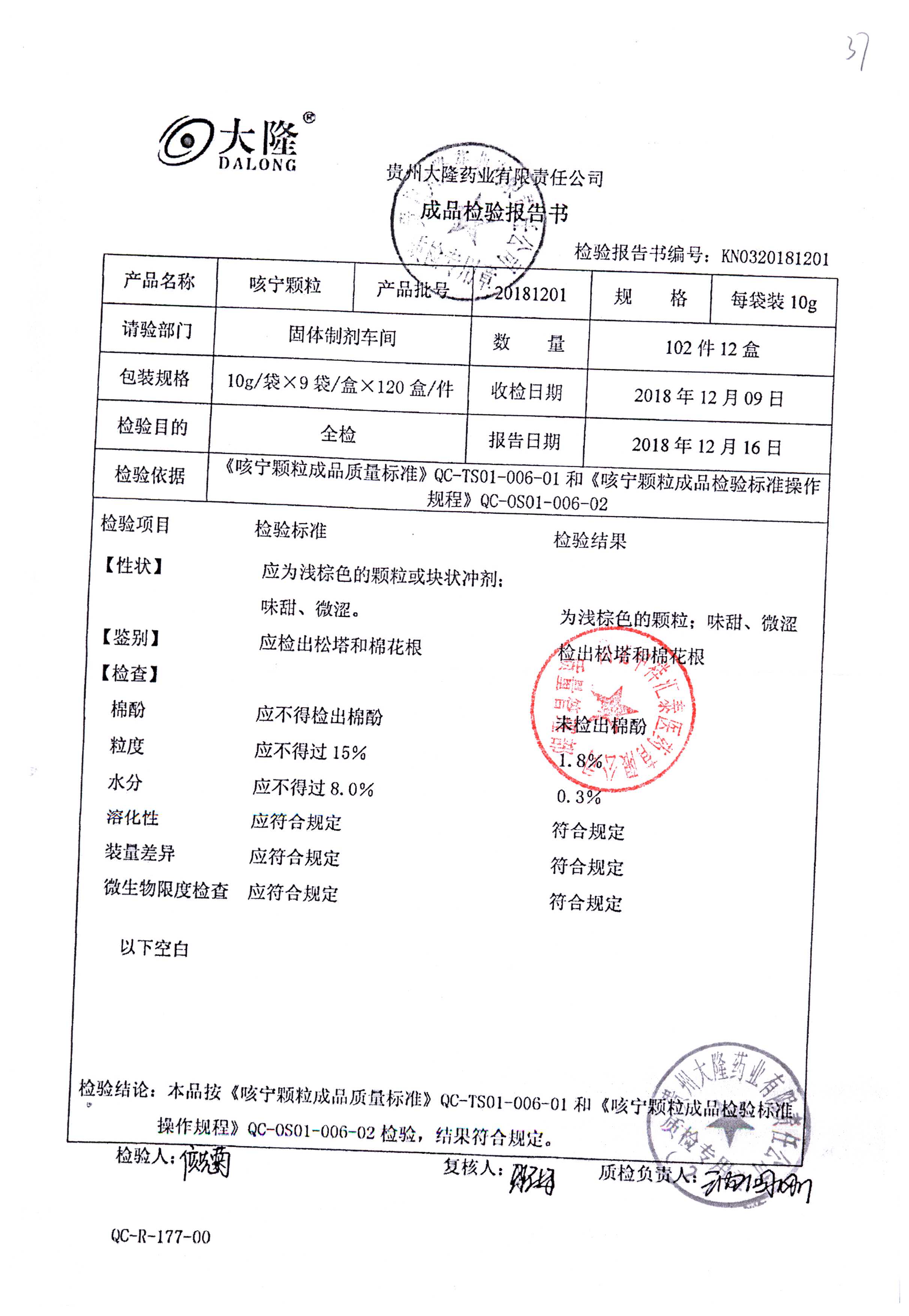 咳寧顆粒 | 10g*9袋 | 20180403 | 查看詳情 |