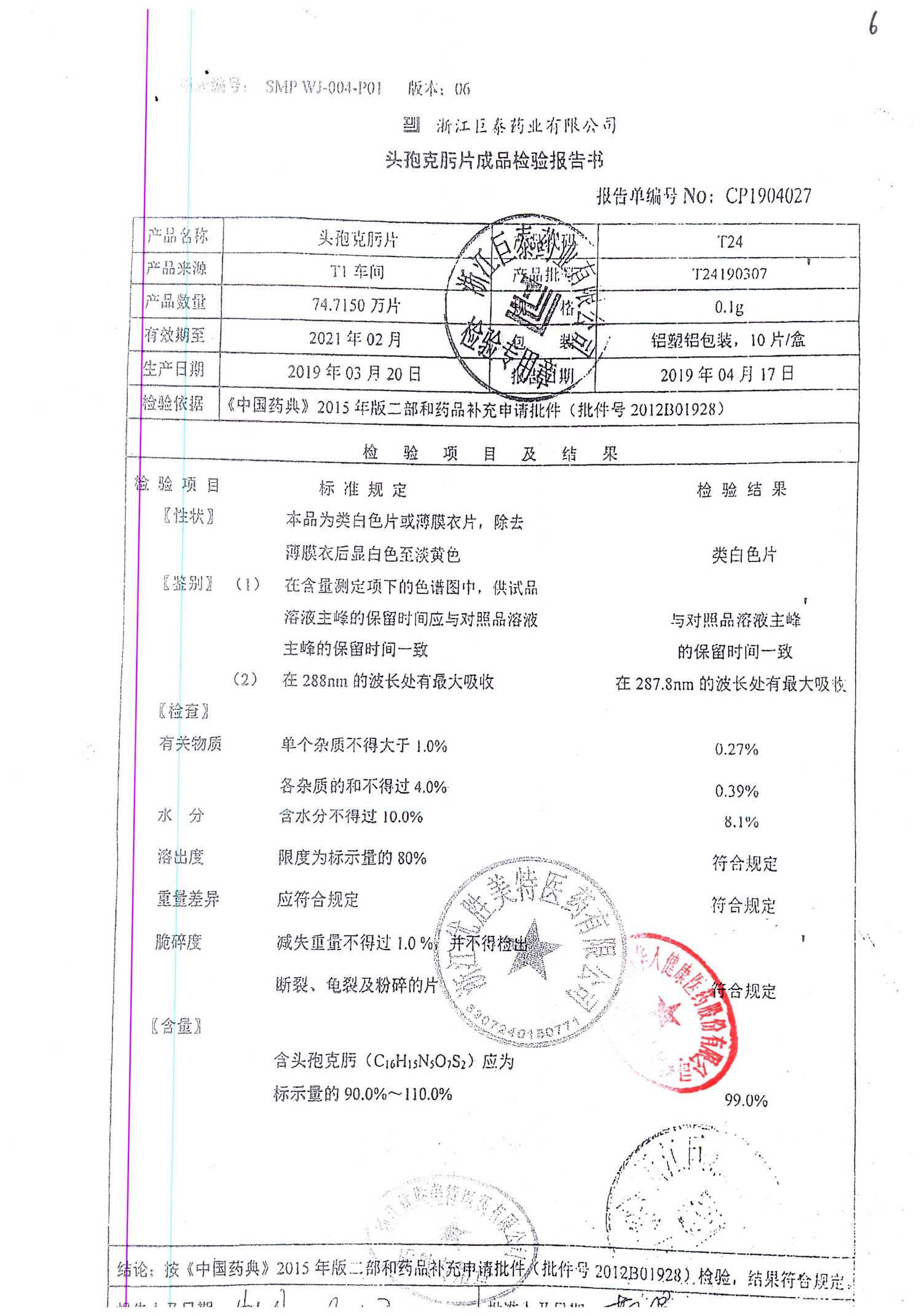 頭孢克肟片 | 0.1g*10s | T24190601 | 查看詳情 |