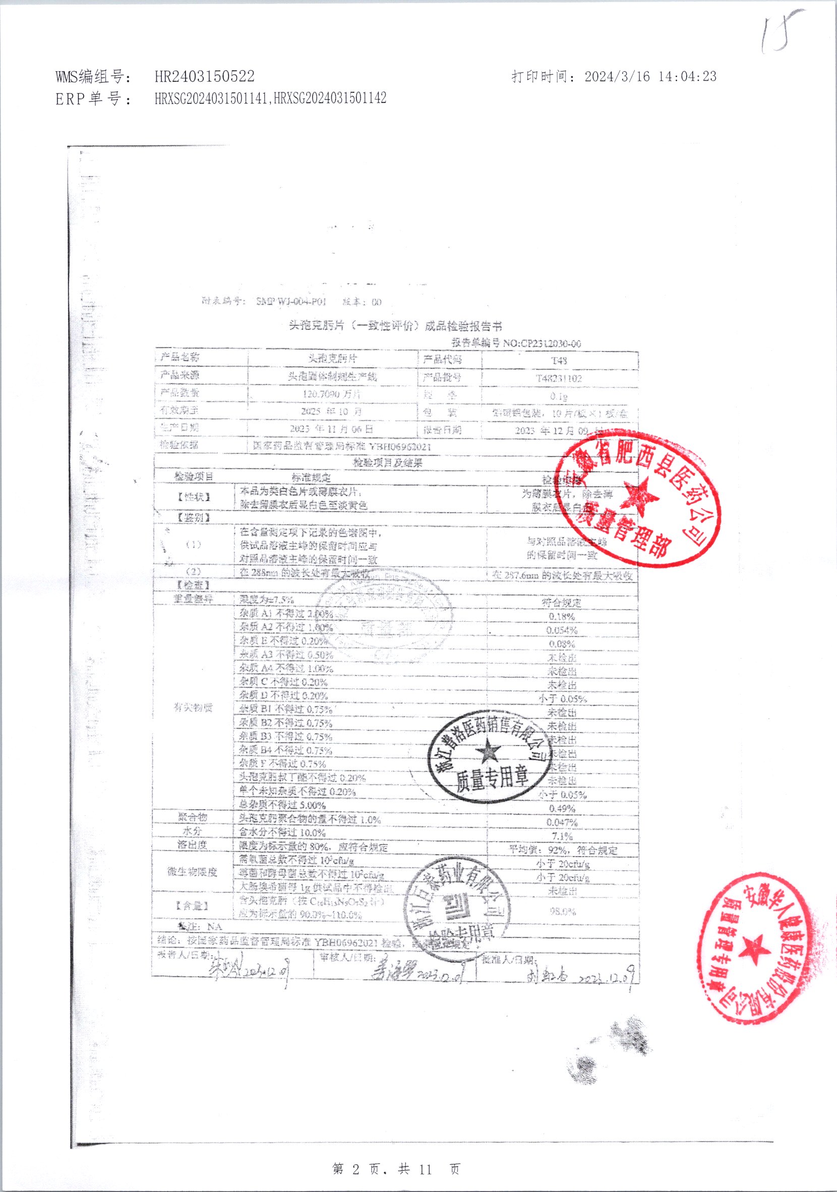 頭孢克肟片 | 0.1g*10s | T24200304 | 查看詳情 |