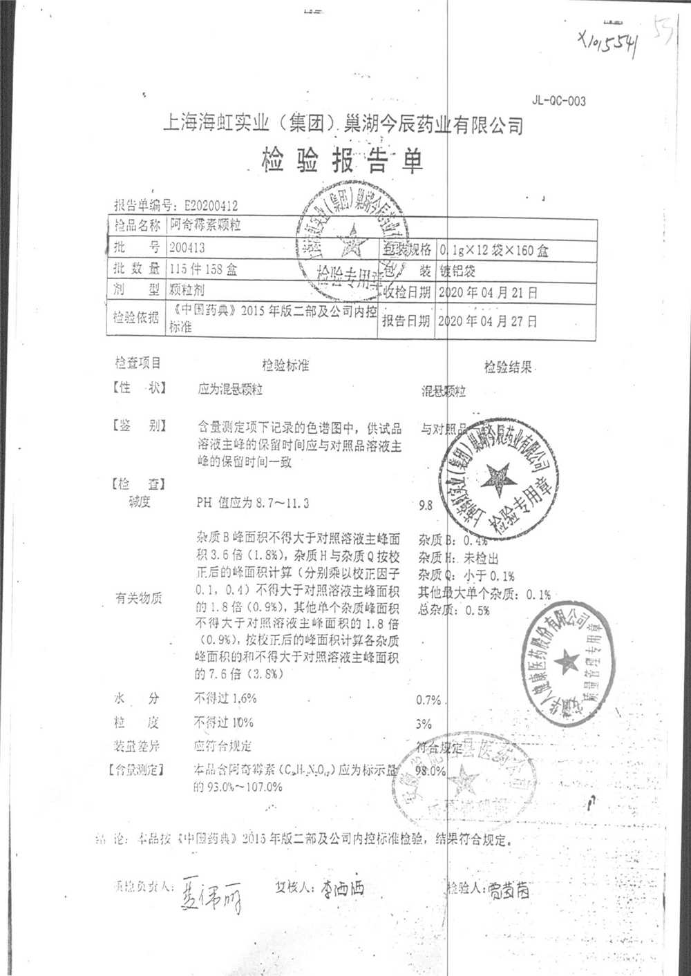 阿奇霉素顆粒 | 0.1g-12袋 | 200413 | 查看詳情 |