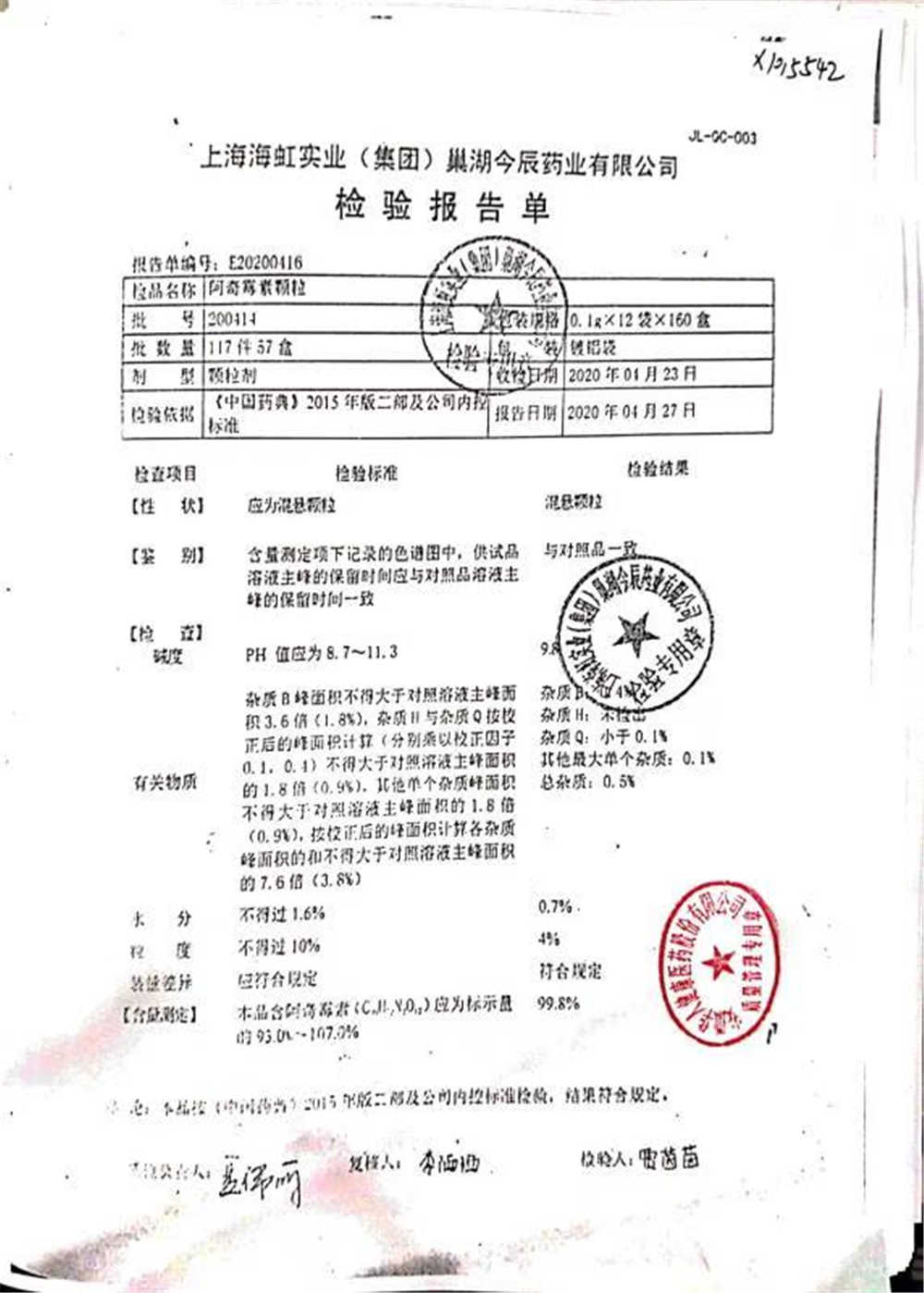名稱 | 規(guī)格 | 批號 | 藥檢報告 |