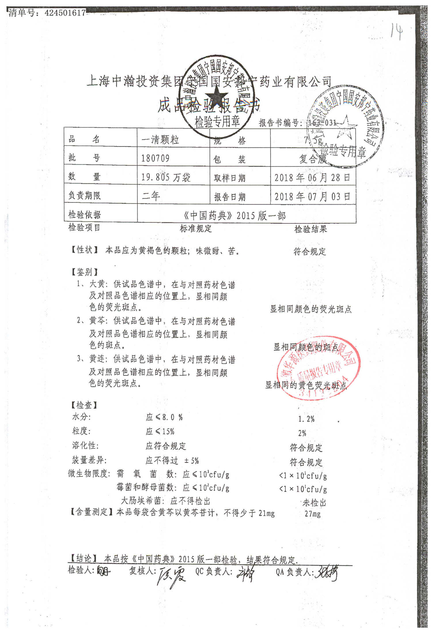 一清顆粒 | 7.5g | 180404 | 查看詳情 |