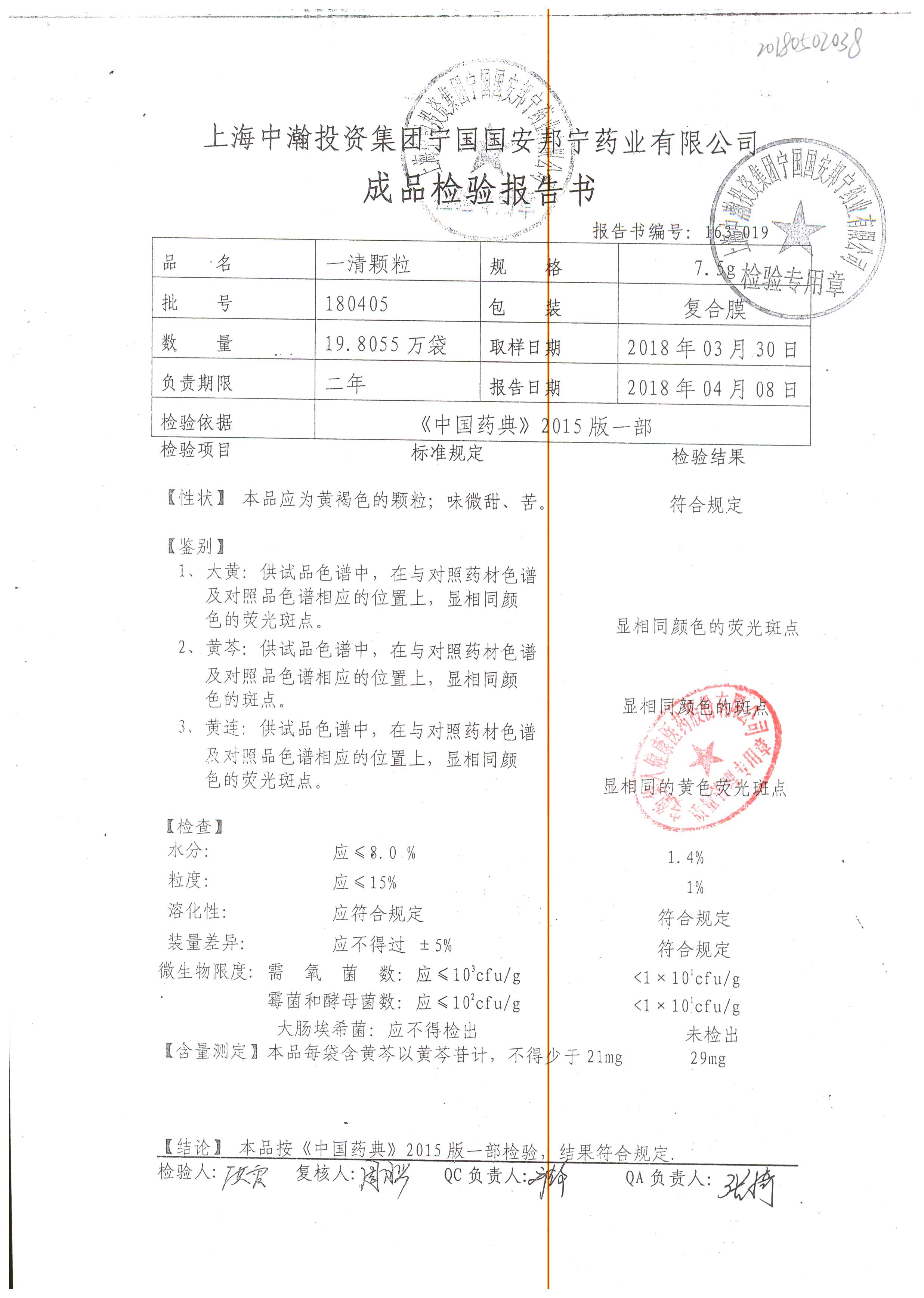名稱 | 規(guī)格 | 批號(hào) | 藥檢報(bào)告 |
