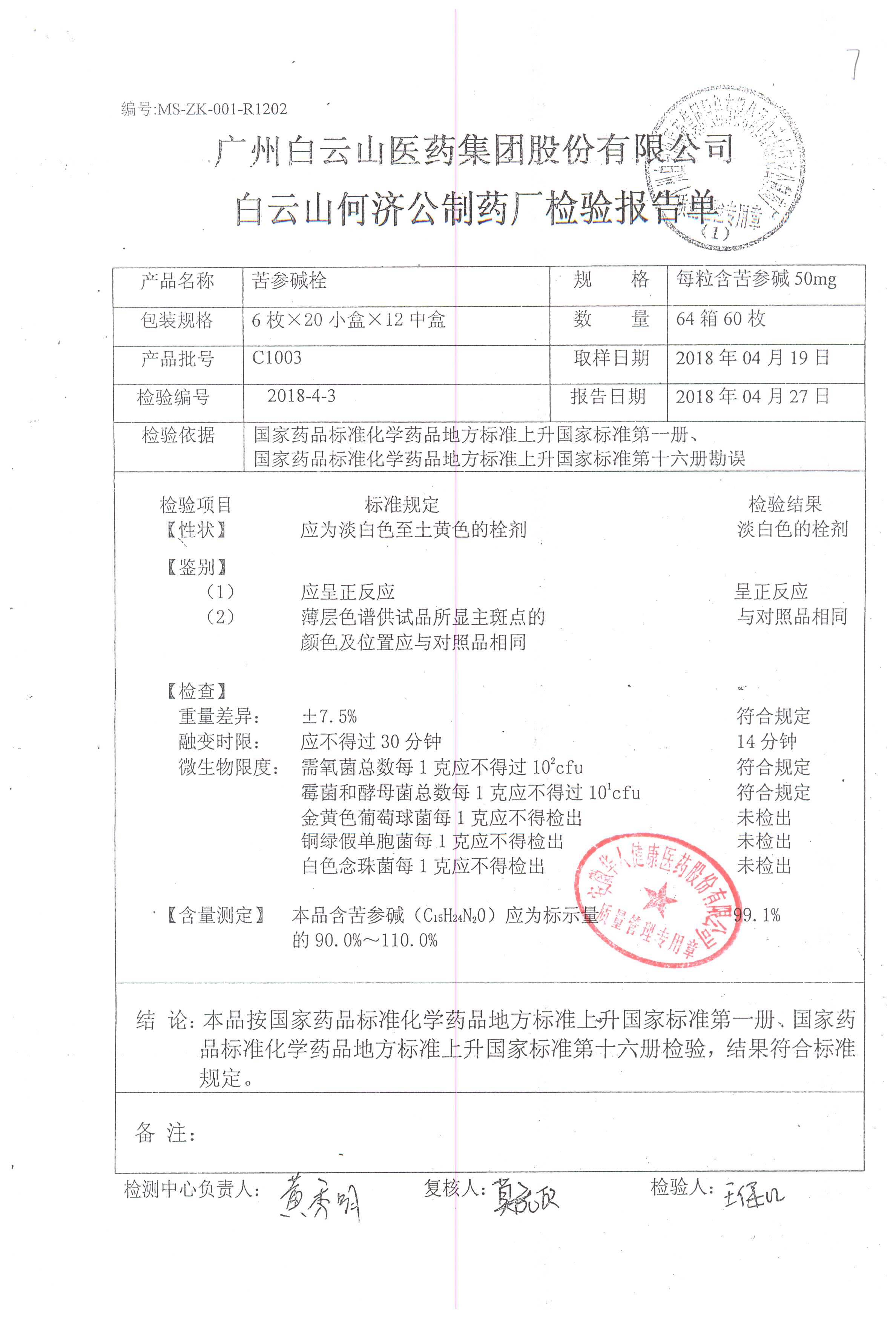 苦參堿栓 | 50mg*6枚 | B1003 | 查看詳情 |