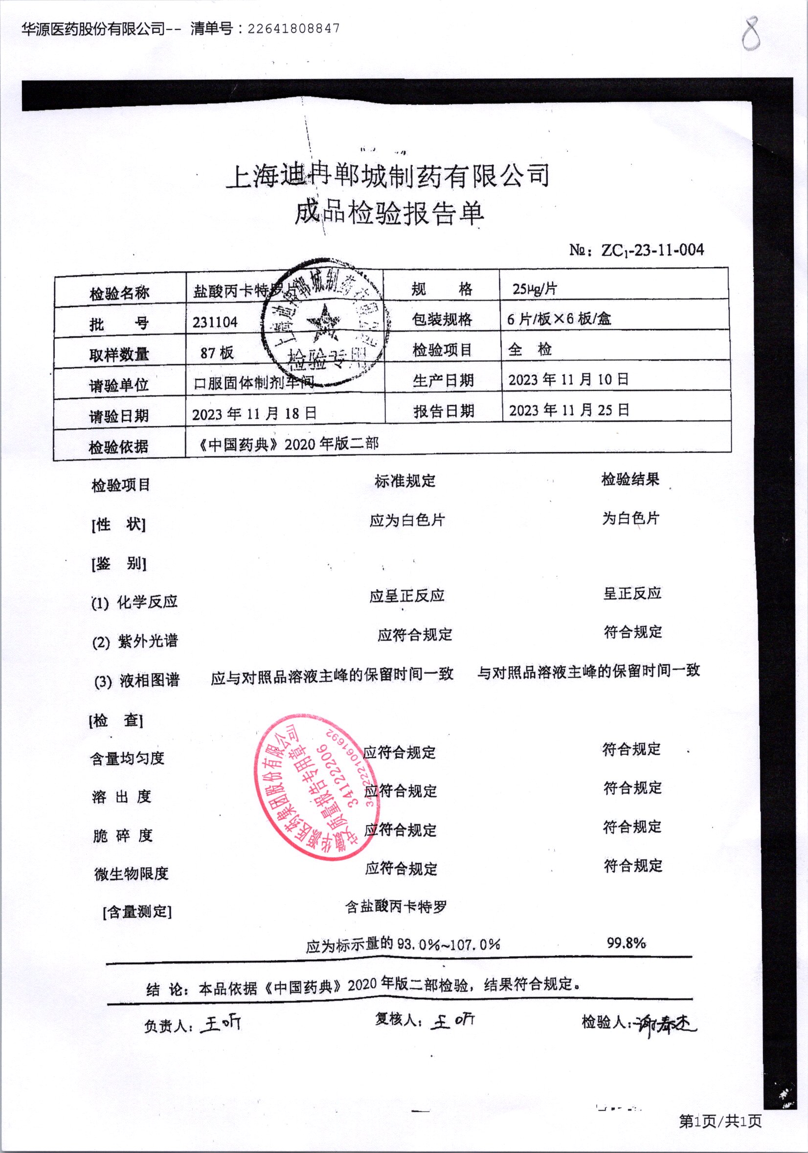 鹽酸丙卡特羅片 | 25mg*6s | 231104 | 查看詳情 |