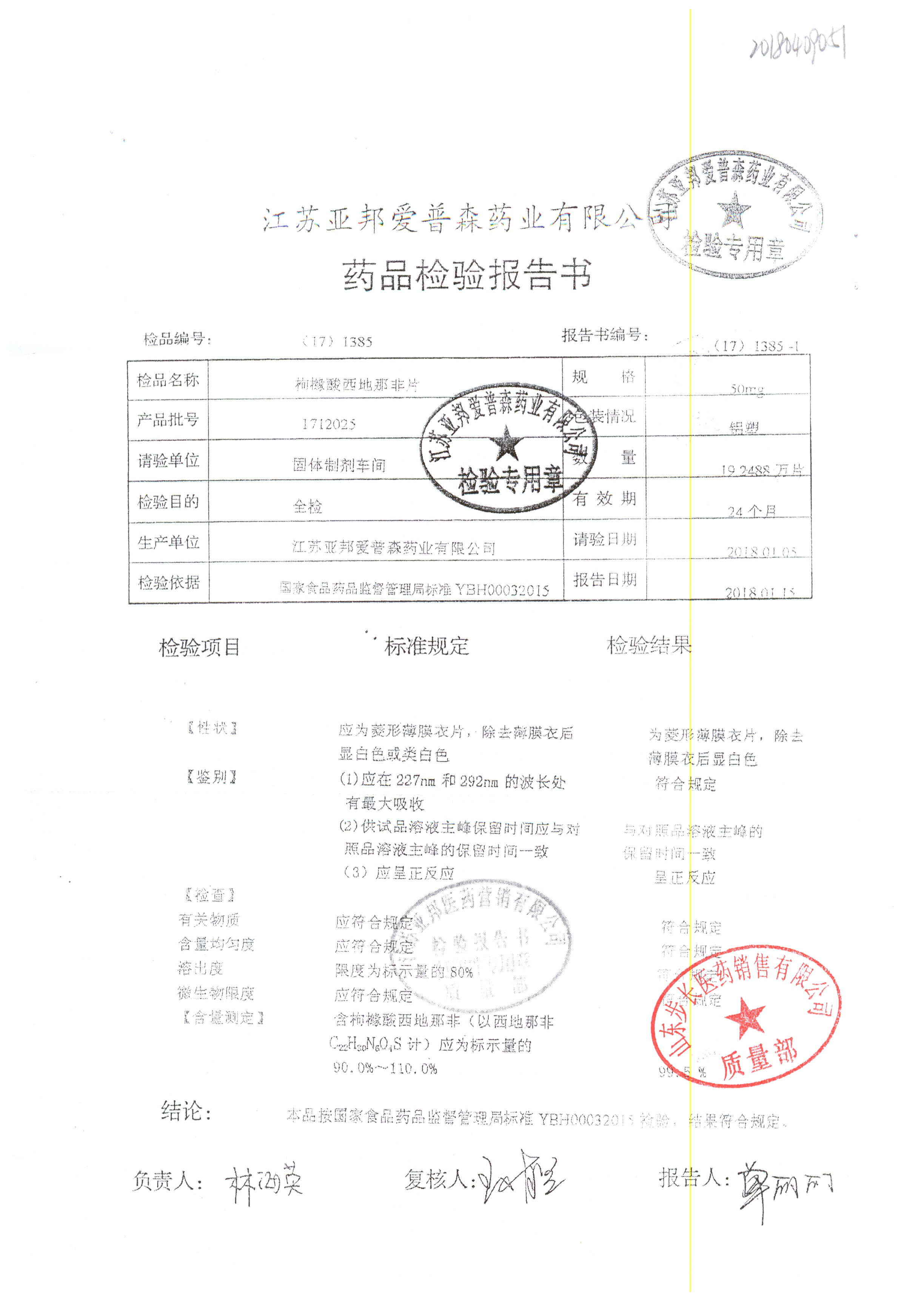 名稱 | 規(guī)格 | 批號 | 藥檢報告 |