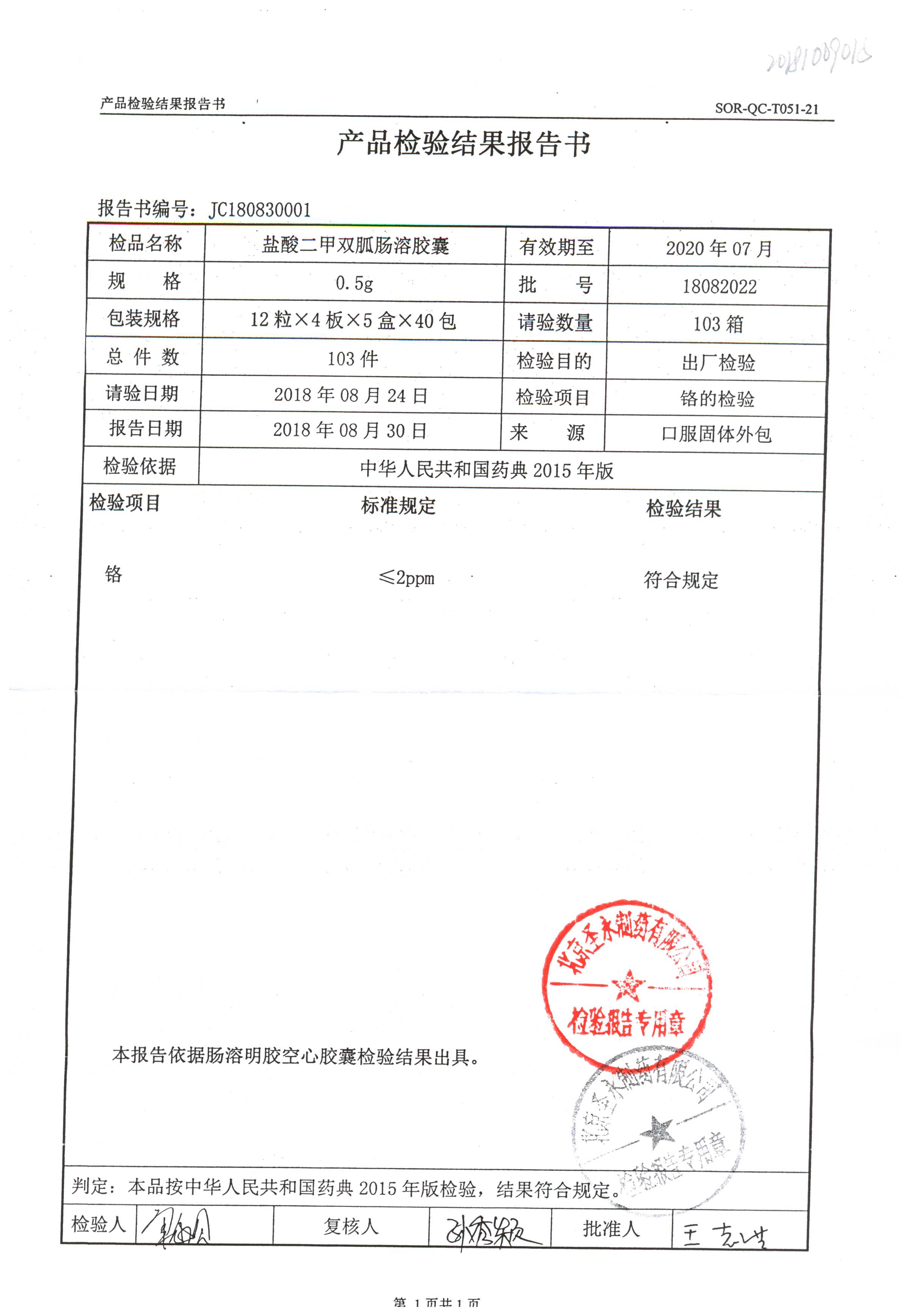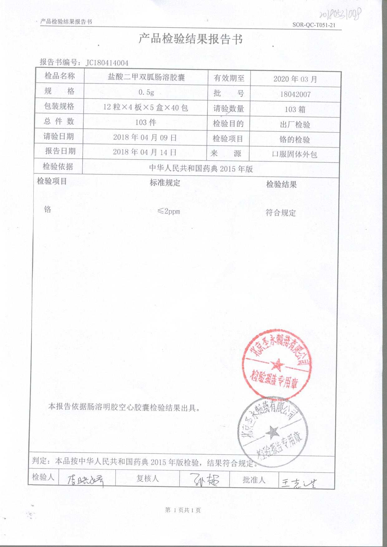 鹽酸二甲雙胍腸溶膠囊 | 0.5g*48s | 18042007(1/2) | 查看詳情 |