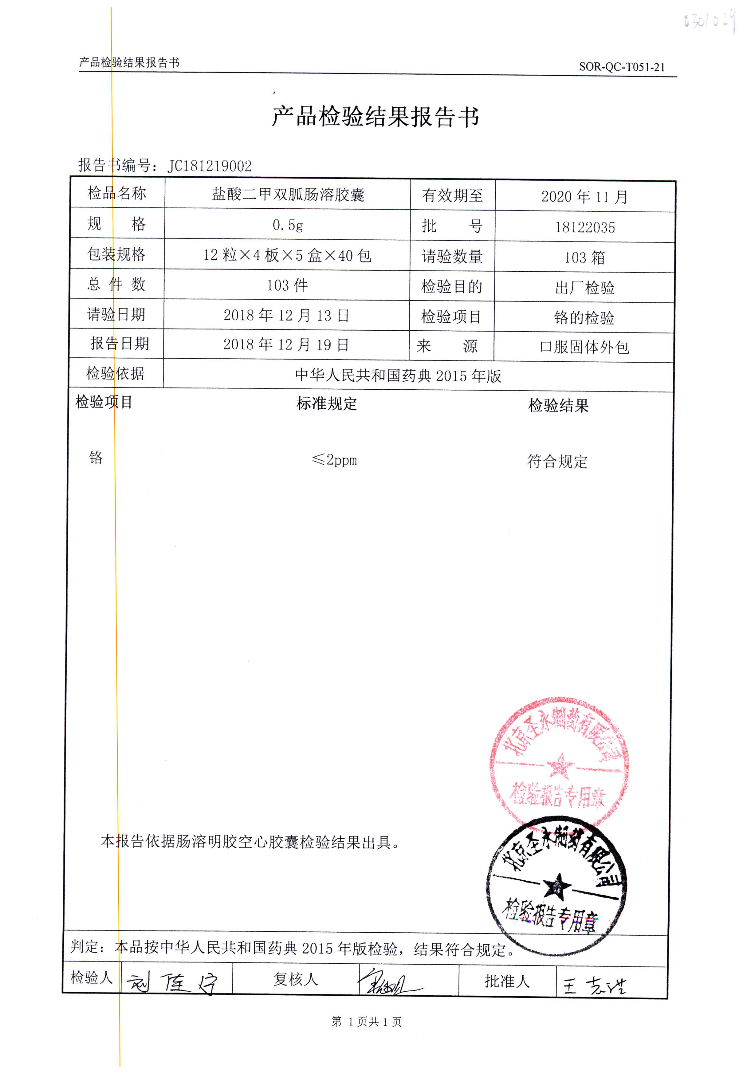 鹽酸二甲雙胍腸溶膠囊 | 0.5g*48s | 18011019(1/2) | 查看詳情 |