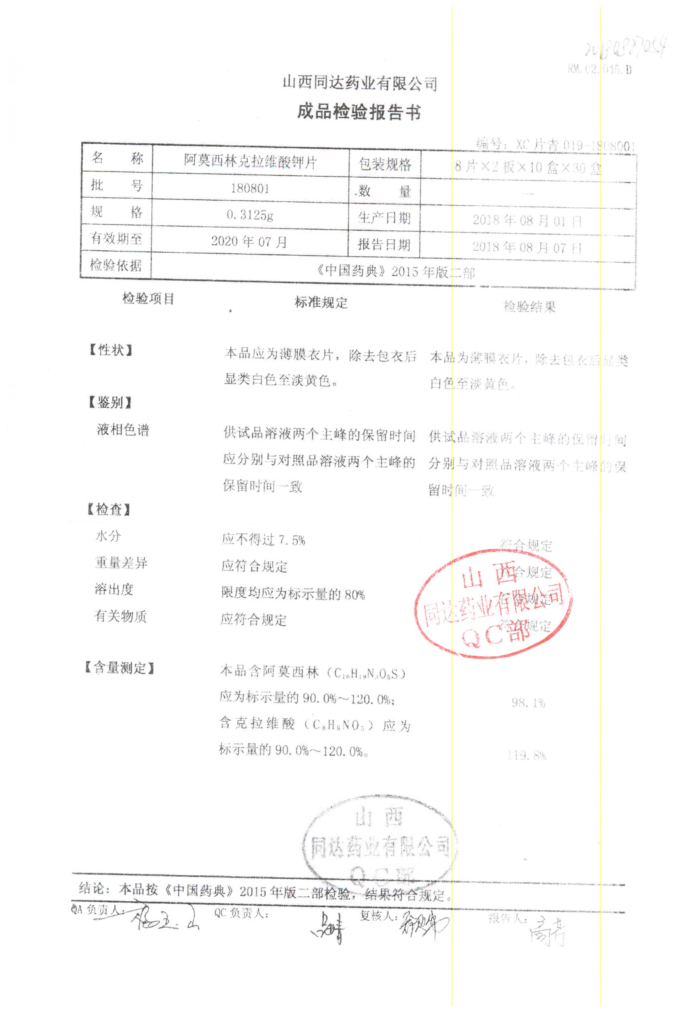 阿莫西林克拉維酸鉀片 | 0.3125g*16s | 190511 | 查看詳情 |