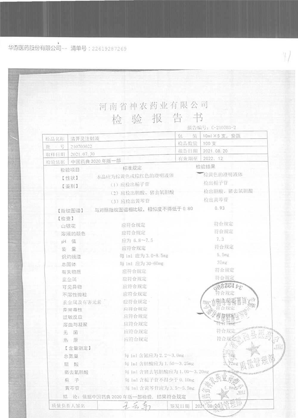 清開靈注射液 | 10ml*5支 | 210703022 | 查看詳情 |