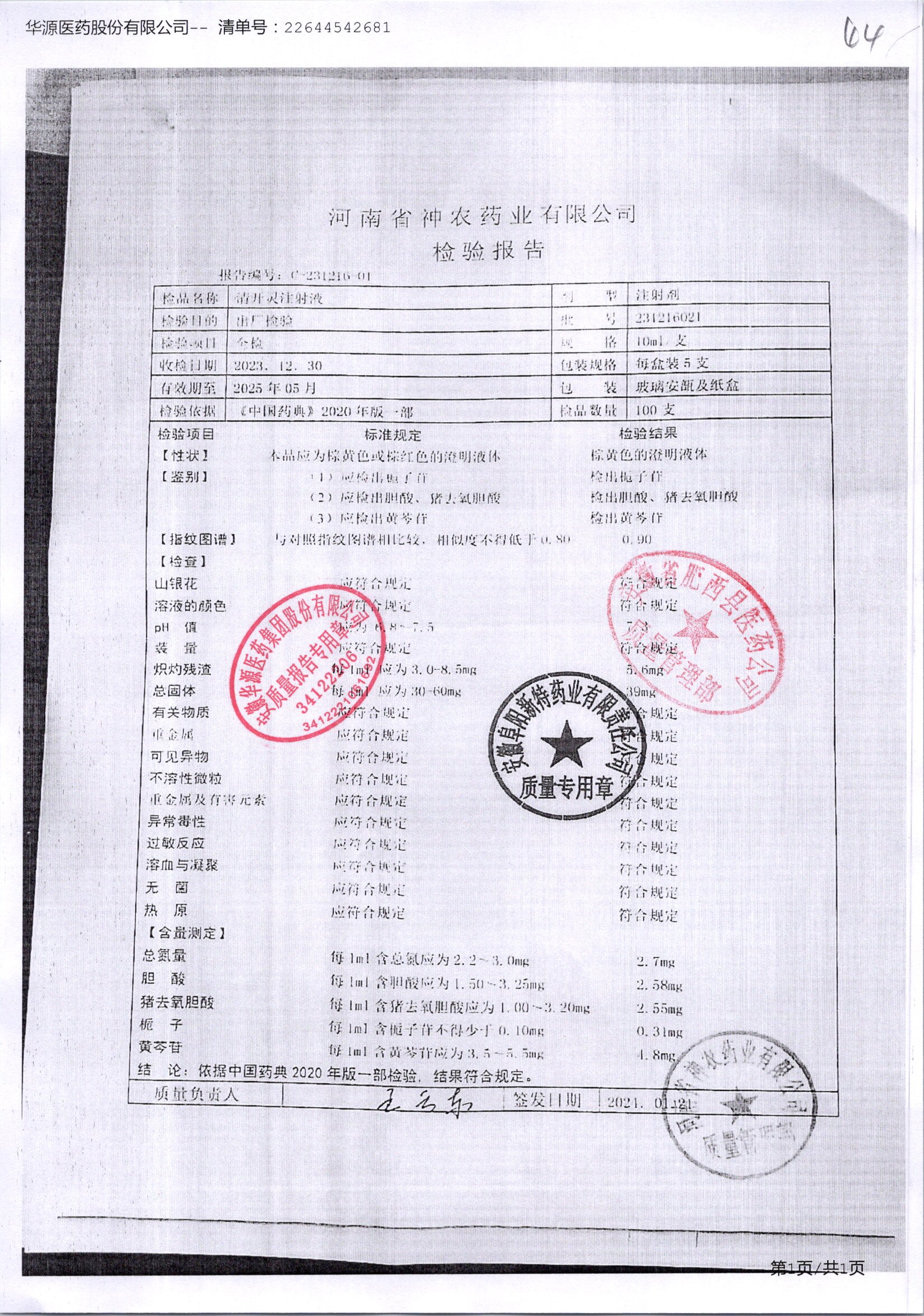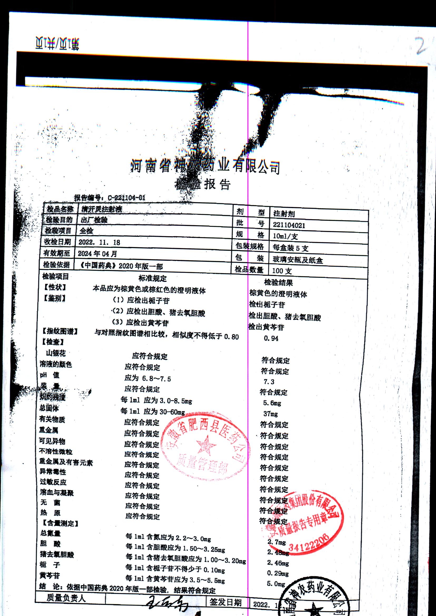 清開靈注射液 | 10ml*5支 | 210102021 | 查看詳情 |